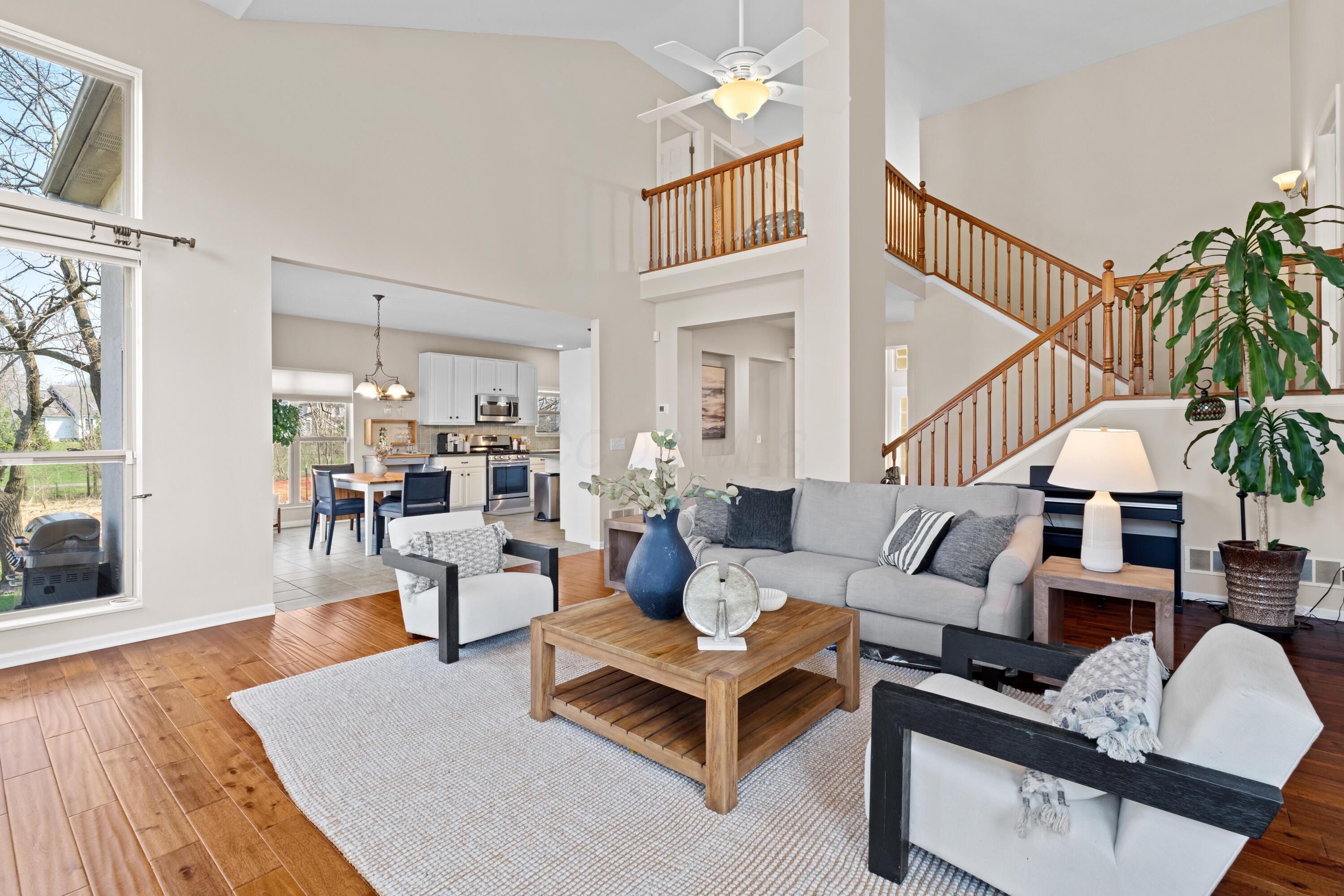 Welcome to this spacious 5-level split in Dublins desirable Shannon Glen subdivision, set on a scenic 0.27-acre streamside lot. Filled with natural light, the home features a private office and elegant dining room with coffered ceiling off the entry. The vaulted main living room offers a cozy gas fireplace, while the renovated kitchen includes a bright eat-in area.