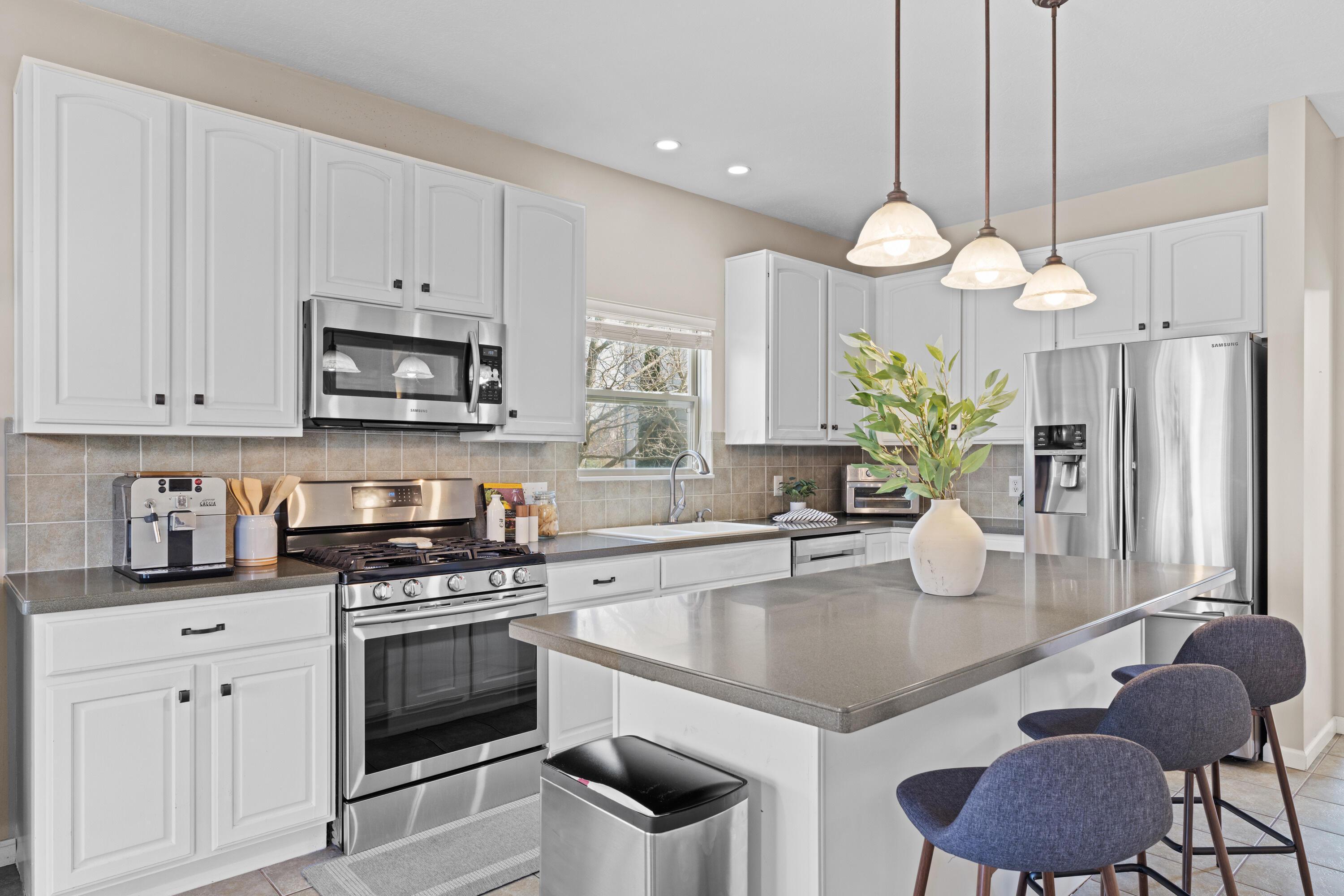 Act now and be in before the pool opens! This is the best location the Landings at Maple Bay has to offer! Your boat dock (#71) is located a few short steps from your back patio as well as the pool, fitness center and club house! This updated condo is better than the builder grade options with new granite counters in the open concept kitchen and baths, new bamboo floors in the spacious primary suite and new carpet in several rooms. If you have been thinking about the Lake Life, this is a fantastic way to enjoy the convenience of condo living and the fun of Buckeye Lake! Buy now and explore the village in your golf cart or be ready to take out the boat when the warm weather breaks!! You will fall in love with this community of active lake lovers!