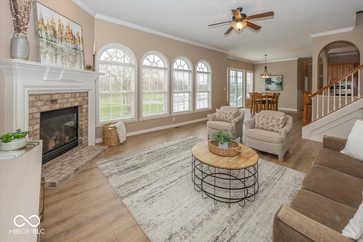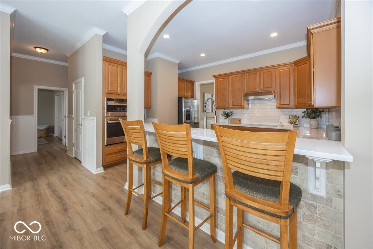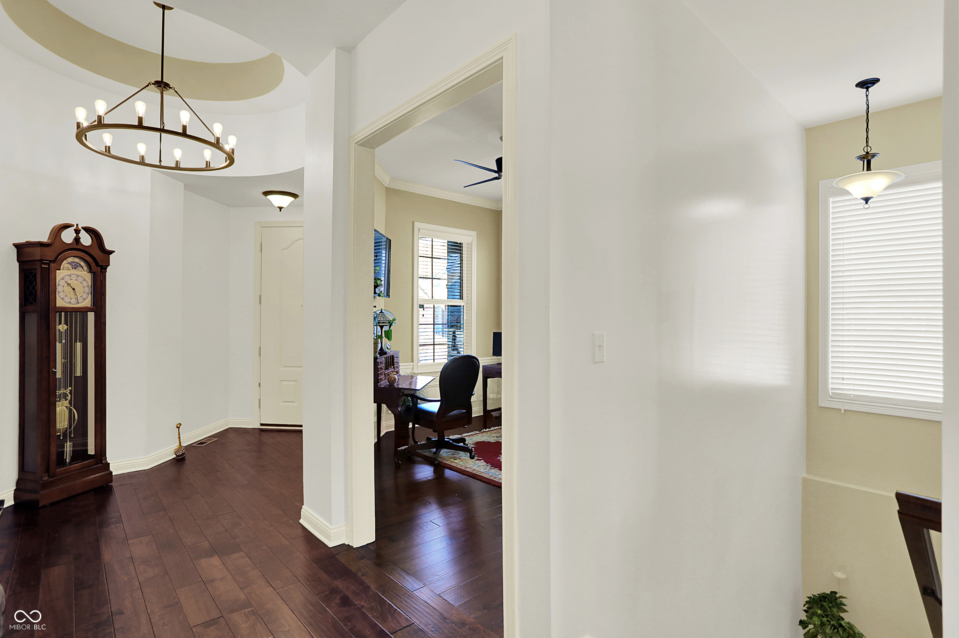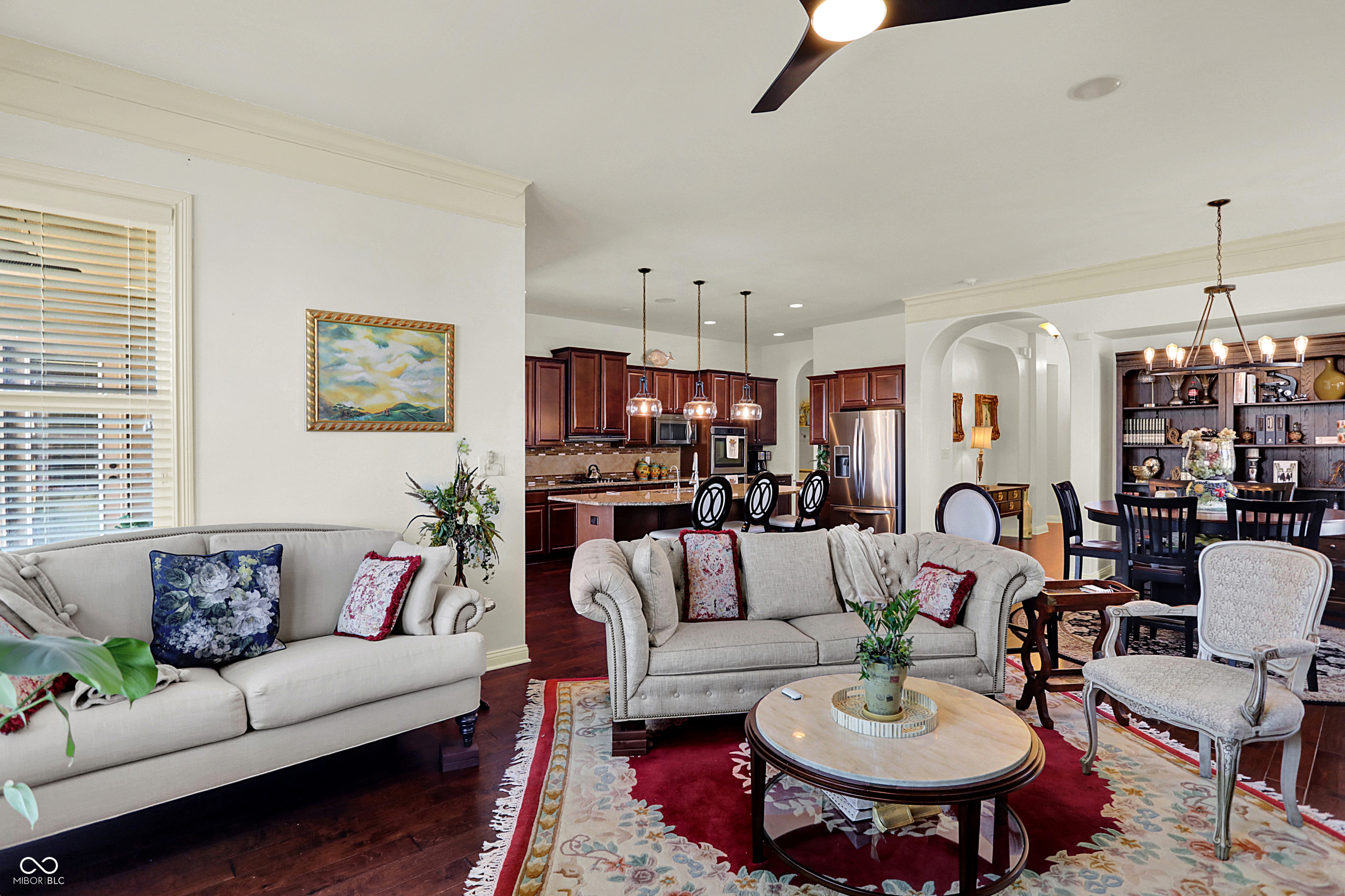 Welcome to this stunning brick ranch in the highly desirable Belmont community in Fishers! Perfectly positioned on a nearly half-acre corner lot, this elegant home offers an exceptional sense of space, privacy, and presence-complete with a 3-car garage for added convenience and storage. Step inside to a grand, elongated foyer that sets a sophisticated tone and draws you into the heart of the home.