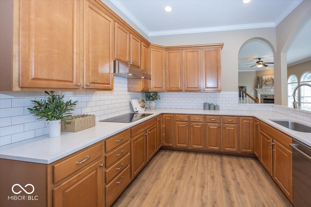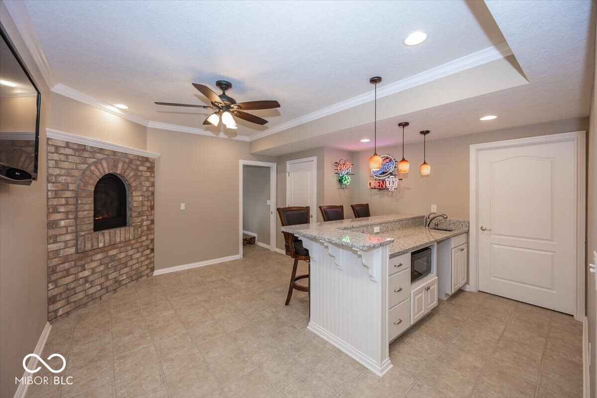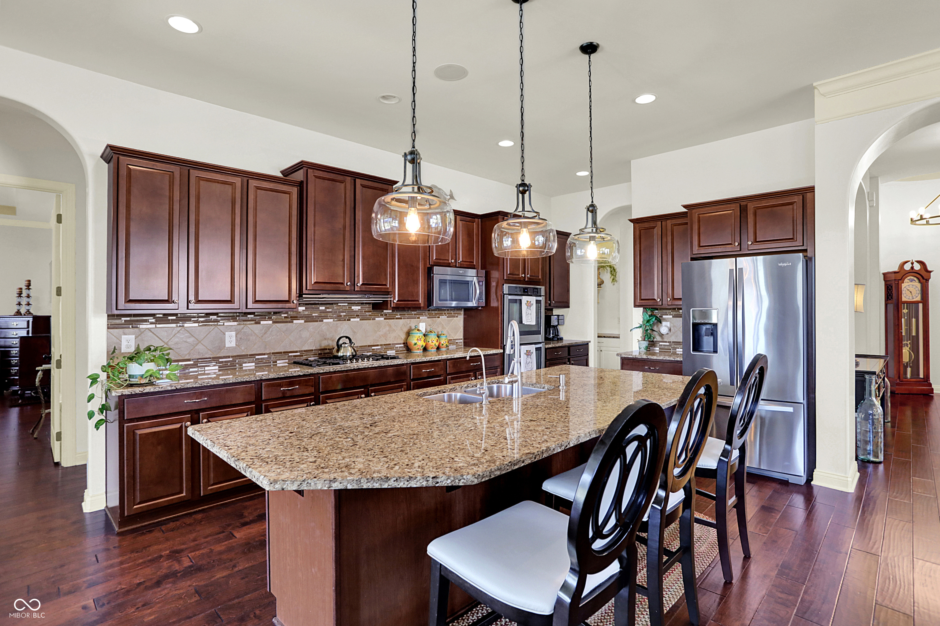 Welcome to this stunning brick ranch in the highly desirable Belmont community in Fishers! Perfectly positioned on a nearly half-acre corner lot, this elegant home offers an exceptional sense of space, privacy, and presence-complete with a 3-car garage for added convenience and storage. Step inside to a grand, elongated foyer that sets a sophisticated tone and draws you into the heart of the home. The open-concept design unfolds into a show-stopping gourmet kitchen that is as functional as it is beautiful. Outfitted with double ovens, expansive countertops, and a massive center island with seating, this space was made for entertaining in style-whether hosting intimate dinners or lively gatherings. The kitchen flows effortlessly into the family room, where oversized windows frame serene views of the backyard, creating a light-filled, inviting space that feels both warm and refined. The main level features three generously sized bedrooms, including a luxurious primary suite highlighted by a stunning double tray ceiling-your own private retreat. The finished basement elevates the home even further with an additional bedroom, spacious family room, recreation area, and abundant storage-ideal for guests, entertaining, or creating the ultimate getaway space. Step outside and experience the true wow factor-this expansive, nearly half-acre lot offers endless possibilities for outdoor living, from hosting unforgettable gatherings to creating your own private oasis. The covered porch overlooks a beautifully maintained backyard, fully enclosed by a striking wrought iron fence that adds both elegance and security. Additional features include a well-appointed laundry room with built-in sink and trash compactor, adding thoughtful convenience to everyday living. Located in Belmont, residents enjoy a peaceful neighborhood setting with easy access to top-rated schools, parks, shopping, dining, and all that makes Fishers one of the most sought-after communities in Central Indian