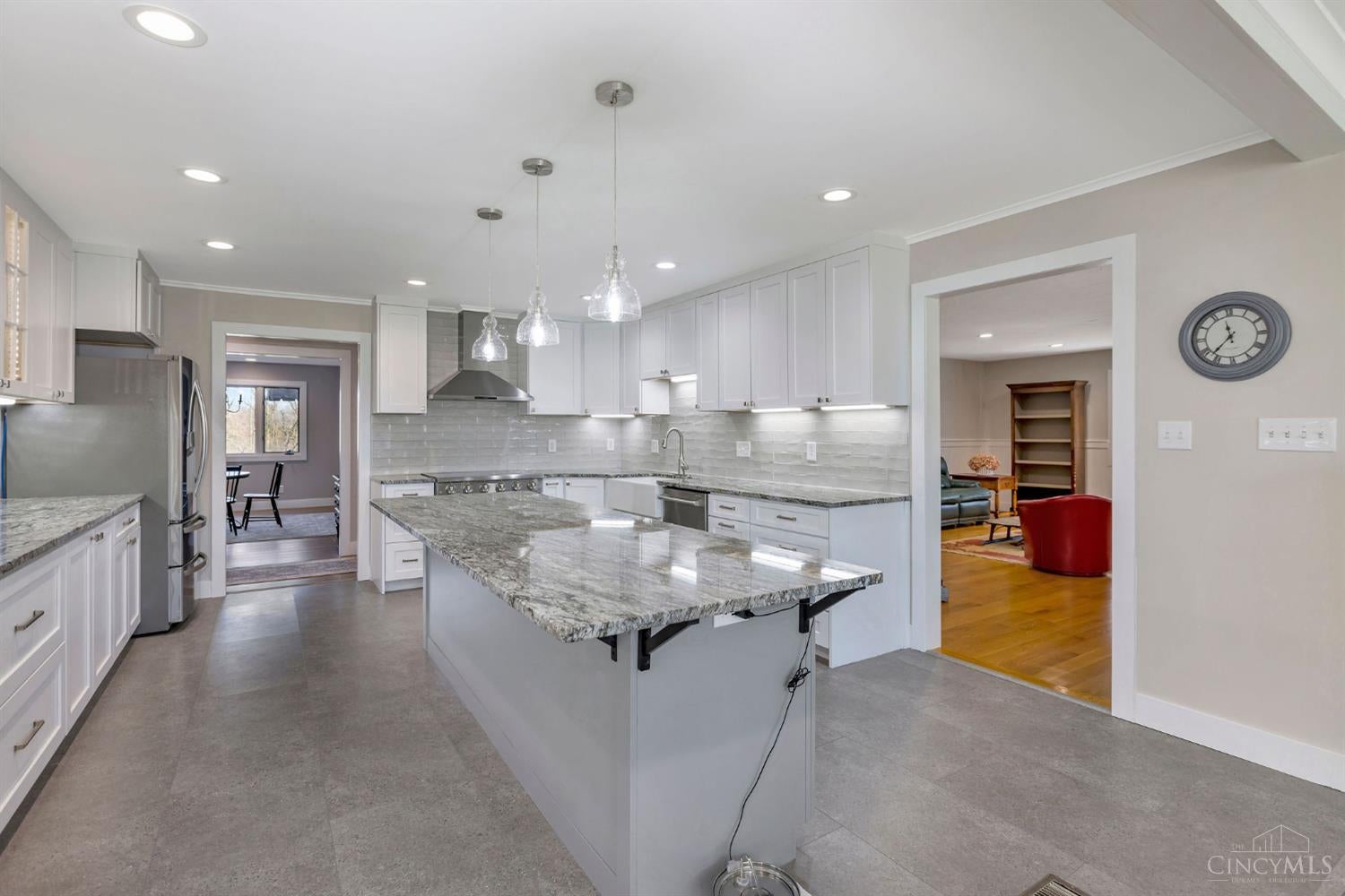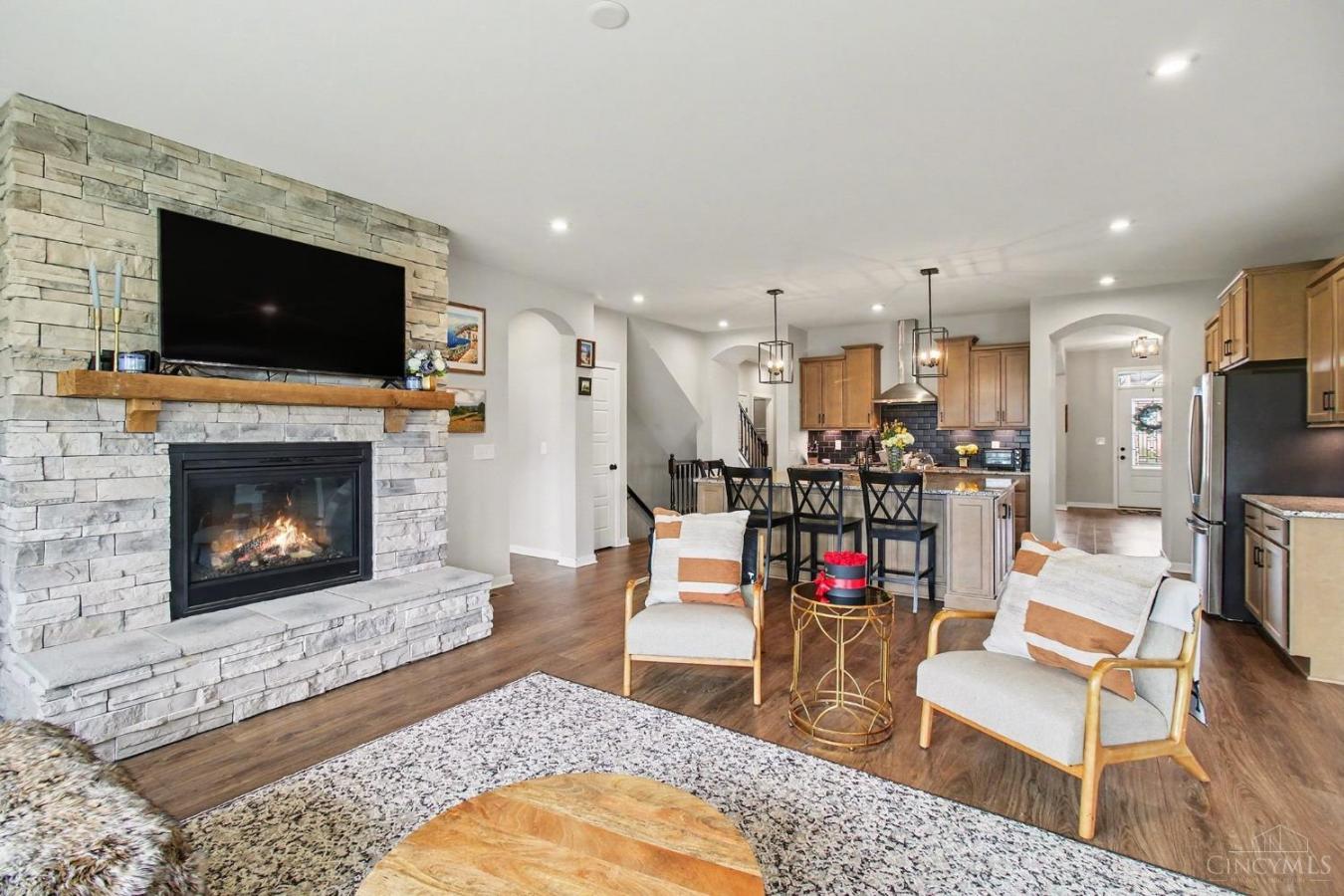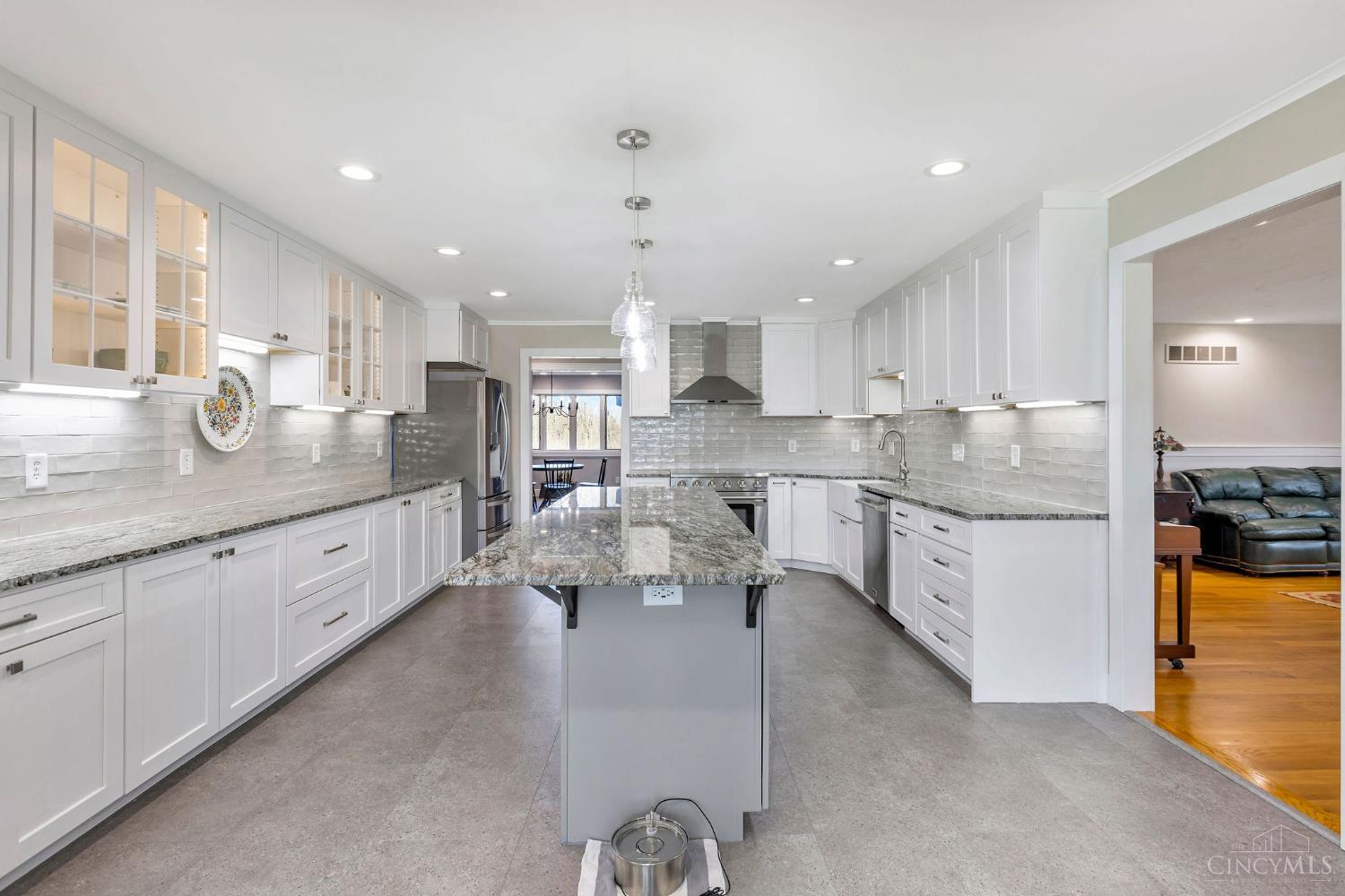 Stunning quality custom-built ranch in sought-after Vista Point at Riverbend, just 5 mins to I-71! Ideally situated on nearly 2 acres & backing to a scenic pond with fountain & lights, this one-of-a-kind home boasts a gourmet chefs delight kitchen with pond views, opening to a beautiful 3-season room.