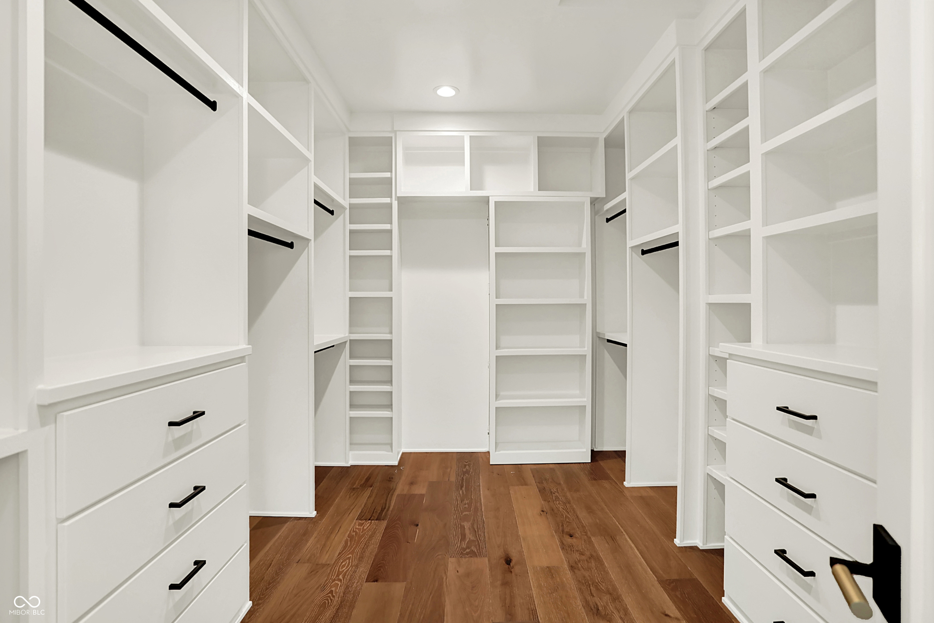 Step into this beautifully crafted custom home on over 1/3 acre in desired Forest Hills - just a short walk to Center Grove schools. The soaring two story entry and leaded glass front door with sidelights set an impressive tone from the moment you arrive. With five bedrooms and three and a half baths, the layout offers the space and flexibility today's lifestyle demands. Hardwood floors carry through the breakfast area, kitchen and laundry, where rich cherry cabinetry, a pantry, breakfast bar, smooth surface range and built in microwave make the kitchen both functional and inviting. A formal dining room is ready for holidays and gatherings or can be used as a home office. The main level primary suite feels like a true retreat with double vanities, a walk in shower, garden tub and generous walk in closet. Upstairs, one of the secondary bedrooms has been reimagined as an incredible oversized dressing closet worthy of a boutique, yet can easily be returned to a traditional bedroom if desired. The finished basement expands the living space with a large family room, full bath, exercise room or additional office or guest room and outstanding storage. Additional highlights include a spacious laundry room with utility sink, tankless water heater, water softener and storage on every level. Outside, new wood decking overlooks a private yard framed by mature trees complete with an irrigation system, creating the perfect setting for relaxing or entertaining. This is a home where thoughtful design, solid construction and meticulous care are evident at every turn.