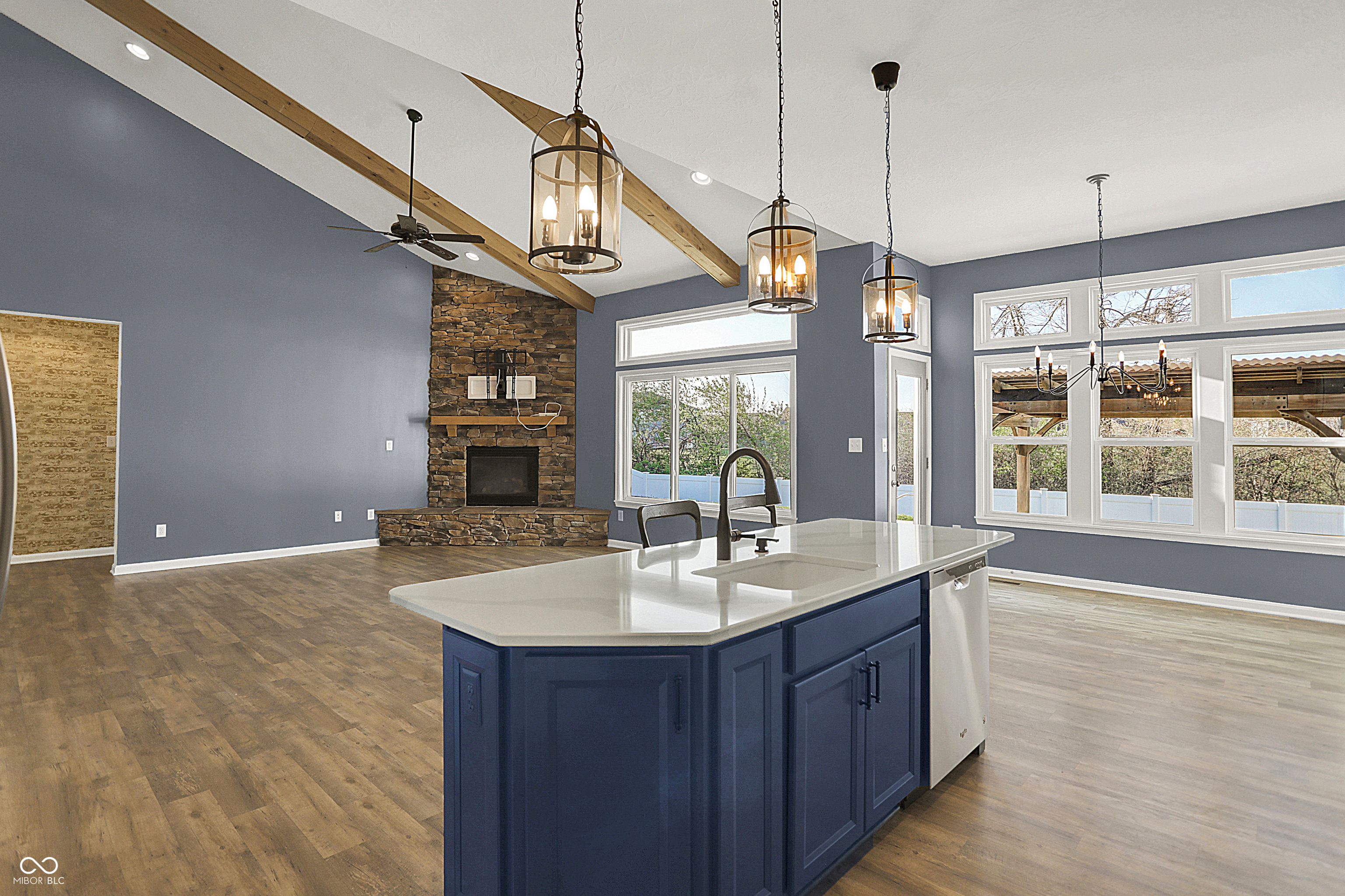 This stunning 5-bedroom, 4.5 bath home offers incredible views of Heritage Lake and an abundance of space for family and friends. The updated kitchen is truly the heart of the home-completely open to the dining room and great room-featuring an oversized island for meal prep and seating, plus ample cabinetry for storage.