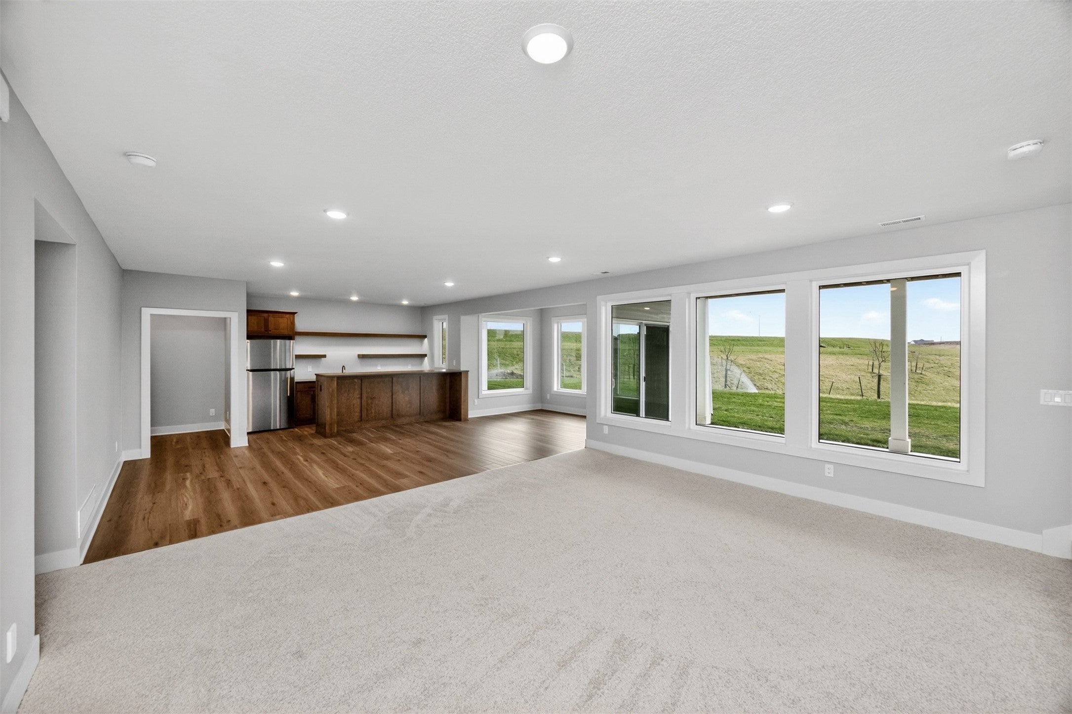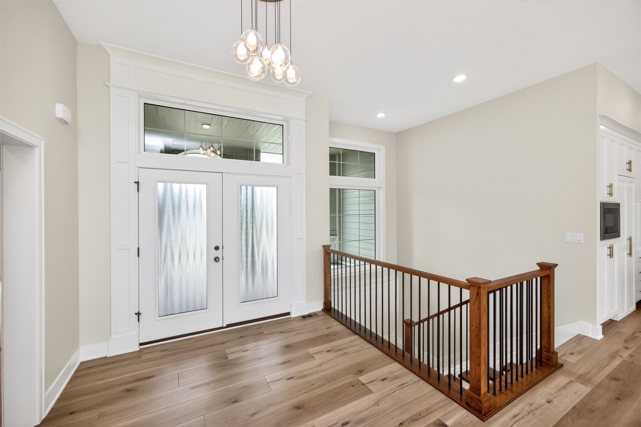 Be part of the Acadia community! This 1.5-story walkout home backs to greenspace with mature trees for added privacy. The main floor features a spacious owners suite with double closets, large walk-in shower, soaking tub, and attached laundry room. The open kitchen includes a curved island, large range, wall oven, walk-in pantry, and generous dining area. Massive windows bring natural light into the great room with a floating stone fireplace and views of the private backyard. An additional main-level room offers flexibility for an office, den, or family needs.Upstairs youll find three bedrooms, each with a private bath, plus a central loft ideal for studying or gaming. The walkout lower level is perfect for entertaining with a large bar, space for game tables or additional dining, and a family room with fireplace. Two additional flex rooms and a full bath complete the space. Extra-large three-car garage offers room for storage or workspace. Located one block from the neighborhood park and trail, with easy access to I-35/80, shopping, dining, and schools. Waukee School District. Landscaping, irrigation, central vacuum, and all appliances included.All information obtained from seller and public records.