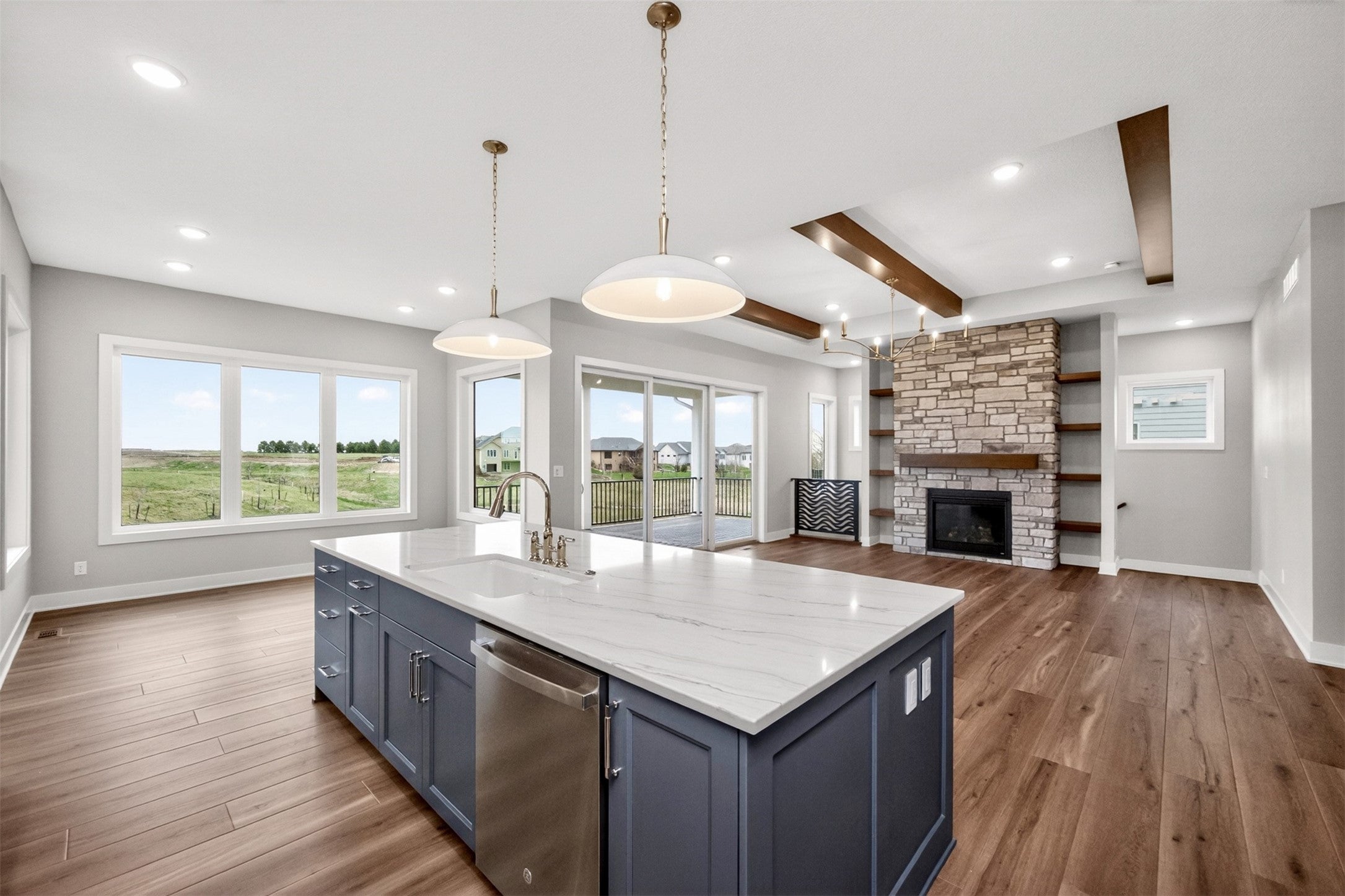Wake up to the serene views of pond and greenspace. Enjoy your owner?s oasis with separate dual vanities & walk in closet with island attached to laundry. Private guest suite & office on opposite side of home. Centrally located your kitchen has large range wall oven, 4person island, spacious dining, & prep room just off the grilling deck. Detailed great rm boasts 11? ceiling, gas fireplace & doors to covered deck. The finished lower level has 2nd family room with fireplace, space for the pool table, wet bar, bedroom suite & second bedroom or gym. Your large 3 car garage will feel like 4 with the John Deere garage downstairs for extra storage needs. The details in this home will impress including the central vac, irrigation, & landscaping. Across from neighborhood park & trails. Located in Waukee schools and easy access to shopping, dining, 35/80. All information obtained from seller and public records.
