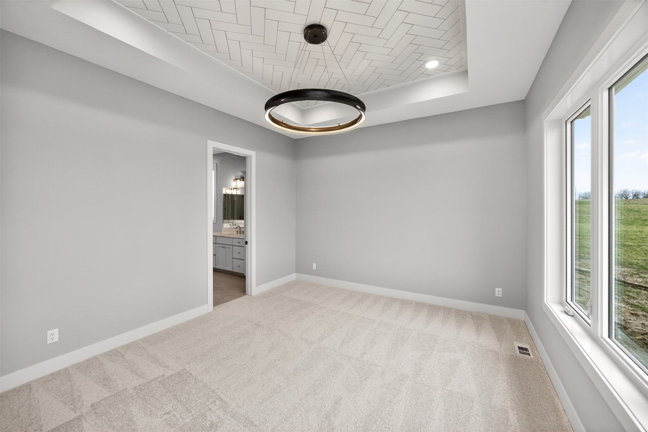 Wake up to the serene views of pond and greenspace. Enjoy your owner?s oasis with separate dual vanities & walk in closet with island attached to laundry. Private guest suite & office on opposite side of home. Centrally located your kitchen has large range wall oven, 4person island, spacious dining, & prep room just off the grilling deck.