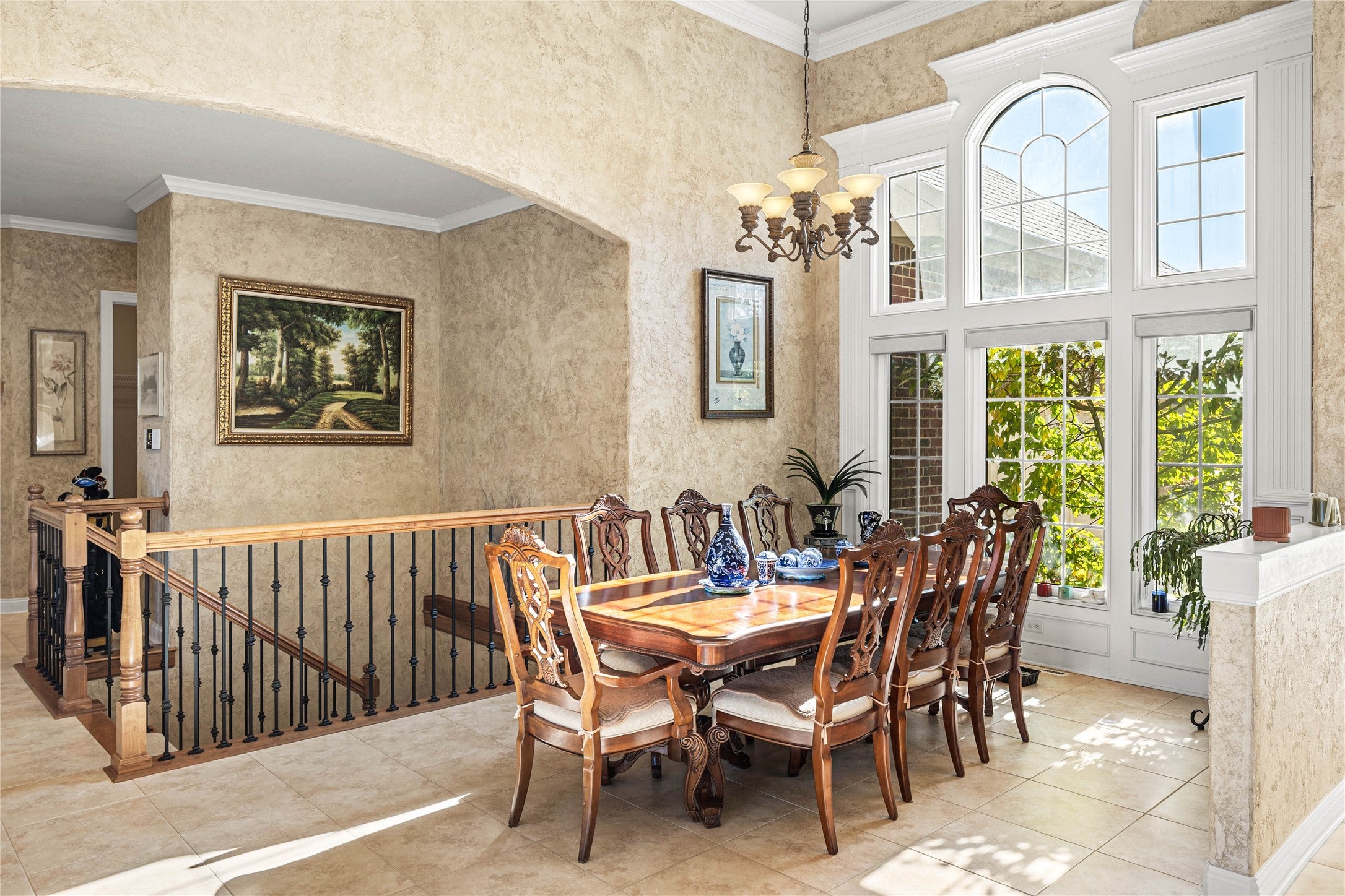 Executive Kimberley resale backing Otter Creek Golf Course on over half an acre with just under 5,000 total sq ft. The home features a dramatic living room with soaring 17-foot ceilings, a formal dining area, and a beautifully appointed kitchen with rich wood cabinetry, granite countertops, a large center island, tile flooring, and high-end stainless appliances.