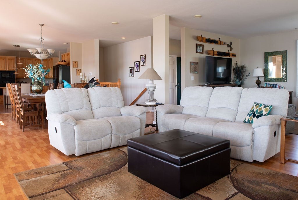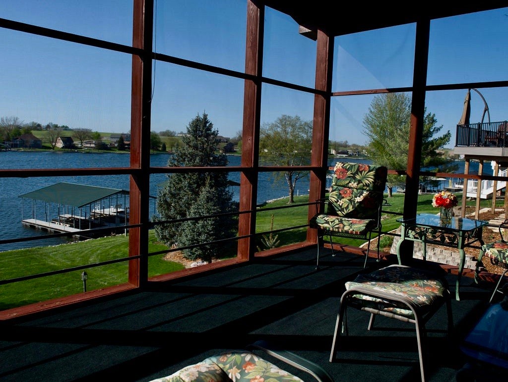 The moment you walk into this beautifully maintained home, youre welcomed by wide-open panoramic views of Sun Valley Lake and a bright, airy Florida-inspired tropical feel, enhanced by elegant interior plantation shutters throughout. Designed for comfort and entertaining, this spacious ranch offers 119 feet of shoreline, a double floating dock with swim deck, shaded arbor deck, and a screened-in lakeside patio perfect for enjoying peaceful mornings and relaxing evenings by the water.Inside, the home features formal dining, a large main-level kitchen plus a second full kitchen in the walkout lower level, making it ideal for hosting guests or accommodating two families comfortably. The owners suite offers lake views, a luxury bath, and walk-in closets, with 3 bedrooms plus a non-conforming bunk room and abundant storage throughout, including a large basement storage area.Additional highlights include an oversized/heated 3 car garage, backup generator, irrigated yard, concrete driveway, and gradual access to the shoreline. A rare opportunity to enjoy a spacious, welcoming lakefront home designed for gathering, relaxing, and making memories at Sun Valley Lake. Please allow 24 hour notice before showing.