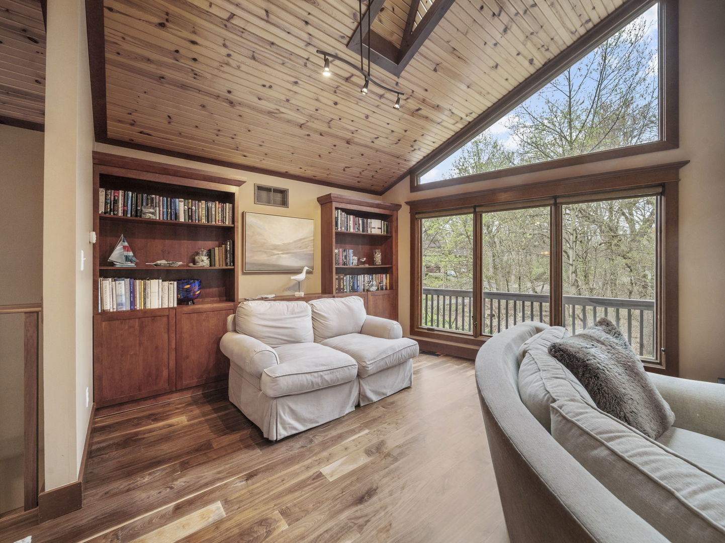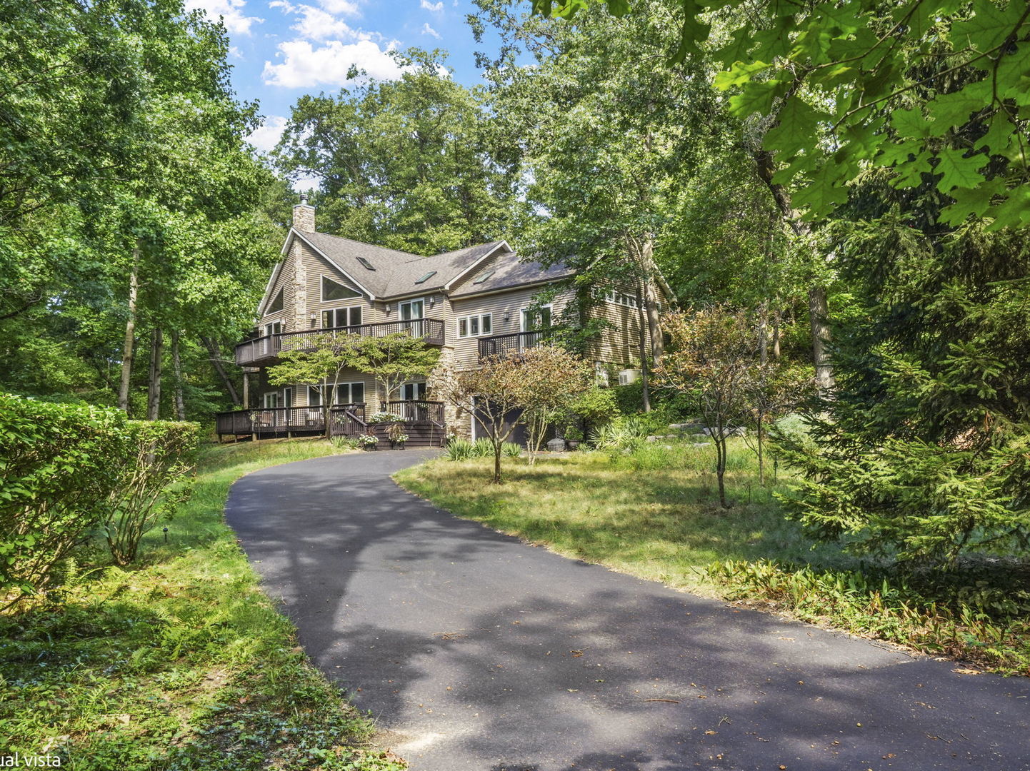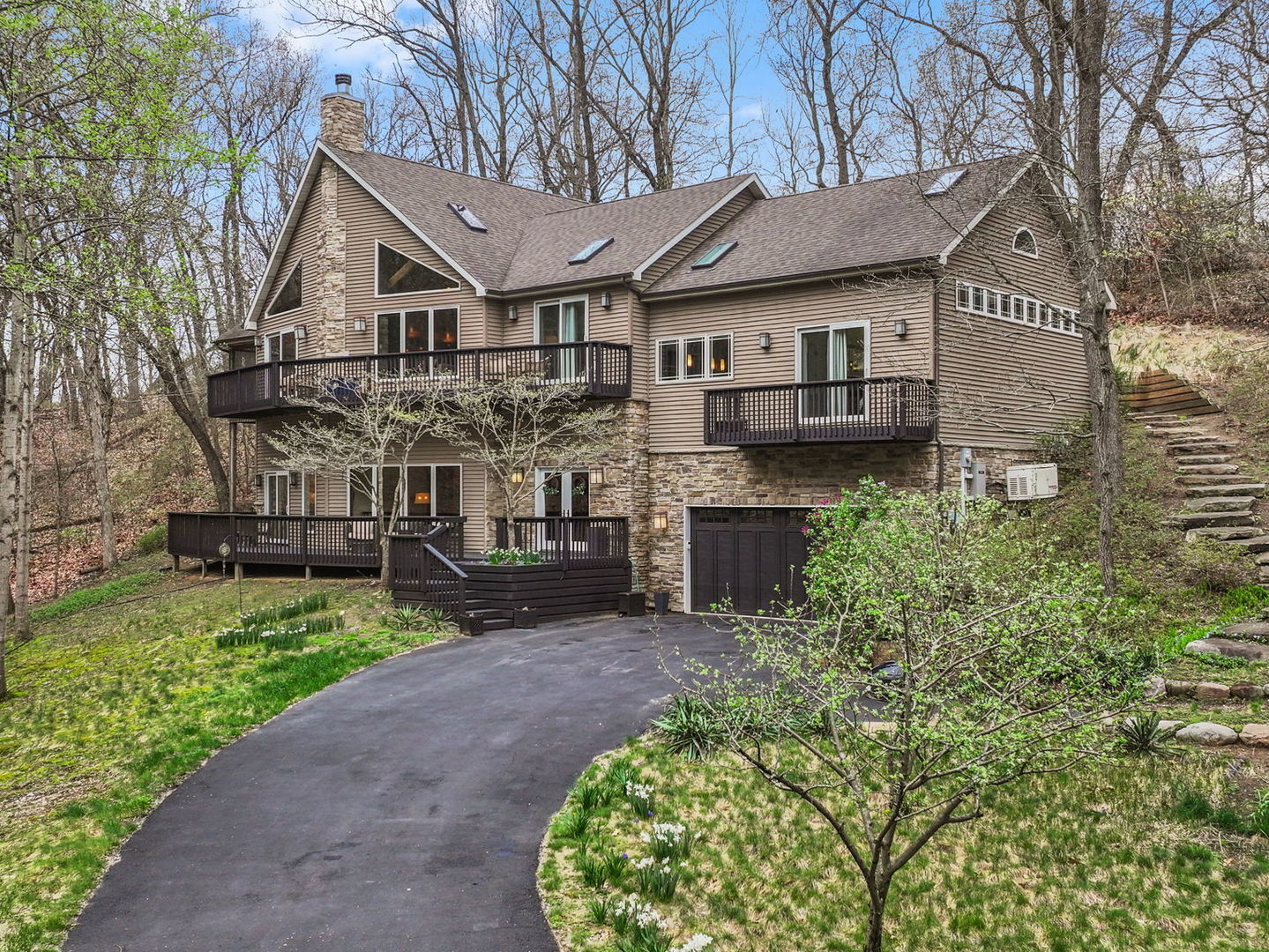 This 4BED/3.5BATH luxury home is set high against a dune, surrounded by native landscaping and undeveloped forest, offering exceptional privacy. Wraparound porches and balconies overlook a lush yard and private ravine. With 3,790 square feet of living space, this retreat features bright, open rooms with twelve-foot ceilings, tall windows, and skylights showcasing beautiful, unobstructed views.