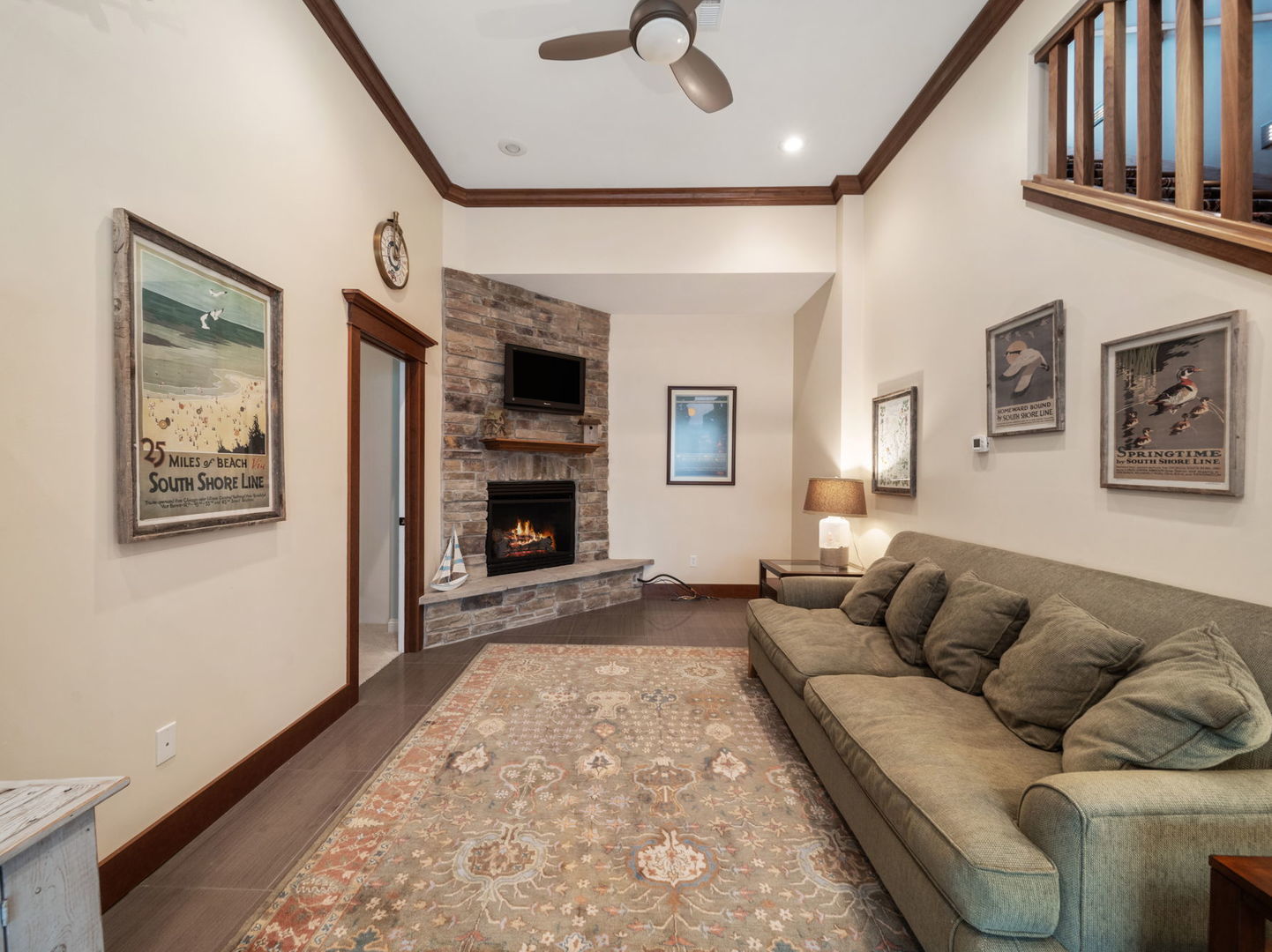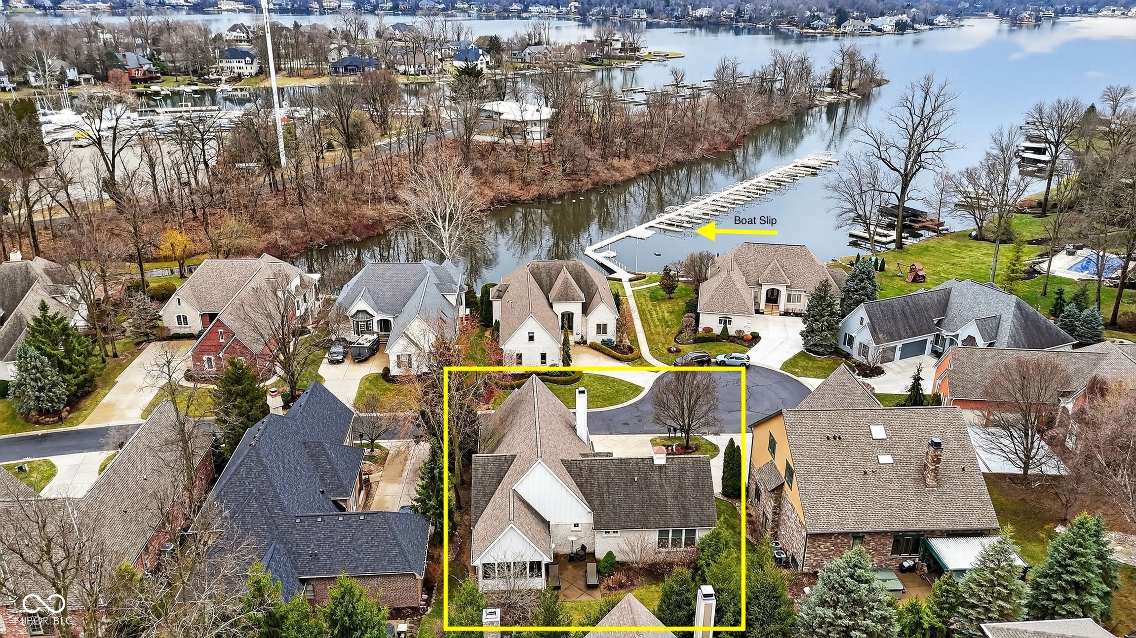 Experience the Geist Reservoir lifestyle with the rare combination of a deeded boat dock, walkable amenities, and low-maintenance living. Just steps from restaurants, coffee shops, fitness studios, ice cream, and scenic walking trails, this beautifully designed home offers lake-area living with everyday convenience. Inside, soaring ceilings and an open-concept layout create a bright, airy feel filled with natural light. The great room is anchored by a dramatic floor-to-ceiling fireplace, creating a warm focal point for gathering and relaxing. The chefs kitchen is designed for entertaining with generous prep space and seamless flow into the main living areas. Outdoor living is equally inviting with a screened porch and private patio surrounded by mature landscaping-perfect for quiet mornings or hosting friends after a day on the water. The home features three spacious bedrooms with private ensuite baths, offering comfort and privacy for family or guests. The finished lower level expands the living space with a welcoming family room featuring a gas fireplace, a dedicated home gym, two additional bedrooms, and abundant storage. Additional highlights include a convenient dumbwaiter and an extra-wide, extra-deep garage ideal for vehicles, storage, or lake gear. The HOA covers lawn care and snow removal, allowing for a true lock-and-leave lifestyle near Geist Reservoir-with boating, dining, recreation, and everyday conveniences just moments from your door.