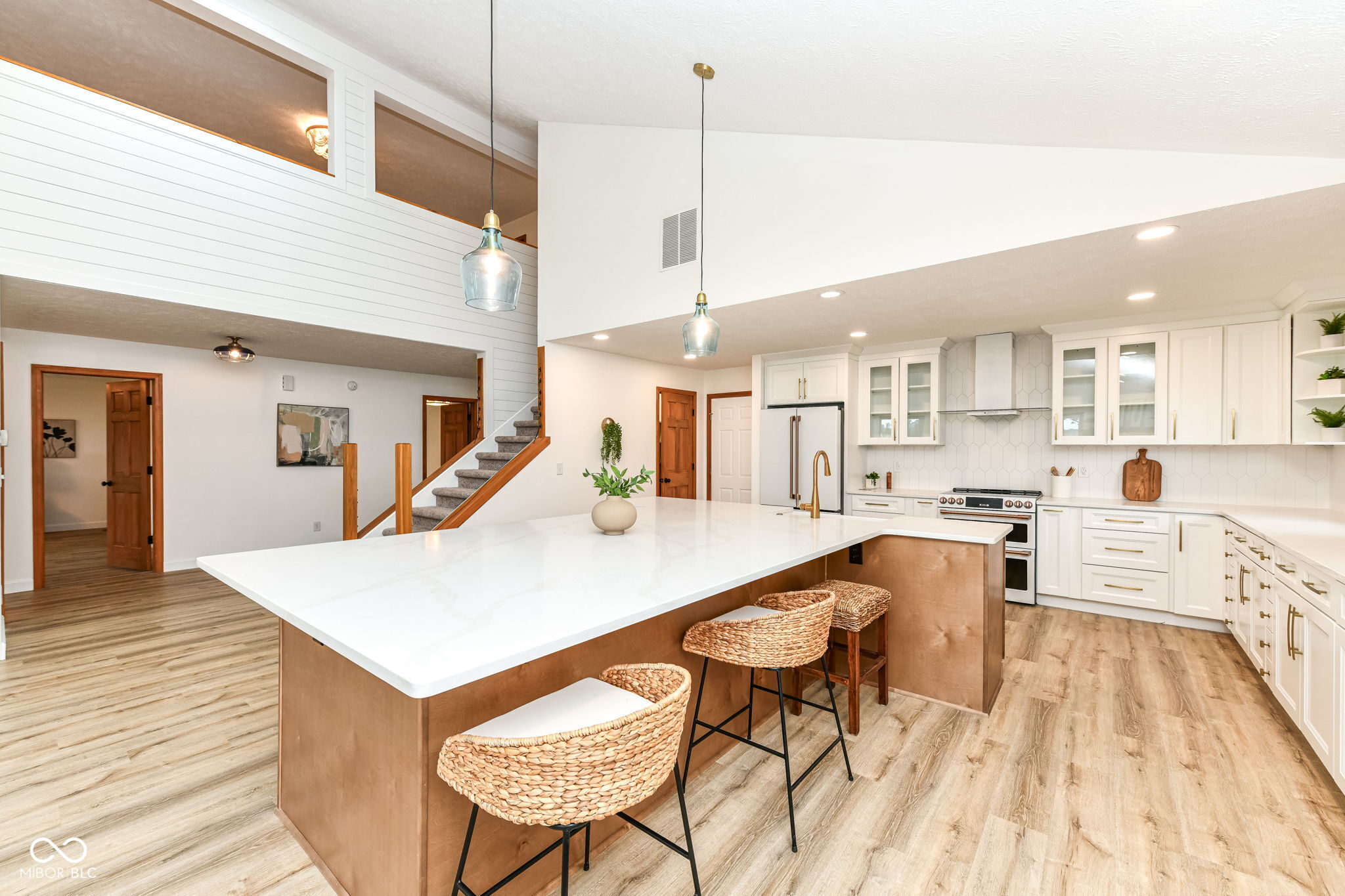 This stunning 5-bedroom, 4.5 bath home offers incredible views of Heritage Lake and an abundance of space for family and friends. The updated kitchen is truly the heart of the home-completely open to the dining room and great room-featuring an oversized island for meal prep and seating, plus ample cabinetry for storage.