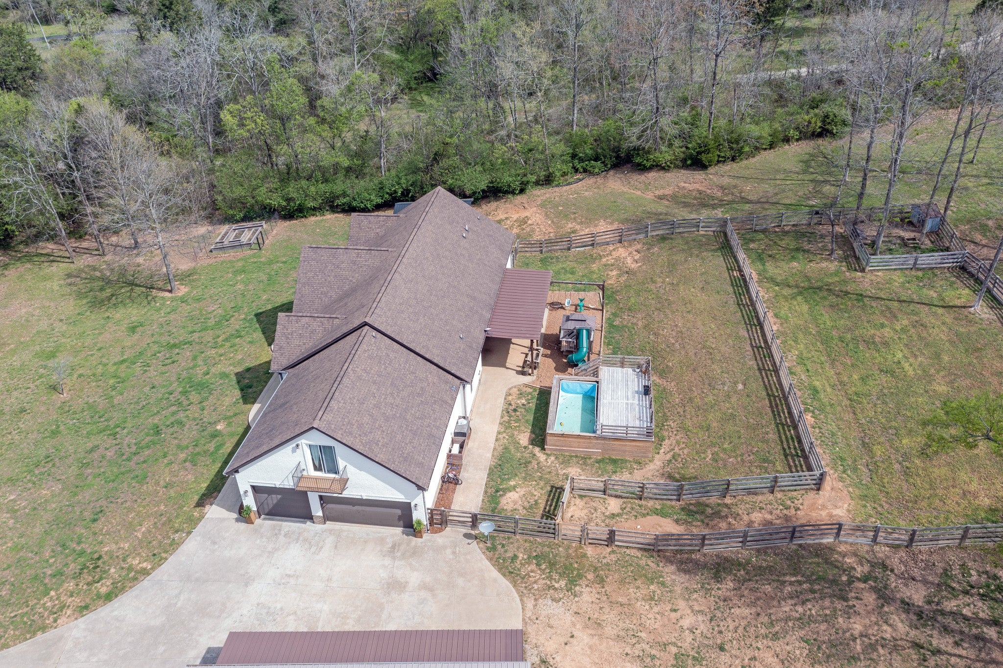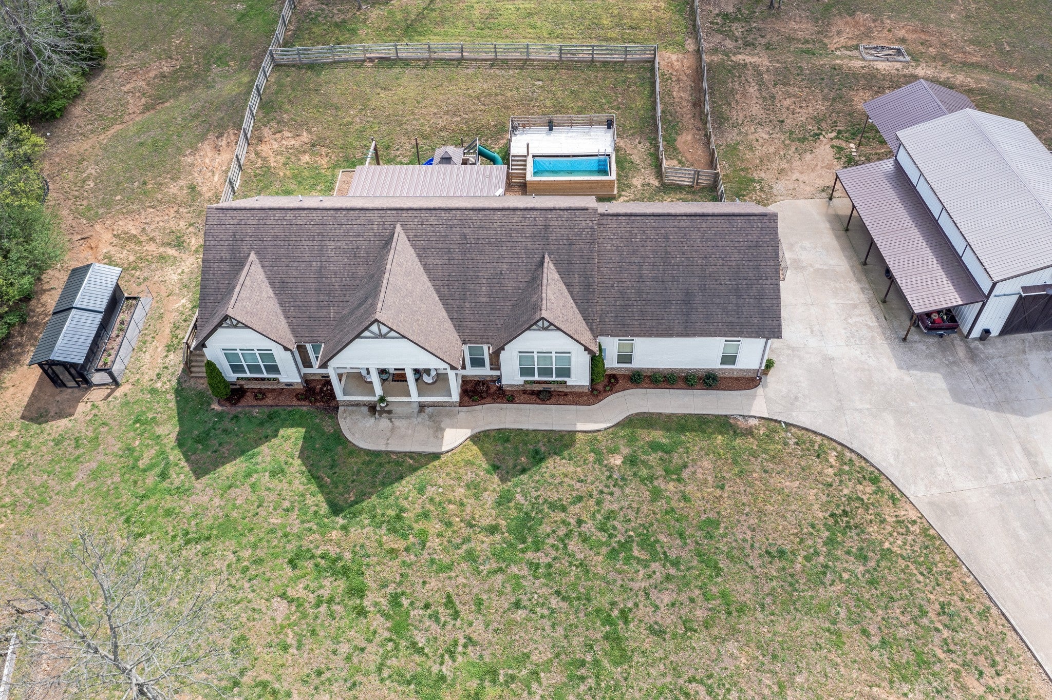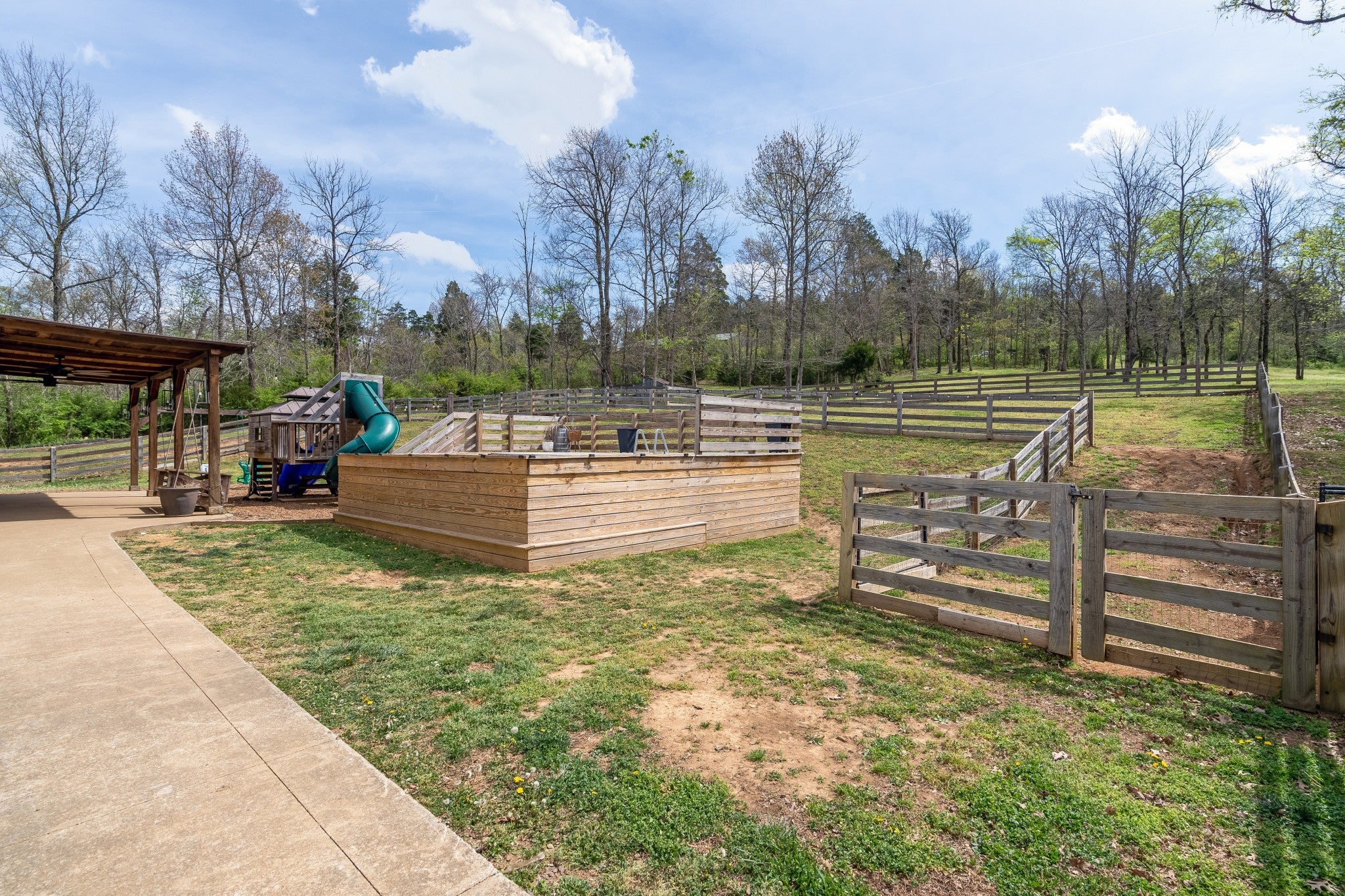 Welcome to Your Private Sanctuary! Discover refined country living on over 5 pristine acres, completely fenced and gated for ultimate privacy and security. The heart of the home features an open layout perfect for both daily living and grand entertaining. The chef-inspired kitchen boasts floor-to-ceiling cabinetry with soft-close drawers, while custom built-ins flanking the electric fireplace create a stunning focal point in the great room. The spacious dining area effortlessly accommodates large gatherings, and a completely remodeled utility room offers dual washer/dryer connections for added convenience. The luxurious primary suite includes a spa-inspired bath and private deck for your personal escape. Upstairs, youll find the 4th bedroom with custom built-ins or ideal as a rec room. Every bathroom has been thoughtfully updated, including the converted upstairs full bath.Outside, the property truly shines. A fully enclosed barn features a bathroom and additional storage under extended shed rooflines. The expansive backyard offers multiple entertaining spaces: a covered patio, wraparound deck surrounding an above-ground pool, custom playground with pea gravel surface, raised garden beds, and a charming chicken coop for those who appreciate farm-fresh living.Every detail has been carefully considered, from the water softening system and plantation shutters to the fresh landscaping and accent walls, creating a turnkey property thats move-in ready.