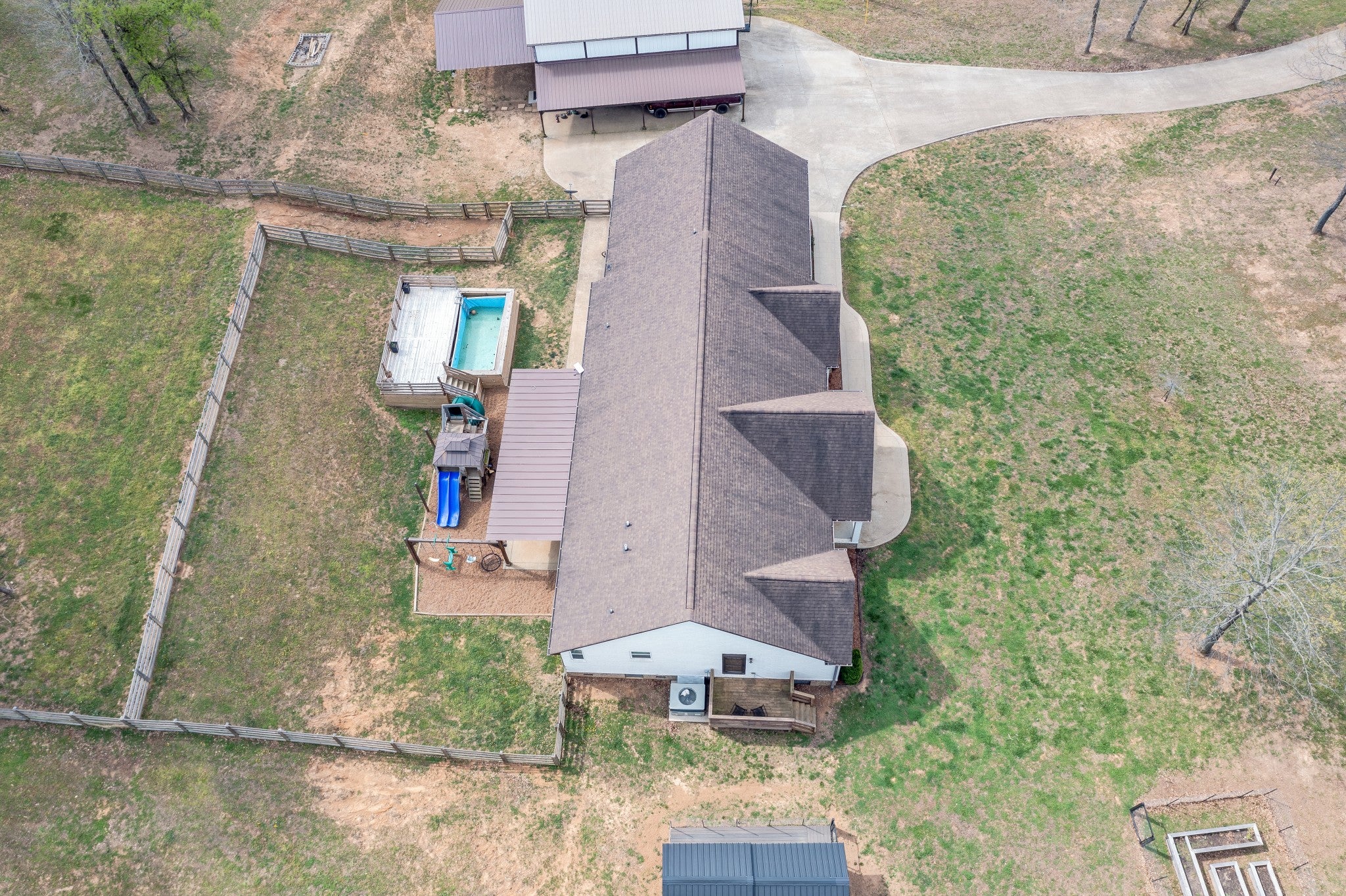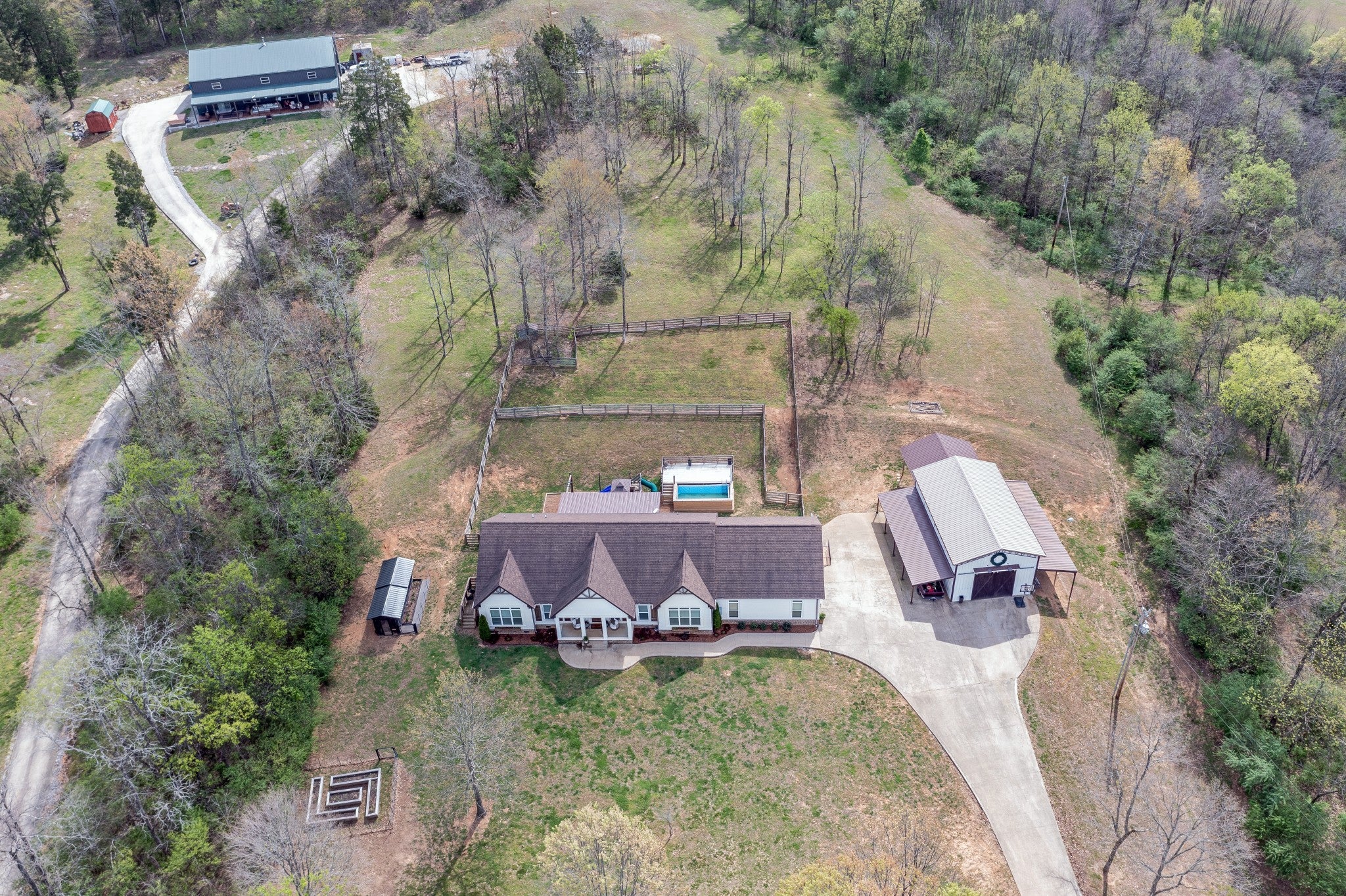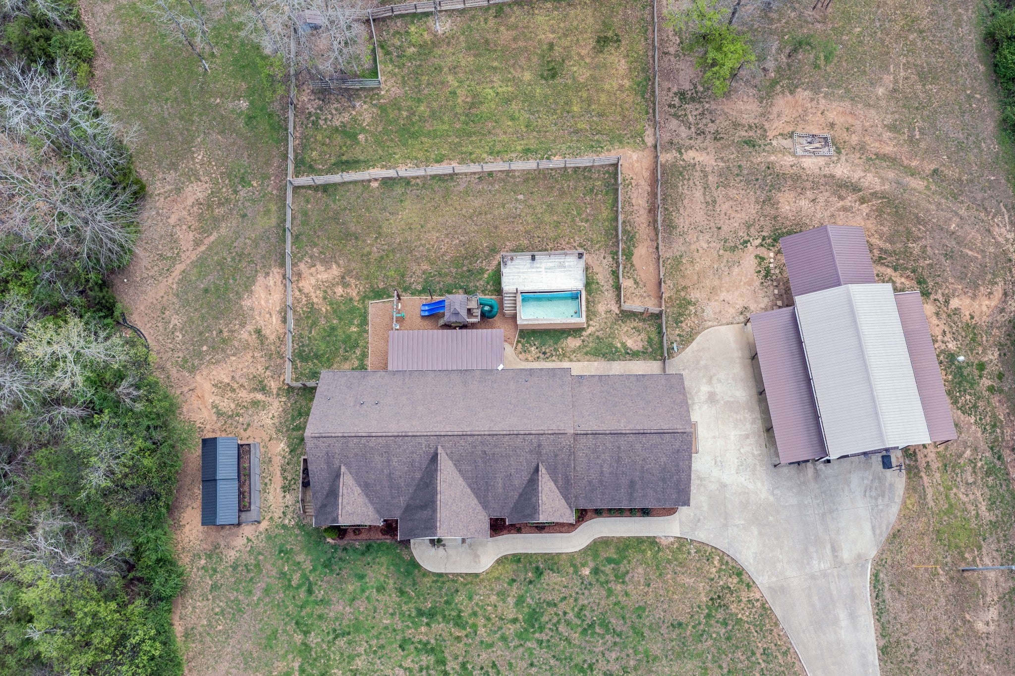 Welcome to Your Private Sanctuary! Discover refined country living on over 5 pristine acres, completely fenced and gated for ultimate privacy and security. The heart of the home features an open layout perfect for both daily living and grand entertaining. The chef-inspired kitchen boasts floor-to-ceiling cabinetry with soft-close drawers, while custom built-ins flanking the electric fireplace create a stunning focal point in the great room. The spacious dining area effortlessly accommodates large gatherings, and a completely remodeled utility room offers dual washer/dryer connections for added convenience. The luxurious primary suite includes a spa-inspired bath and private deck for your personal escape. Upstairs, youll find the 4th bedroom with custom built-ins or ideal as a rec room. Every bathroom has been thoughtfully updated, including the converted upstairs full bath.Outside, the property truly shines. A fully enclosed barn features a bathroom and additional storage under extended shed rooflines. The expansive backyard offers multiple entertaining spaces: a covered patio, wraparound deck surrounding an above-ground pool, custom playground with pea gravel surface, raised garden beds, and a charming chicken coop for those who appreciate farm-fresh living.Every detail has been carefully considered, from the water softening system and plantation shutters to the fresh landscaping and accent walls, creating a turnkey property thats move-in ready.
