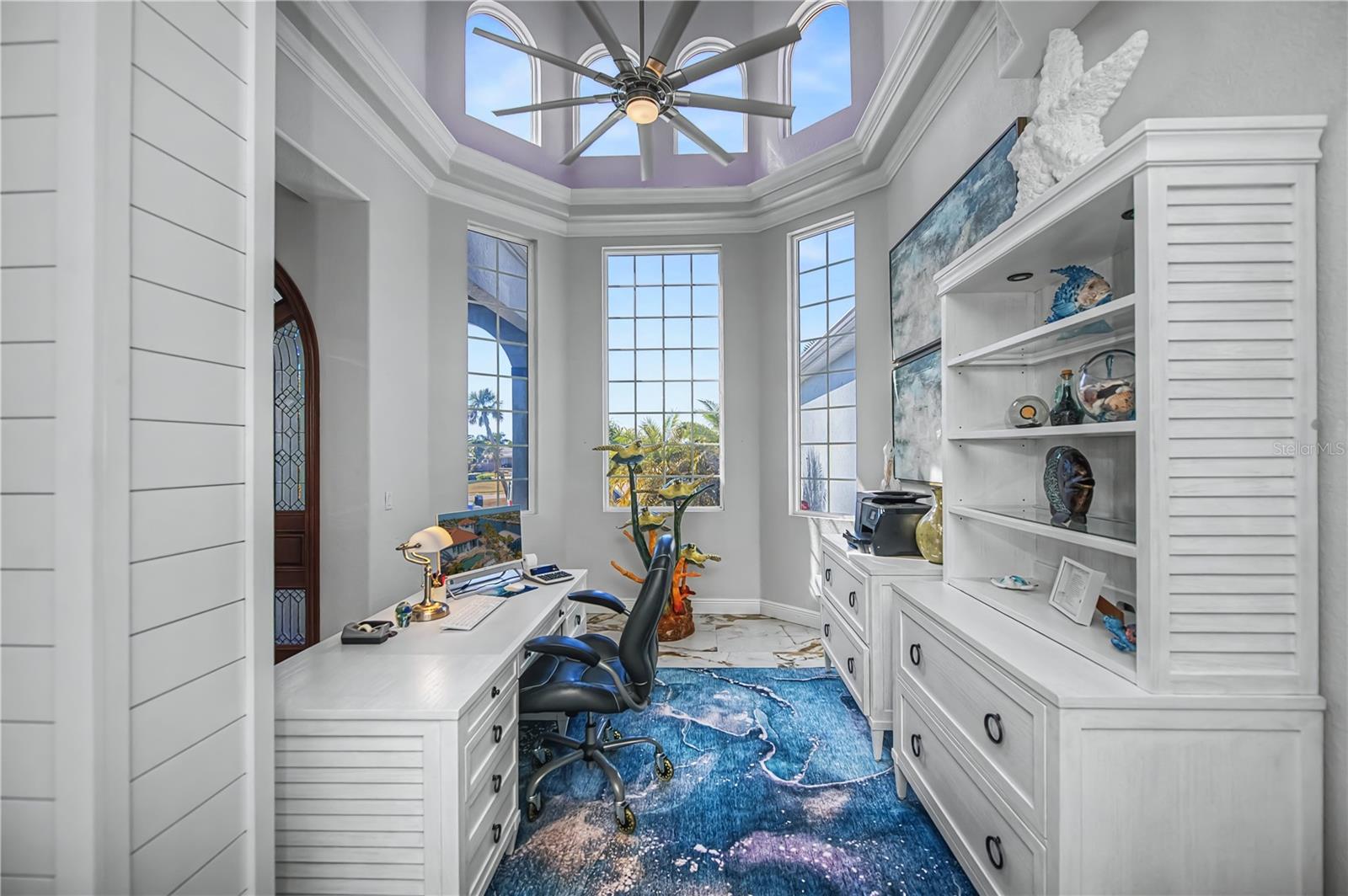 Experience the PINNACLE OF WATERFRONT LUXURY at 290 Tait Terrace, an EXQUISITE EXECUTIVE RESIDENCE set on a ILLUSTRIOUS 260 FT TIP LOT offering panoramic harbor vistas and quick SAILBOAT to the harbor and Gulf. Built with CONCRETE BLOCK TOP TO BOTTOM & ELEVATED at 12FT this custom 2008 4-BEDROOM 4-BATH 3-CAR GARAGE masterpiece accompanies refined open-concept living, graced by soaring 22-foot ceilings, custom crafted arched wooden front door, exceptional chihuly style glass chandeliers, elegant tray ceilings, stunning marble-like tiled floors and cathedral sunburst windows that flood every room with natural light and invite gentle cross breezes throughout. The open-concept office is a sophisticated serene workspace, thoughtfully designed with crown molding & coastal shiplap accents plus expansive desk areas, bathed in natural light from large windows/ soaring ceiling overlooking the grand foyer and circular driveway. This quiet retreat is perfect for focused work/ study while staying connected to the beauty outside.The den offers a cozy, versatile space for relaxation, reading, or a media lounge, providing additional privacy and comfort with sliders to the outside terrace/ pool w dimensional saltwater views. The oversized family room serves as the heart of the home, featuring a seamless flow to the adjoining spaces, highlighted by expansive glass doors that open to the terrace, creating an ideal setting for both intimate family moments and lively entertaining. Dining is an elegant affair here, whether enjoying a casual meal or hosting grand celebrations distinguished by its exquisite lighting and stunning views, while the adjacent gourmet chefs kitchen features 2 SPECTACULAR BREAKFAST BARS. The gourmet chefs kitchen is a work of art, showcasing granite countertops, premium stainless steel appliances, crafted wood cabinetry w meticulous attention to detail & perfectly positioned walk in pantry/butler closet.Retreat to the lavish master suite, a sanctuary w breathtaking saltwater views, coffered ceiling, plantation shutters, dual walk-in closets, w private pool & patio access. The spa-inspired ensuite indulges with a soaring 22-foot spa shower featuring resort style rain shower heads and bespoke fixtures, a jetted tub, & dual vanities crafted for luxury and comfort. The thoughtful split floor plan offers 2 generously sized guest suites on the main floor, while an impressive 4th bed Primary suite on the second floor boasts sweeping waterfront views & access to a private European-inspired balcony the perfect vantage point for serene mornings & breathtaking evenings, complete with an elegant ensuite bathroom.Outdoor living is an entertainers dream with a paver lined heated pool with separate spa, multiple terraces for lounging and dining, and two private docks with 2 covered boat lifts (Fishing Boat & Yacht) for effortless gulf access. Savor spectacular sunsets that paint the sky in vivid hues! Additional highlights include 2026 seawall being installed for full 260 ft, 2024 dual-zone A/C system, 2014 STANDING SEAM 100 YR METAL ROOF, NEW SEAWALL INSTALLED 2026, hurricane window, no HOA, public water/ sewer, & underground utilities every detail designed for luxurious waterfront living. Ideally located near Port Charlotte Beach, historic Punta Gorda, Sunseeker Resort, vibrant dining, festivals, & the airport. Dont miss your chance to own this extraordinary waterfront estate. Schedule your private tour today and step into your dream.