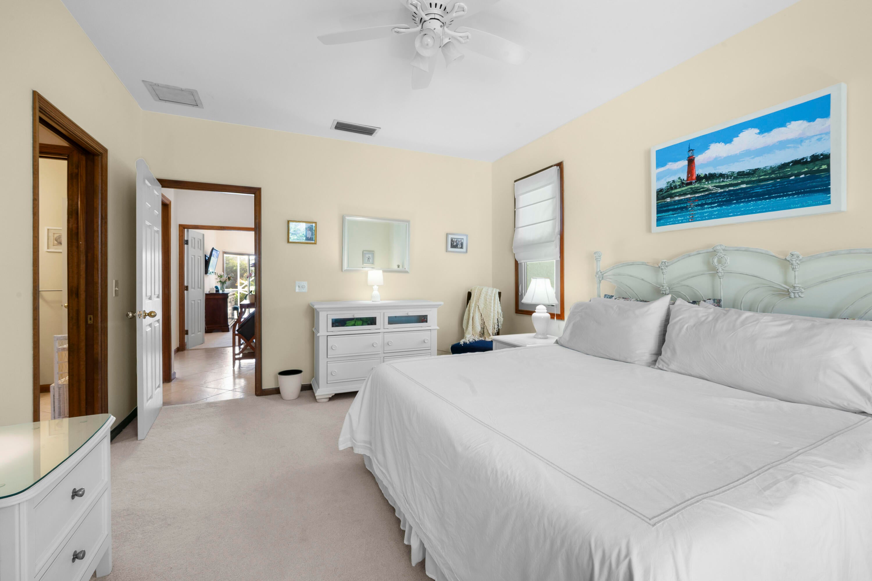 Price Adjusted! One of the best golf course and lake views in the community! Located on the 14th hole in prestigious Jupiter Hills Village. Jupiter Hills Village is a quiet secret.... an exclusive golf community of approximately 200 homes. This 2 bedroom with loft, 2.5 bath, with a 2.5 car garage is light filled with amazing panoramic views of the golf course and lake.