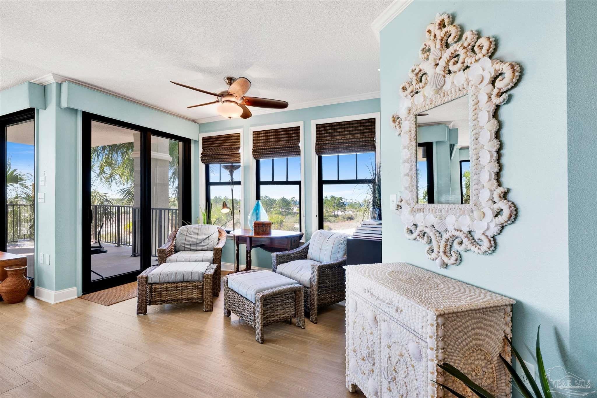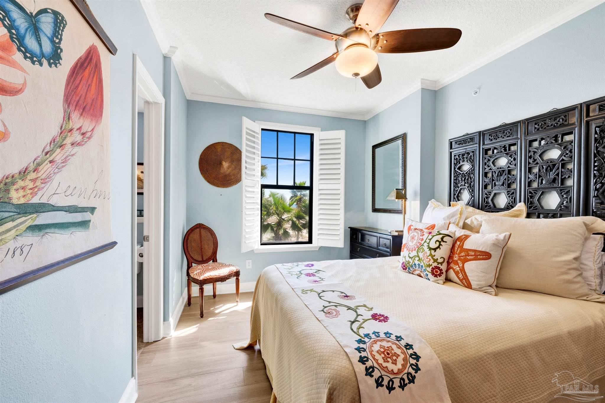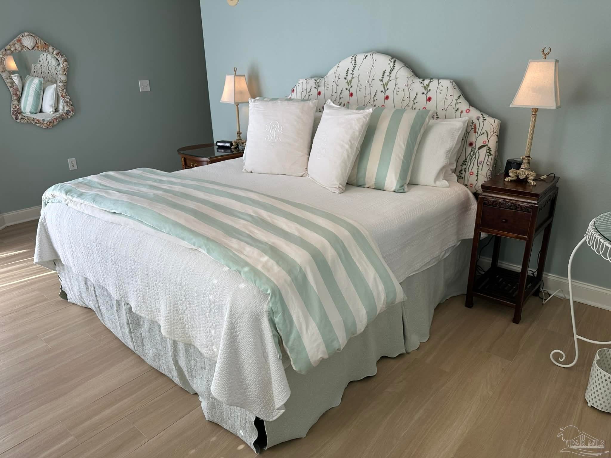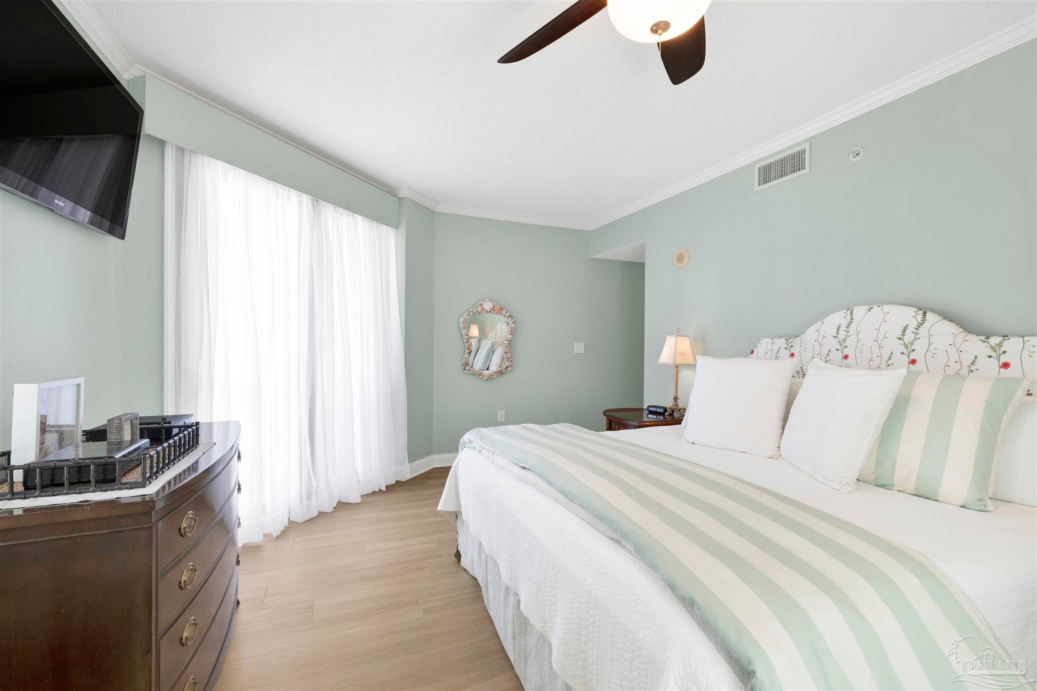 LOWEST PRICED 4 BEDROOM 4.5 BATH TOP FLOOR EAST CORNER CONDO IN PERDIDO KEY FL! Discover one of the Florida Gulf Coasts most elegant luxury Gulf-front communities in Mediterranean at Perdido Key FL! All residences in Mediterranean are 4 bedroom, 4.5 bath units with secure owner elevator access for the utmost in privacy. Mediterranean #1101W is a stunning east corner unit with 3,383 sq. ft. of living area. A jaw-dropping 1,400 sq. ft. wraparound balcony, newly refinished in 2023, spans the full length of this fully-furnished home and provides balcony access from all bedrooms. The living room invites comfort and ease with reclining leather sofas, and the kitchen is a chefs dream with a paneled refrigerator and Meile Appliances. Thoughtful touches like a built-in desk and abundant cabinets make this space even more functional. The Gulf-front primary bedroom has a king bed, and with its wall of windows, the room offers an inspiring vista to wake up to every day! The primary bathroom ensuite features a jacuzzi tub, walk-in closet, double vanity, and tile and glass shower. Each guest room has an adjoining bathroom with stone countertops and tile shower/baths. Other interior highlights include travertine floors in the living area, floor-to-ceiling windows/doors, recessed lighting, crown molding, and a bar area with ice maker and wine cooler. The condo conveys with an owners storage enclosure, a beach-side locker, and a deeded, covered parking spot directly across from the entrance. Mediterranean just completed a renovation project-new roof, railings, coatings, glass, exterior sealing, and more! Mediterraneans top-notch amenities include a heated indoor/outdoor pool, fitness center, sauna, owners lounge, kitchen, and meeting room with wireless internet. And dont forget that Mediterranean is just steps from the world-famous Flora-Bama where, from your balcony, you can enjoy a premium seat for skydiving Santa and fireworks on New Years Eve! Buyer to verify