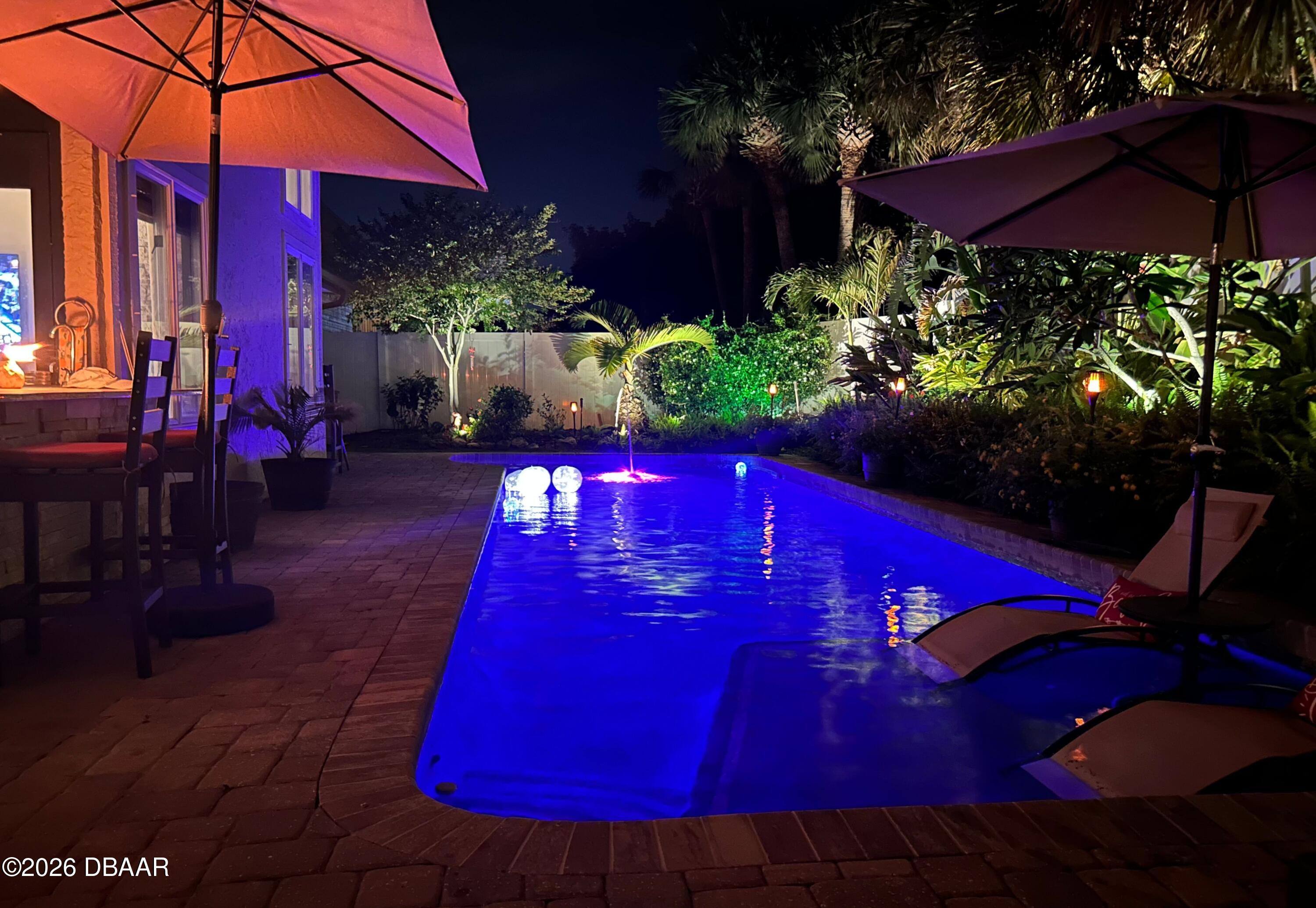 Welcome to your coastal retreat in Silver Sands, New Smyrna Beachjust two homes from the Van Kleeck beach walkover and only steps to the sand. Designed for laid-back living and effortless entertaining, this 4-bedroom, 4.5-bath home blends upscale upgrades with a relaxed coastal vibe. The outdoor living space is a true showstopper. Fire up the gas fireplace, mix drinks at the bar, challenge friends on the putting green, or host gatherings around the large, newly resurfaced pool complete with relaxing sun shelf. A paver pool deck and driveway, custom landscape retention walls, and lush tropical landscaping and designer lighting create a private, resort-style setting with plenty of room to relax or entertain. Inside, the open floor plan is bright and welcoming, featuring a cozy wood-burning fireplace, soaring vaulted ceilings stunning views of the outside area. Your updated kitchen features on trend granite counters, farmhouse sink, and updated lighting as well as stainless appliances and space for entertaining. Plenty of storage and a coffee bar in your butlers pantry with attached laundry area and powder bathroom. 2 downstairs bedrooms each with its own ensuite bath, gives everyone their own private space. The semi-spiral staircase invites you upstairs to your owners retreat with large en-suite bath with soaking tub and shower and walk in closet. Sliders lead you out to your private glassed sunroom for enjoying morning coffee or even more private space. Also upstairs is your 4th bedroom with its own attached bath and a loft space great for an office or reading area. New exterior paint as well as other thoughtful updates including a new roof (2025), new hot water heater, two newer A/C units, updated electrical with generator hookup, hurricane shutters, and new soffits and guttersmaking coastal living easy and low maintenance. Pull your boat right into the pull-through garage with 9 foot doors on each side. Also a great place to park the golf cart or store all the beach toys. Located minutes from Flagler Avenue, Canal Street, JBs Fish Camp, and the Canaveral National Seashore, this home delivers the best of New Smyrna Beach livingsun, sand, and a lifestyle that feels like a permanent vacation.