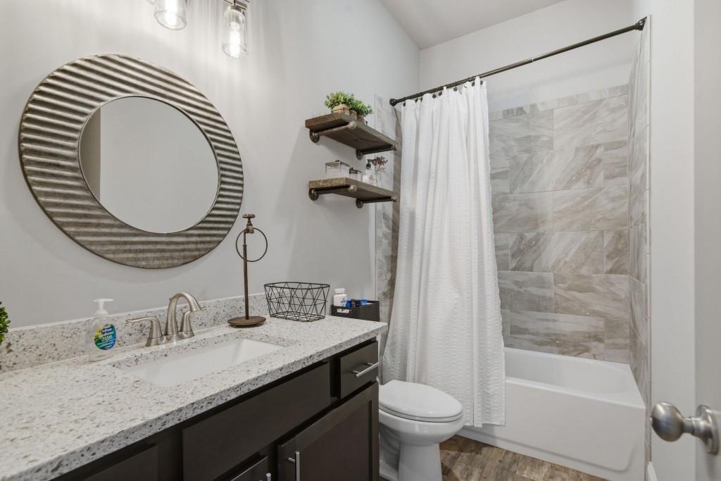 Blondie Acres is a little slice of heaven tucked away in the North Georgia Mountains. Centrally located in Cherry Log, Georgia between popular vacation spots of Blue Ridge and Ellijay Georgia. The barn house has been converted to have all the luxurious amenities. Relaxing upstairs master suite bathroom with custom tile, claw-foot soaking tub, and dual headed steam shower.