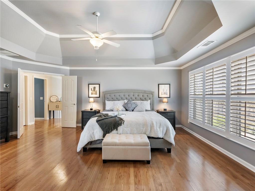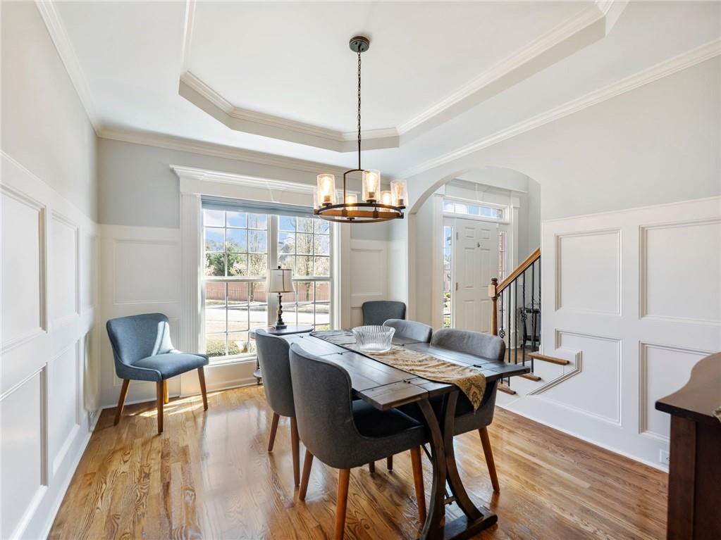 Discover the perfect blend of lake-life convenience, neighborhood charm, and timeless architectural details in this beautifully situated brick-front home on aquiet cul-de-sac in the River Falls community near Lake Lanier. A welcoming covered front porch with custom double entry doors sets the tone, inviting youinto a warm and thoughtfully designed interior.Crafted with both comfort and functionality in mind, the main level features elegant crown molding and an open-concept layout that flows effortlessly from thebright kitchen into the grand two-story family room. Here, a stunning stack-stone fireplace climbs all the way to the ceiling, creating a striking focal point forgatherings. A spacious dining room with tray ceilings offers the perfect setting for hosting family dinners or holidays.The large master suite continues the theme of comfort, showcasing tray ceilings and a generous master bathroom complete with double vanity sinks, aseparate shower, and a relaxing soaking tub.Outdoor enthusiasts will love the extra-deep double garage—large enough to securely store a 21-foot trailered boat in a temperature-controlled,weatherproof environment. Load and unload your gear with ease, then enjoy a quick 10-minute drive to the public boat ramp. After a day on the water, simplyback into the garage and leave everything in place, ready for your next adventure. There's still plenty of room for your vehicle and additional storage. Evenmore recreation awaits just a 15-minute bike ride away at Lake Lanier Beach Park and Fishing Pier, a beautiful Army Corps of Engineers park featuringdeep, clear water near Buford Dam, marked swimming areas, restrooms, and picnic spaces.The finished basement expands your living and entertaining possibilities with a stylish bar area, additional living space, and abundant storage options. Stepoutside to a private backyard retreat featuring an upper deck and landscaped lower patio area—perfect for peaceful mornings, grilling, or relaxing withfriends while enjoying wooded privacy.Located in a quiet, established 130-home neighborhood with a single entrance, River Falls offers exceptional privacy, security, and enduring communitycharm. Neighborhood highlights include a five-lane swimming pool (resurfaced in Fall 2025), two lighted tennis courts with pickleball striping, a welcomingcabana with fireplace and bathrooms, professional landscaping of all common areas, and a well-managed POA that protects property values and upholdshigh community standards. Its ideal location between GA-400 and I-985 ensures easy commuting and quick access to shopping, dining, and schools.Enjoy the best of lake living, outdoor recreation, generous indoor and outdoor spaces, and top-tier neighborhood amenities—all right at your doorstep.