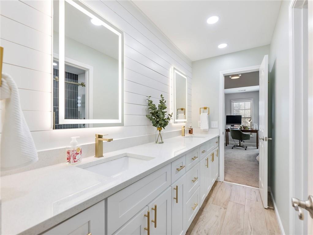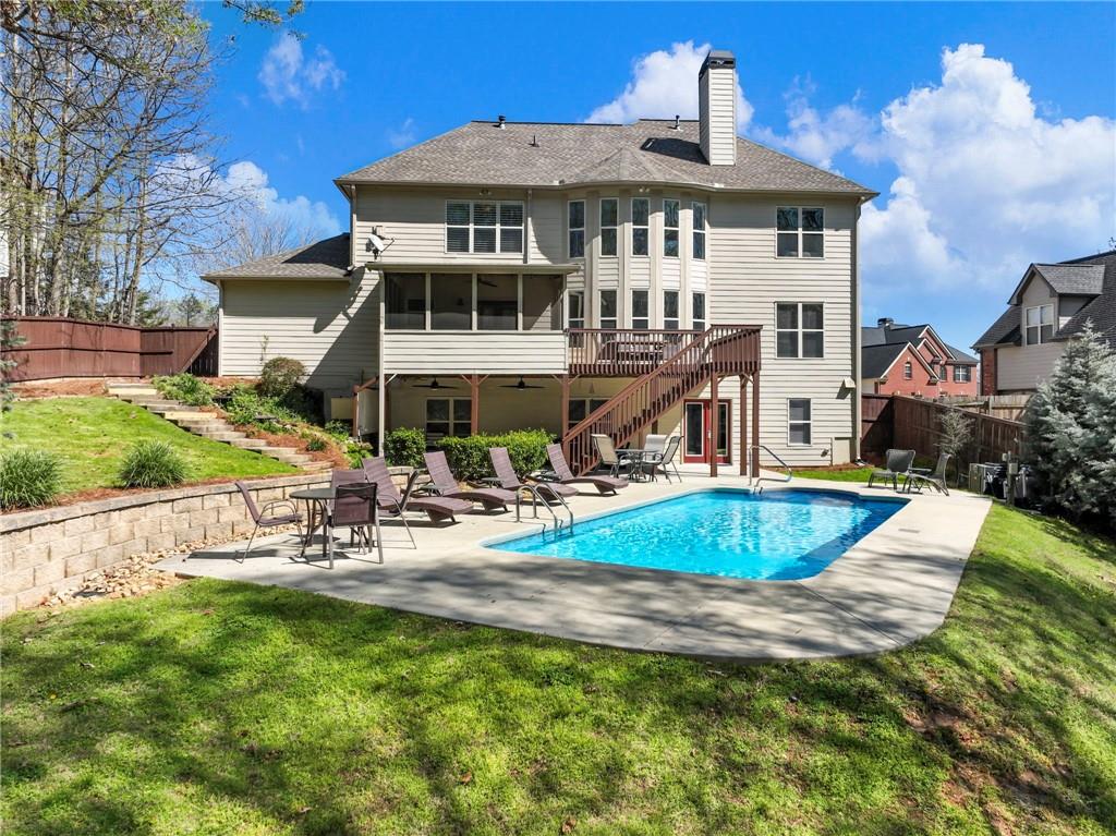 SALTWATER POOL! AI FOCUSED SECKINGER HS DISTRICT! Welcome to this beautifully updated and spacious home located near Lake Lanier, perfect for families seeking both convenience and comfort. This impressive 6 bedroom, 5 bathroom residence offers a blend of modern upgrades and timeless features throughout. Step inside to hardwood floors, freshly painted interior, formal living room with built-in bookcases, formal dining, and 2 story great room with wall of windows. RENOVATED KITCHEN features WHITE CABINETS w/ ample cabinetry, QUARTZ COUNTERTOPS, TILE BACKSPLASH, NEW DISHWASHER & NEW GAS RANGE, OVERSIZED ISLAND SEATS 4, perfect for gathering and entertaining. BEDROOM AND BATH ON MAIN. Upstairs, you will find the primary suite with hardwood floors, cozy fireplace, sitting area, and RENOVATED BATHROOM including NEW FRAMELESS SHOWER, NEW VANITIES, QUARTZ COUNTERTOPS, HEATED TILE FLOORS, EXQUISITE TILE THROUGHOUT leading to spacious walk-in closet. Secondary vaulted bedroom provides a private bathroom. Two other secondary bedrooms are connected by a RENOVATED J/J BATHROOM WITH NEW CABINETS, QUARTZ COUNTERTOPS, LIGHTED MIRRORS, NEW TILE, GORGEOUS FRAMELESS, TILED SHOWER W/CUSTOM NICHE. NEWLY FINISHED BASEMENT features oversized bedroom w/ trey ceiling, entertaining area, exercise room, kitchenette/ wet bar, hobby space, and unfinished storage area. LUXURY LIVING waits outside with your screened-in-deck overlooking a private, SALTWATER POOL, FENCED YARD, WATERFALL W/ KOI POND, and patio lounging area. Additional highlights include a NEWER ROOF, NEWER HVAC, EV OUTLET FOR TESLA, & WHOLE HOUSE GAS GENERATOR! This home truly has it all- space, style, and an unbeatable location! Convenient to 85 or 985.