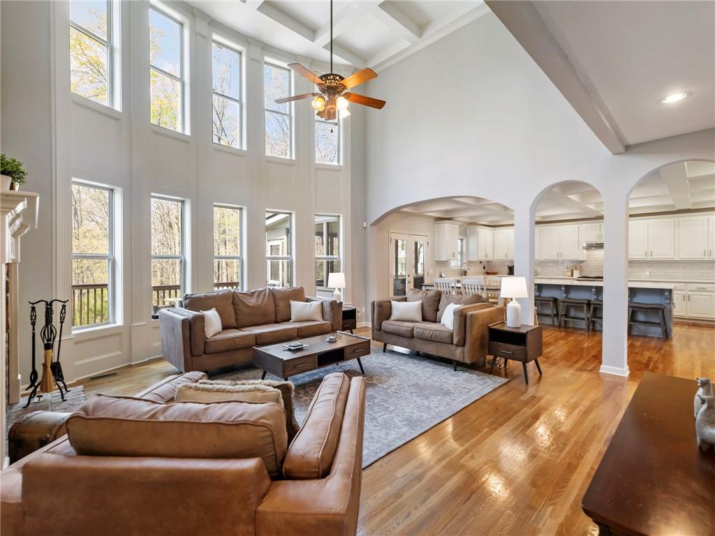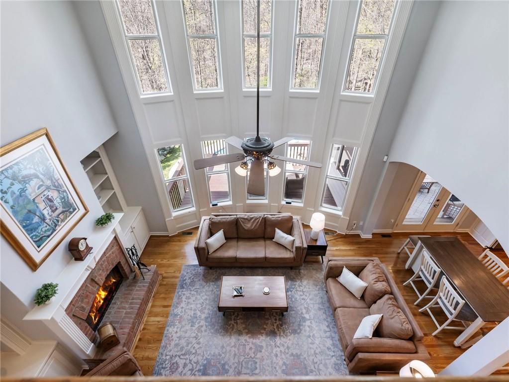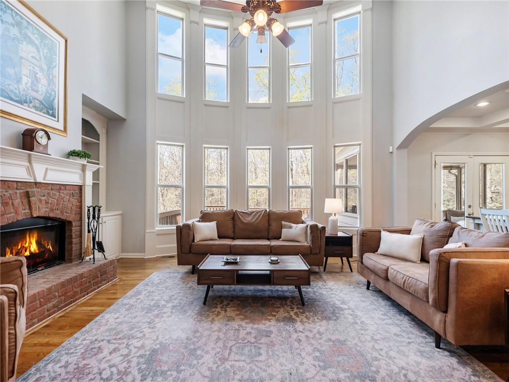Discover the perfect blend of lake-life convenience, neighborhood charm, and timeless architectural details in this beautifully situated brick-front home on aquiet cul-de-sac in the River Falls community near Lake Lanier. A welcoming covered front porch with custom double entry doors sets the tone, inviting youinto a warm and thoughtfully designed interior.