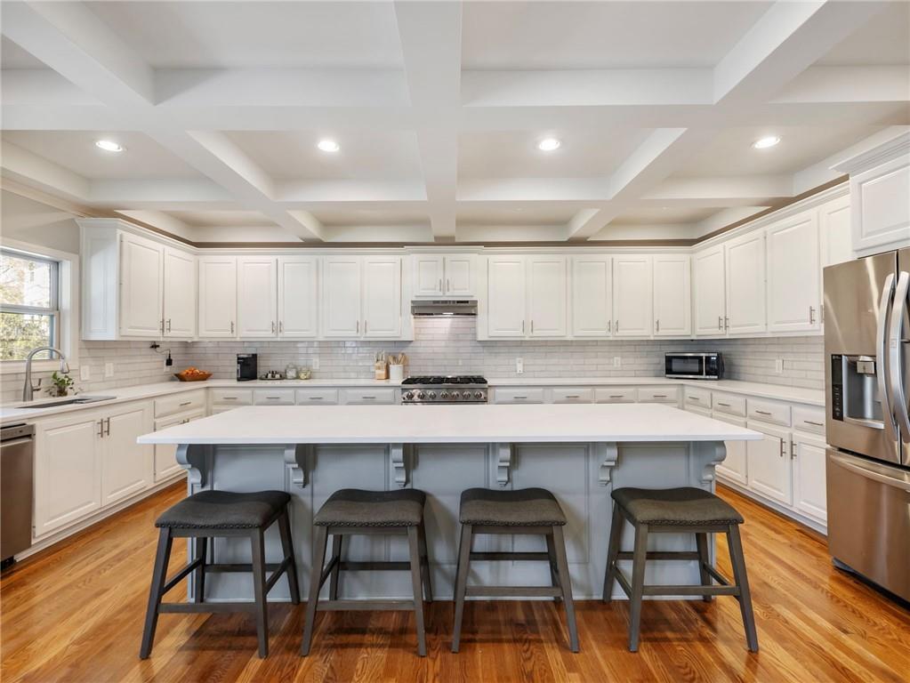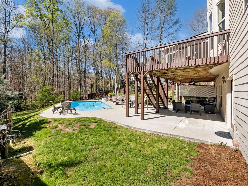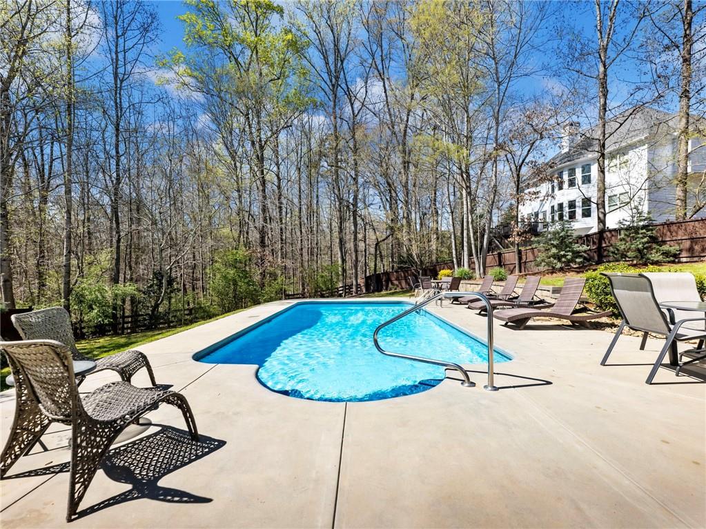 Truly one-of-a-kind custom-built home by Veritas Homes in the sought-after gated community of The Reserve at Big Creek, located in the highly desirable City of Buford School District. This intimate gated neighborhood features estate-sized lots of over one acre, offering exceptional privacy and luxury. This stunning home showcases numerous high-end upgrades, including exposed beams, coffered ceilings, tongue-and-groove inlay ceilings, custom built-in bookcases, barn doors, and five fireplaces with floor-to-ceiling stone. The luxurious owners suite features custom closet systems, a spa-like bath with soaking tub and dual shower heads, and designer finishes throughout. Outdoor living is equally impressive with a flagstone front porch, flagstone patio, and grilling deck. Enter through custom steel double front doors into an elegant main level featuring a formal dining room, private office, butlers pantry, keeping room, and a chefs kitchen with lighted cabinetry extending to the ceiling. The oversized island with storage on both ends is perfect for entertaining, while the spacious walk-in pantry with custom shelving provides abundant storage. The great room overlooks a spectacular backyard oasis featuring a heated saltwater gunite pool and spa with waterfalls, tanning ledge, palm trees, and professional landscaping. The expansive paver pool patio offers ample space for entertaining, with additional outdoor enjoyment from the screened porch off the great room and the covered patio off the terrace level. The terrace level is designed for entertainment and comfort, featuring a home theater with elevated seating, custom bar with cabinetry and kitchen area, fully wired media room, fireplace, bedroom, and full bath. Situated on one of the best lots in The Reserve, this corner property sits higher than neighboring homes in the cul-de-sac and allows for a circular driveway. The home overlooks open space, and the backyard area beyond the pool provides room for a potential sports field. The oversized three-car garage features 9-foot openings, epoxy flooring, and non-slip coating. Additional upgrades include extensive electrical enhancements with dimmers and additional lighting, sprinkler system, invisible electric fence, video camera system, under-decking system, new tankless water heater, Flow by Moen leak detection system, and a concrete-walled safe room. Too many upgrades to list this exceptional home combines luxury, privacy, and thoughtful design throughout.