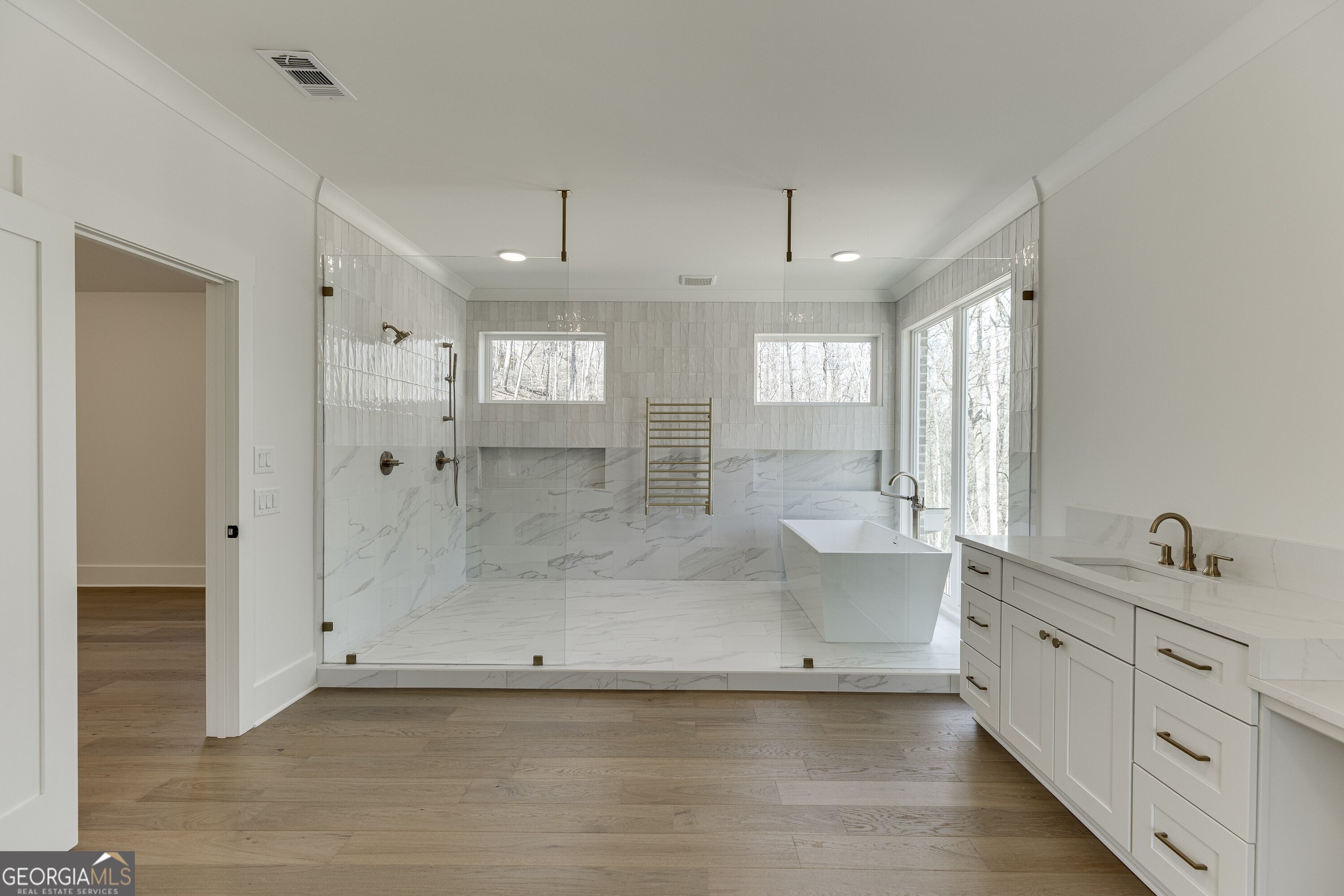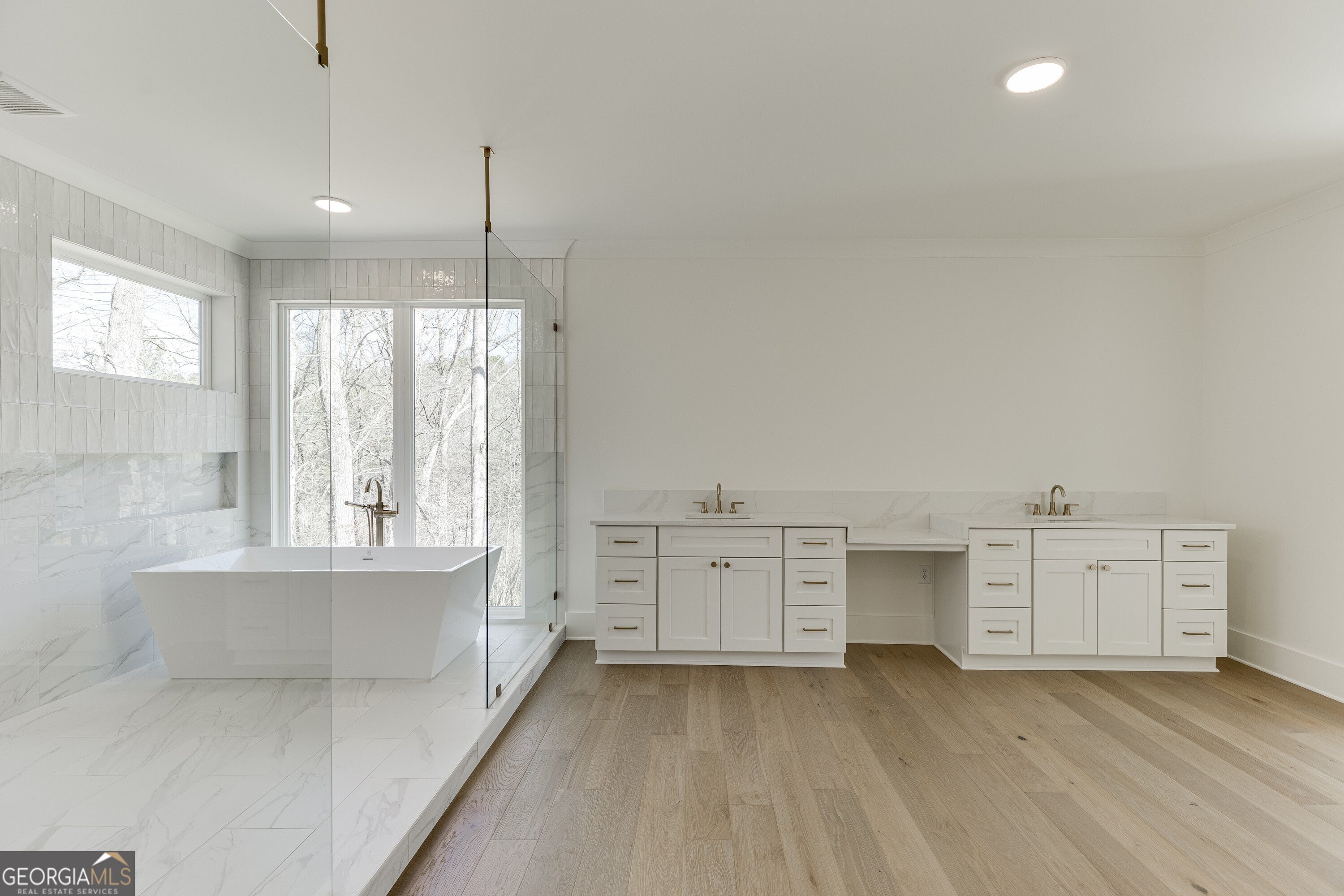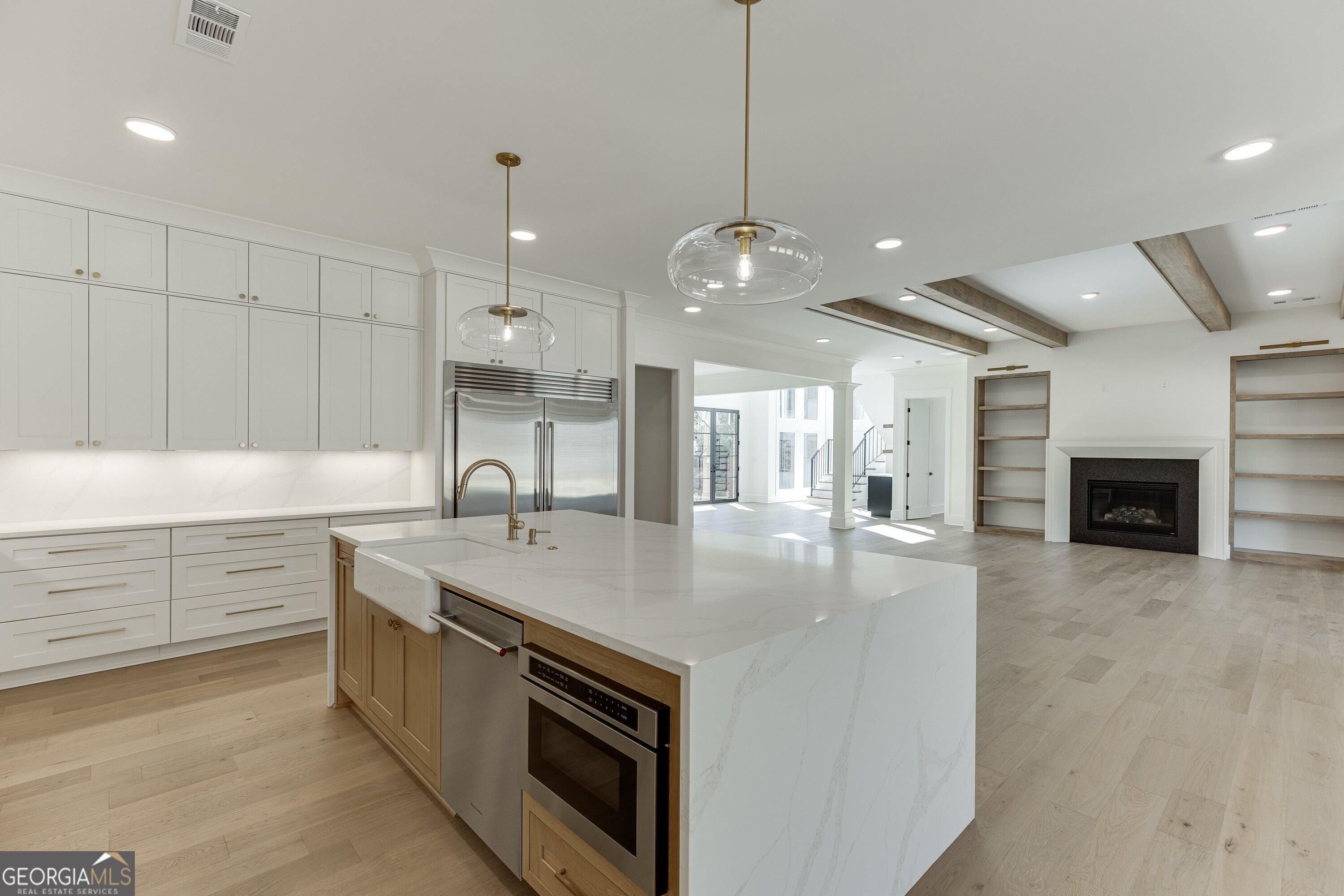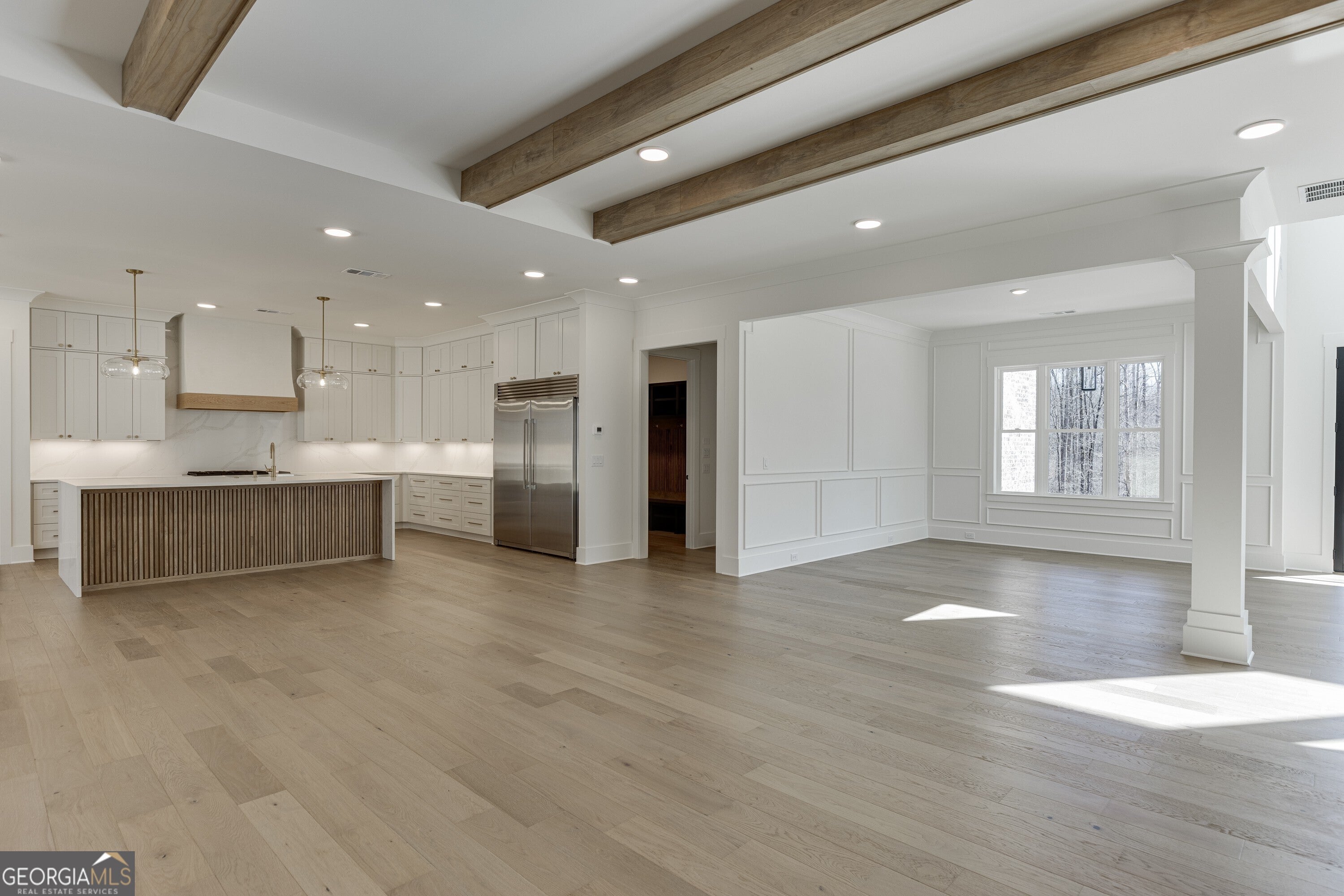 New Construction in the City of Buford! This custom-built home has an open concept floor plan that features a large kitchen with tons of cabinetry to the ceiling, an extended island with waterfall, quartz counter-tops, stainless-steel appliances, including a 48 slide-in oven/griddle, and a double 32 refrigerator and freezer units and a spacious keeping/dining area with floor-to-ceiling windows.