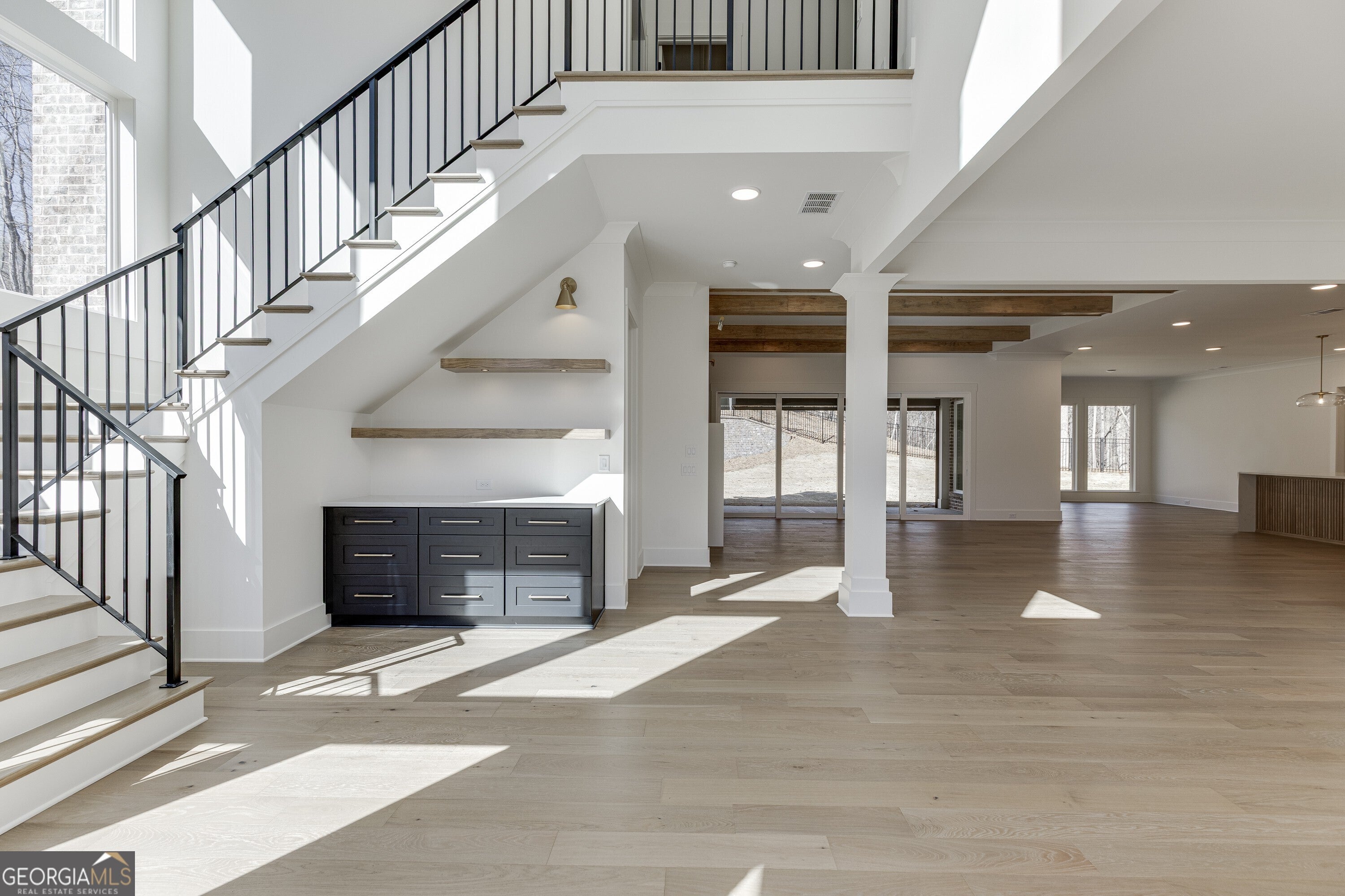 New Construction in the City of Buford! This custom-built home has an open concept floor plan that features a large kitchen with tons of cabinetry to the ceiling, an extended island with waterfall, quartz counter-tops, stainless-steel appliances, including a 48 slide-in oven/griddle, and a double 32 refrigerator and freezer units and a spacious keeping/dining area with floor-to-ceiling windows. HUGE walk-in pantry/scullery room (2nd kitchen) with built-in wood shelving, stainless appliances, and Quartz c-tops. Family Room with a 4-panel sliding door, fireplace flanking built-in bookshelf units and stained ceiling beams. Separate open formal dining area. Guest bed with private full bath on main. Private powder room tucked away from the living areas. Mud room with bench seating, storage cubbies and pantry closet off the garage. Hardwood floors on the main level, upstairs hallway, master suite, bath, and closet. The unique grand staircase with hardwood treads allows natural daylight to radiate into the foyer and a unique open stairway to the basement. The upstairs features a master suite with ceiling beams and a luxurious master bath with separate vanities and champagne bronze fixtures, an additional vanity area, tiled shower and free-standing tub share a huge tiled area with transom and floor-to-ceiling windows that are enclosed with frameless glass, access to the laundry room and a HUGE walk-in closet with full size mirrors, loads of wood hanging & adjustable shelving. Three large additional upstairs secondary bedrooms, all with private baths and walk-in closets. Upstairs laundry room filled with cabinetry and sink. Huge 24 x 14 covered rear porch with fireplace and extended grilling area. 10 ceilings & 8 doors on main level, 8 aluminum clad front doors, brick on four sides, upgraded trim details, tankless water heater, deep 3-car garages, and so much more. Please note pictures are of a previous build, so there will be differences from what is actually built.