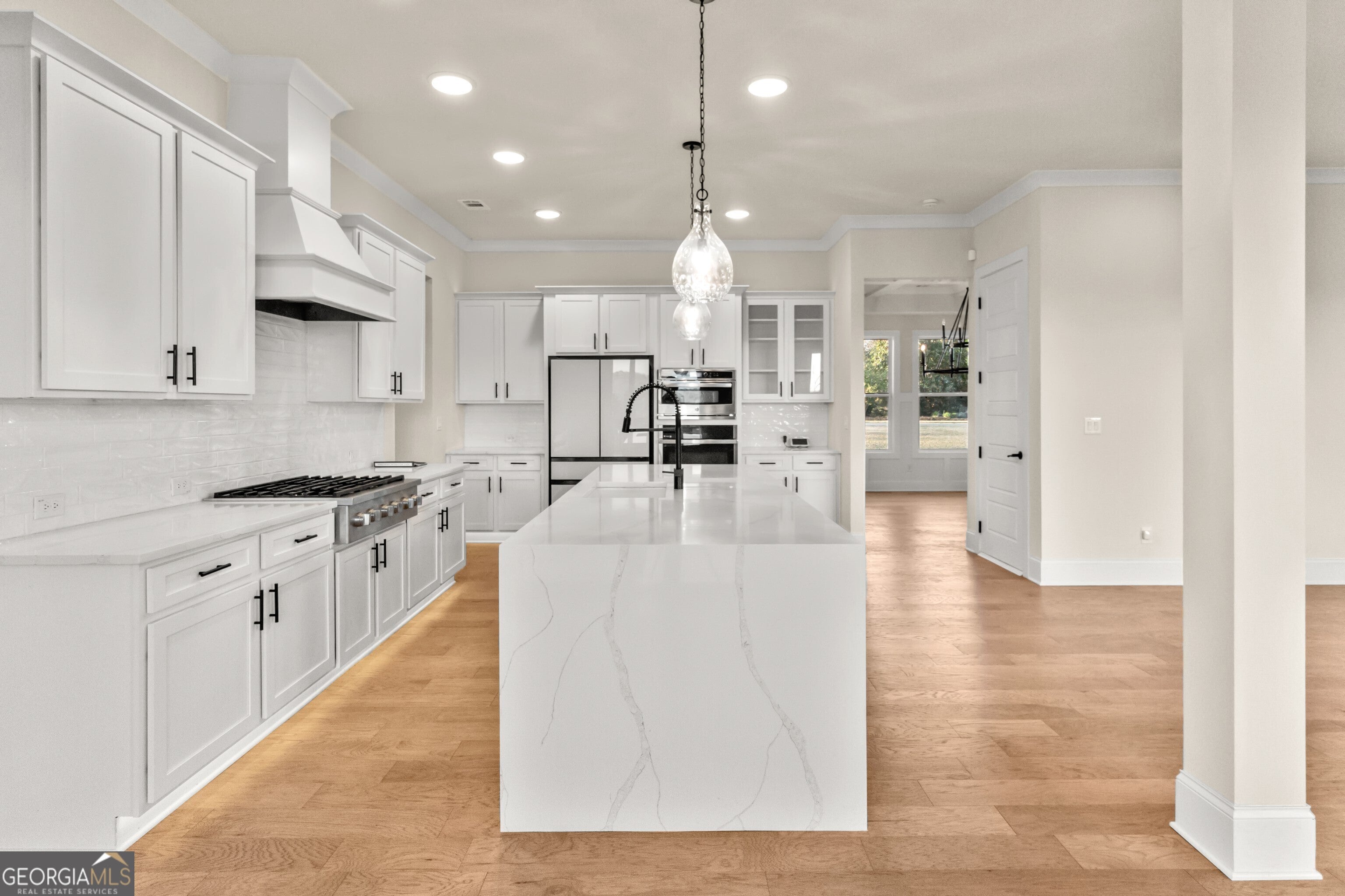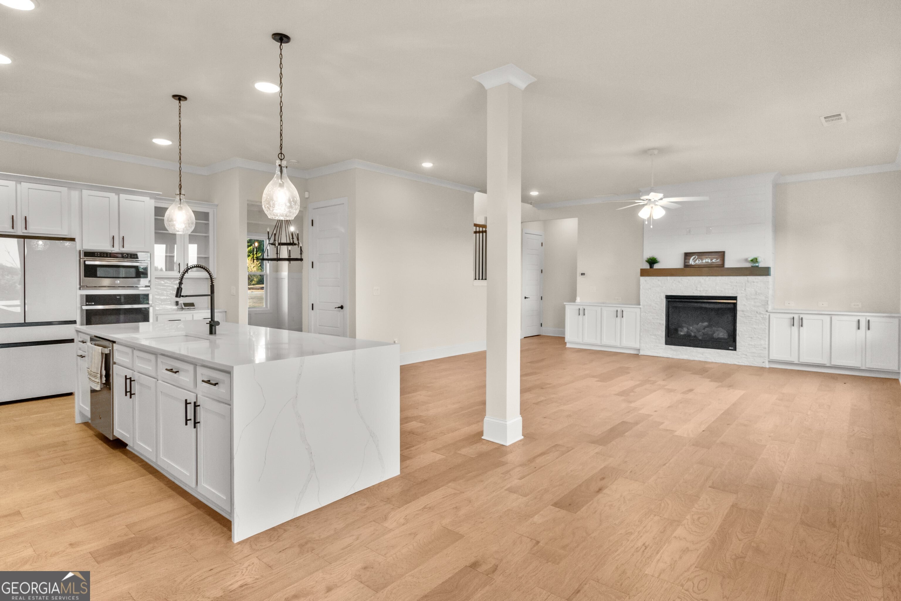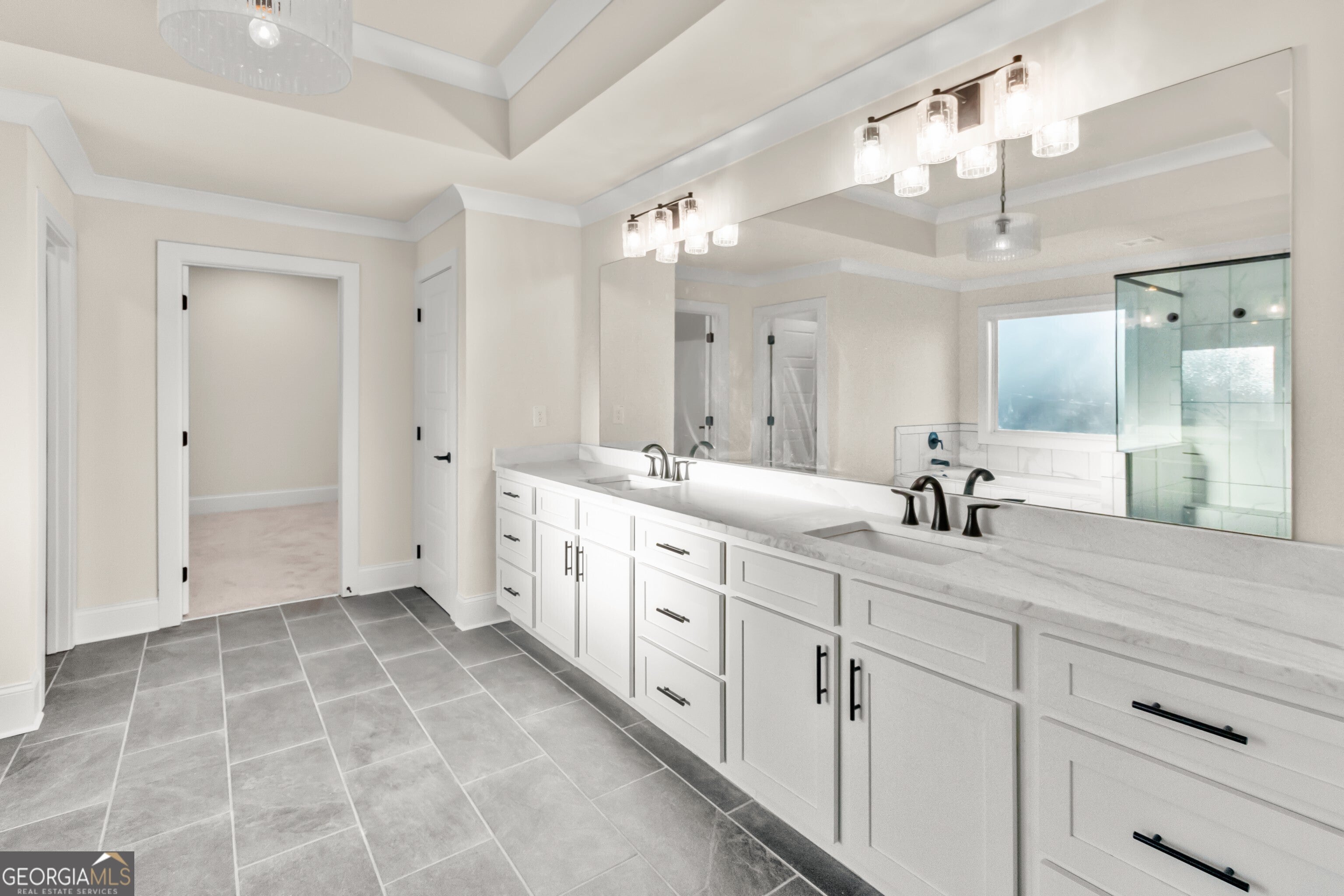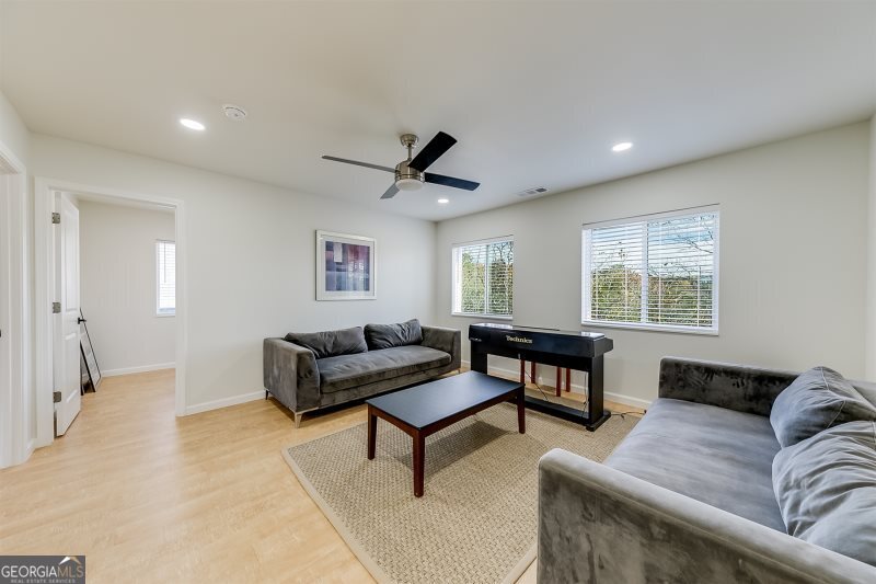 METICULOUSLY MAINTAINED AND DECORATED home in STERLING ON THE LAKE resort-style community! Upon entering this home, you will be flanked by the formal dining and formal living room areas which are currently being re-purposed as a formal living room and office space. This open floorplan welcomes you into the bright great room featuring coffered ceilings and built-in bookcases with views into the breakfast area and luxurious kitchen! Stunning kitchen provides an abundance of cabinets, chef's island that seats 4 comfortably, QUARTZ countertops, tile backsplash, farmhouse sink with window above, double ovens, and gas cooktop! BEDROOM AND BATH ON MAIN. Upgraded lighting and LVP throughout entire home! Upstairs, you will find a bedroom with it's own private en-suite along with two other secondary bedrooms joined by a Jack/Jill bathroom w/ quartz countertops. Natural light fills the spacious primary bedroom and flows into the primary bathroom with gorgeous tile, quartz countertops, frameless shower, soaking tub, dual vanities, and amazing walk-in closet! A LARGE BONUS ROOM is currently being enjoyed as an exercise room but could be a playroom, media room, or hobby room of your choosing! This wonderful home is in a great school district, near Lake Lanier and plenty of shopping. Neighborhood features several pools, playgrounds, tennis courts, pickleball courts, concert area, clubhouse with catering kitchen, zero entry pool with slide, lake with walking trails, outdoor fireplaces, and opportunity to canoe and fish!