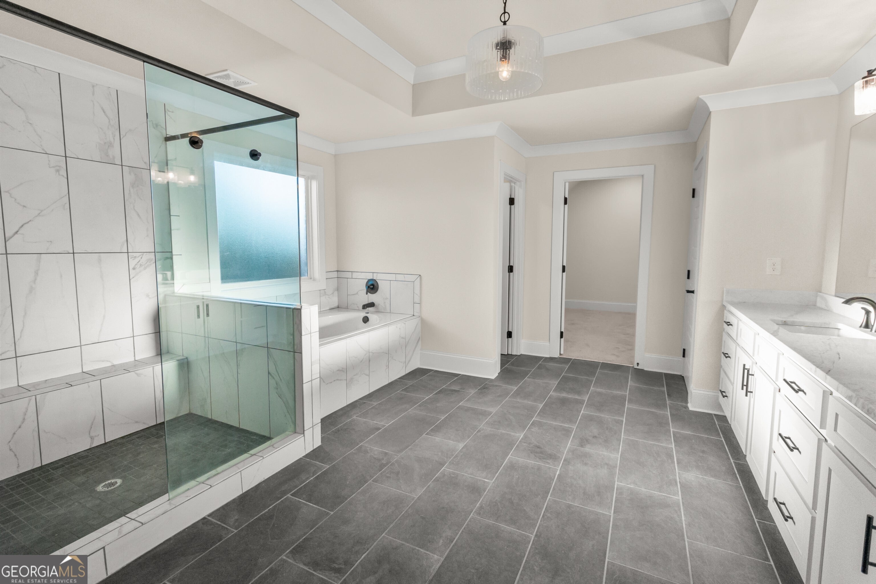 A Masterpiece of Luxury Living Impeccably Renovated and Designed to Perfection. Experience refined elegance in this completely renovated, June 2025, estate home, where timeless architecture meets modern sophistication. Nestled on a beautifully landscaped 1-acre lot with new aluminum fencing, this six bedroom, five bathroom residence showcases extraordinary craftsmanship and thoughtful design at every turn. From the moment you arrive, the three-sided brick and stone exterior and three-car garage hint at the grandeur within. Step inside to discover an interior defined by new site-finished hardwood floors, exquisite trim work, and plantation shutters throughout. The dramatic two-story living room with a sweeping curved wall of windows floods the home with natural light and creates an inspiring sense of space. At the heart of the home lies the brand-new custom kitchen, a culinary work of art completed less than three months ago. Every detail has been meticulously curated from the ceiling-height cabinetry and built-in beverage station with wine cooler to the solid quartz backsplash and a magnificent sage green island with quartz countertop and seating for the entire family. Elegant pendant lighting and soft-close cabinetry complete this showpiece kitchen, designed for both everyday living and entertaining in style. The main level also features an elegant dining room with coffered ceiling, a richly appointed library/office with a custom wall treatments, and a spacious guest suite with full bath. Upstairs, the primary suite is a serene sanctuary, featuring a lighted tray ceiling, private fireplace, and tranquil sitting area. The completely redesigned spa-inspired bathroom is a vision of luxury, with custom cabinetry, a freestanding soaking tub, a glass-enclosed walk-in shower, and a designer tile surround. A wall of linen cabinets and an expansive walk-in dressing room provide both beauty and function. Three additional bedrooms one en suite and two sharing a Jack-and-Jill bath offer vaulted ceilings and exceptional comfort. A convenient upstairs laundry room with utility sink completes the upper level. The finished terrace level is an entertainers dream, featuring stone columns, tray ceilings with beams, a custom wet bar with full-sized refrigerator, built-in sound system, and versatile living spaces for media, fitness, and a guest suite with French doors lend access to the private patio. Step outside to enjoy breathtaking views from the expansive TREX deck or relax on the terrace level patio, both ideal for entertaining or quiet evenings surrounded by nature. Additional upgrades include a 2023 17-SEER HVAC system, new tankless water heater, expanded septic fields for seven-bedroom capacity! Located within an active swim and tennis community, this home perfectly balances luxury and livability a rare combination of sophistication, comfort, and thoughtful design. Though lovingly renovated as a forever home, the sellers relocation to Florida offers a once-in-a-lifetime opportunity to make this exquisite property your own.