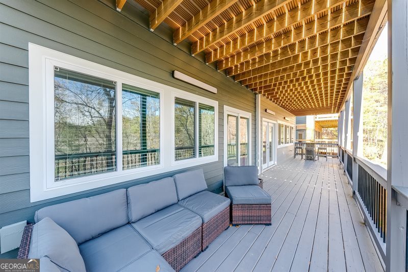 Dont miss one of Lake Laniers crown jewels! AMAZING is the best description for this one-of-a-kind opportunity on this huge, custom-built home with year-round views, offering complete privacy on a 5.45-acre lot with a very gentle walk to a deep-water point that features a covered, double-slip boathouse! As you pull into the gated entry and follow the long driveway, as the home cant be seen from the road, you will get a feeling of entering a secluded oasis. This custom-built home has enormous sq. ft. on the main level, and upon entering the dynamic leaded glass entry foyer with 14 ceilings, it gives you an immediate sense of the size of the home. The main level is comprised of a large kitchen with a floor-to-ceiling rock fireplace, loads of stained cabinetry, a huge work island, serving bar, a built-in refrigerator, oven, and warming drawer, a separate gas cooktop, a walk-in pantry, and a desk workstation area. Separate formal dining room with arched windows and built-in cabinetry. The atrium area off the kitchen has a stairway to the terrace level, and an amazing view of the cupola above. Dual conversation areas off the atrium have walk-out patios and are loaded with floor-to-ceiling windows letting in lots of natural light and great views. An additional separate wing off the atrium includes a theater area with another floor-to-ceiling rock fireplace, a full custom-built bar, and a separate billiards area flanked by radius-top windows. The primary wing of the main level is comprised of two massive offices, with a built-in desk and cabinetry. The primary suite, with a private patio and, of course, spectacular views, boasts two primary full bathrooms, two walk-in closets with built-ins, a private laundry room thats loaded with cabinetry, and a sink. Upstairs has an oversized guest suite with a private bath, accessed by a rear stairway and/or the elevator. There is also a private powder room off the rear hallway on the main level. The terrace level offers a two-story family room and a rock fireplace, tons of windows and natural light, tall ceiling height, etc., so it doesnt feel like any terrace level that you might have seen before. There is a full-size, huge kitchen and breakfast area, built-ins, two large split bedrooms, each with private baths, an additional powder room, as well as a second full-size laundry room. The terrace level also has a separate driveway with ample parking, a private leaded glass double door foyer entry, a huge two-car garage, plus numerous workshop and storage areas. There is also a dog washroom area with yet another powder room. Walk out to the heated gunite pool with pebble-tec flooring, hot-tub with spill-over, cool stamped decking, multiple sun-lounging areas, and endless views make for an incredible entertainment time. Take a gentle walk on the concrete walkway leading to a rare covered double-slip boathouse with power and water run and a party platform above. The deepwater point lot has tons of shoreline, riprap, and includes a mow permit to the water. The grounds are amazing with tons of plantings, shrubbery, trees, and carpet-like zoysia sod. The main level also boasts four garages, in addition to the two at the terrace level. There is nothing like this on the market, especially at the south end of Lanier. Its the total package, with the privacy, views, acreage, custom-built home, pool, covered boathouse, deep-water point lot, and location are all something to be seen before its gone!