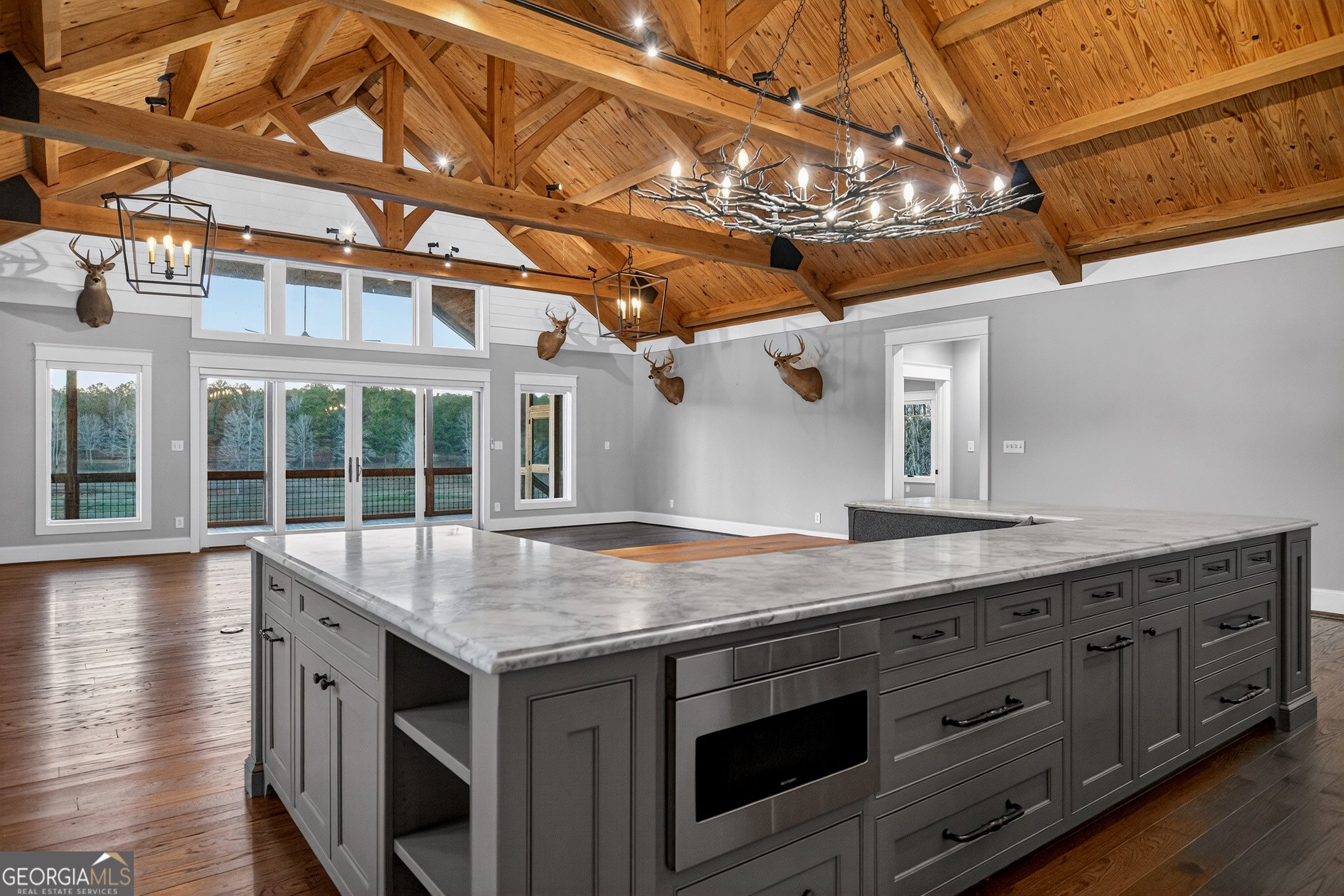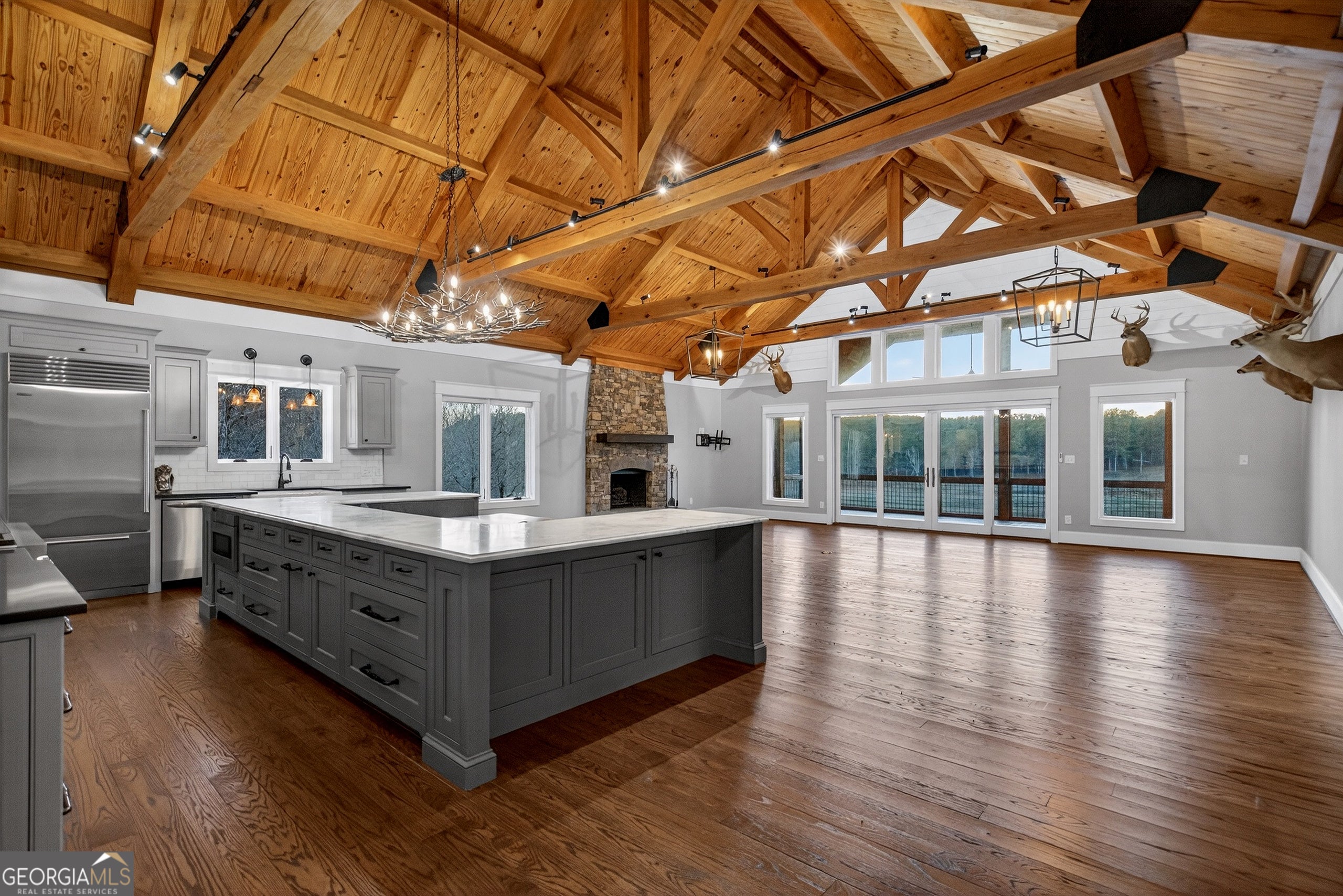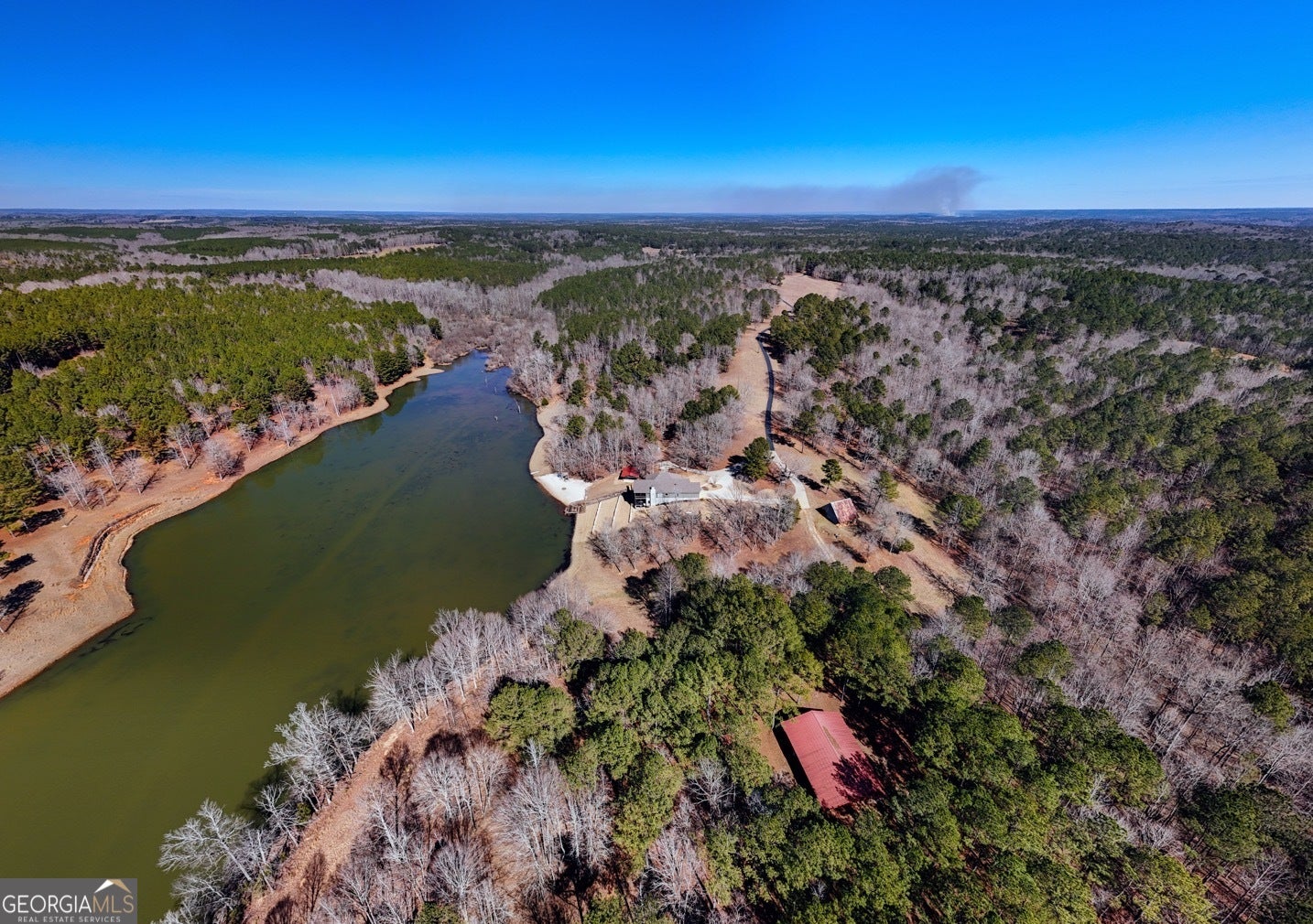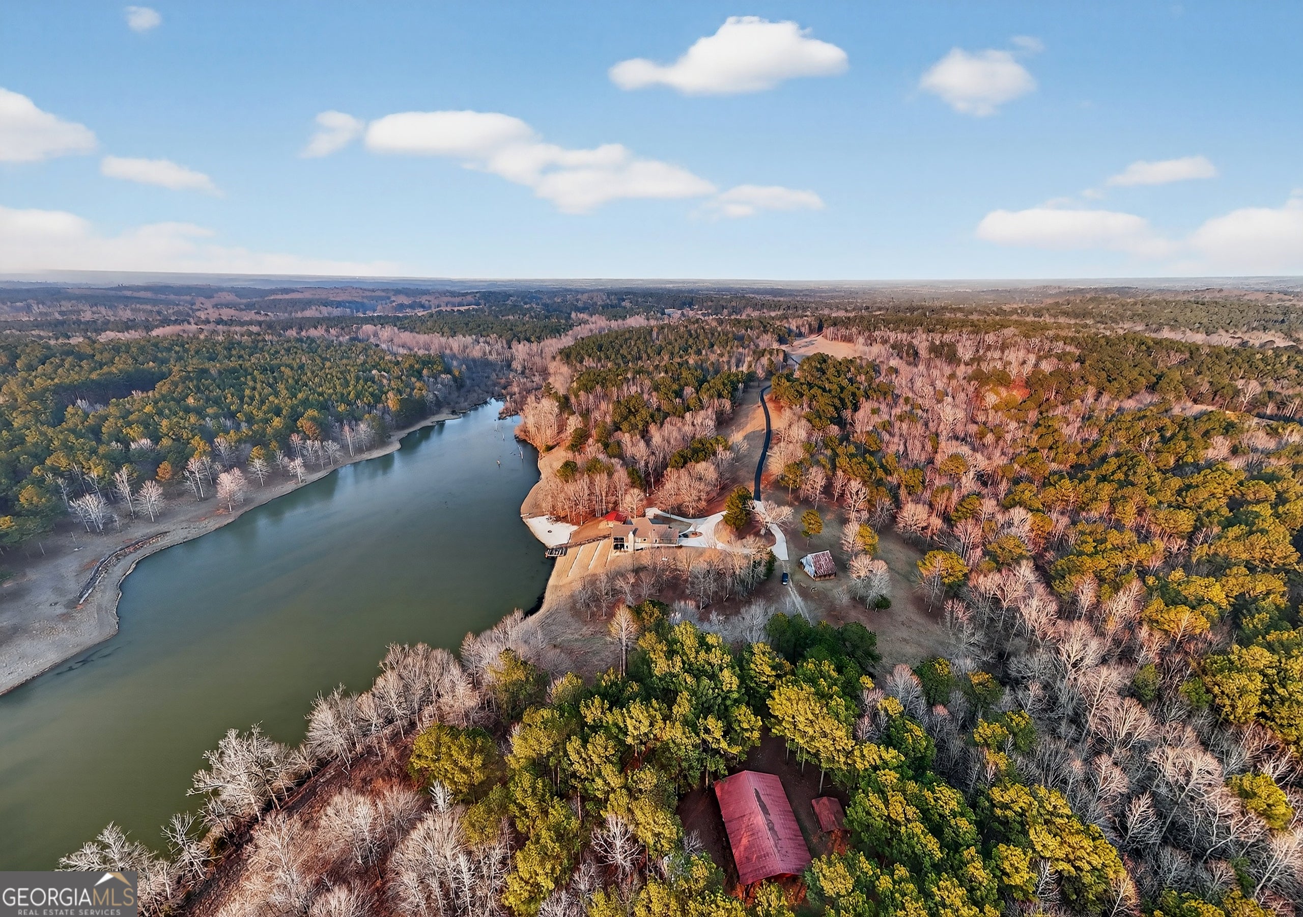 The pristine setting of this extraordinary 550/- acre farm at 175 Thornton Road in Franklin, Georgia blends the comfort of a finely finished home with the rare freedom that only wide-open land can provide. Thoughtfully designed for both everyday living and private retreat, the home features an open floor plan, multi level screened-in back porch & open deck with panoramic waterfront views, second full kitchen in the basement, reinforced safe room, and attached two-car garage - all coming together to create a property that feels as functional as it is peaceful. Inside, the residence offers 3 bedrooms and 3.5 baths across approximately 4,166 square feet, providing room to spread out while still maintaining a warm, inviting feel. Hardwood floors run throughout the main living areas, adding continuity and character, while the kitchen showcases quartz countertops, abundant workspace, and a layout built for cooking, gathering, and entertaining. The flexible floor plan easily adapts to hosting guests, working from home, hobbies, or multigenerational living, giving you the freedom to live the way you want today while leaving room for whatever comes next. Step outside and the true scale of the property begins to unfold. The 550 /- acres, highlighted by a stunning 20-acre private lake, create a setting that supports a rural lifestyle in a way few properties ever can. An extensive, well-maintained internal road system allows you to move throughout the land with ease, whether for recreation, farming, hunting, or simply enjoying the quiet beauty of the surroundings. Improvements across the property make it truly one-of-a-kind, including a large pole barn, scenic waterfall feature, man-made beach, lakeside fire pit, and multiple gathering areas designed to enjoy the outdoors year-round. Every element has been placed with intention, creating a rare sense that the home, the land, and the improvements all belong together. Properties of this size and quality rarely come available. 175 Thornton Road offers the opportunity to own a farm that delivers both unmatched scale and everyday livability - a place where privacy, comfort, and nature exist in perfect balance.