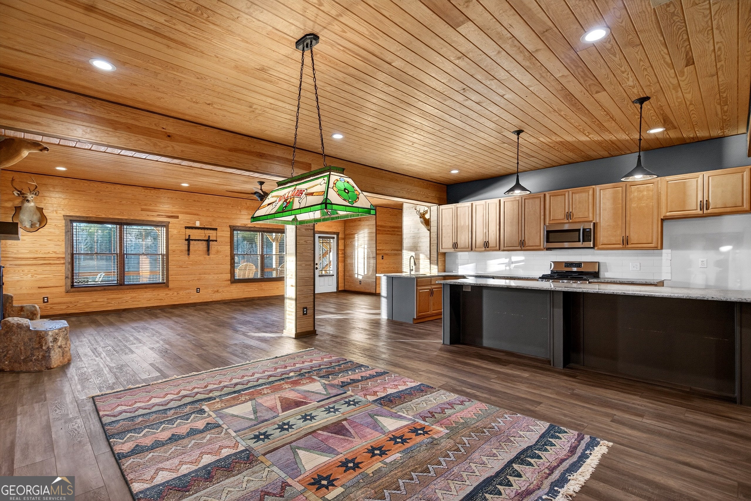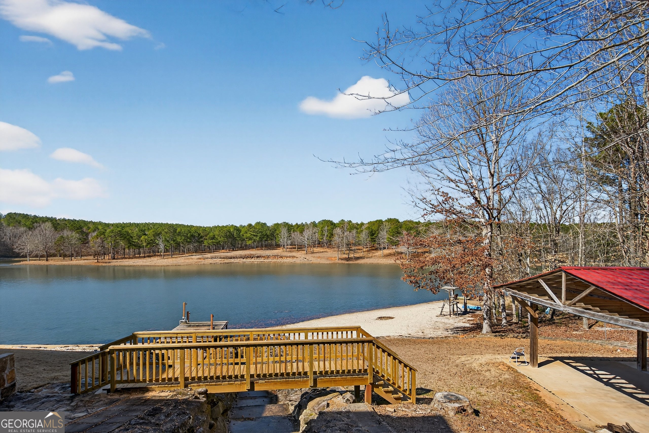 Enjoy the space and comfort youve been looking for. Nestled on 8.3 picturesque acres with private lake frontage, this stunning, move-in ready 3,555 sq. ft. mountain-style home that offers the perfect blend of seclusion and convenience, just 25 minutes south of Hartsfield-Jackson Atlanta International Airport. Located just five miles from shopping and Hwy 19/41, the property is accessible via a limited-access road ending at the Clayton County Water Authority, ensuring ultimate privacy. Step inside this spacious four-bedroom, three-and-a-half-bath home to find a thoughtfully designed layout featuring a cozy den with a warm gas fireplace, and living room open to the kitchen, a game room complete with a pool table and bar alongside a wood-burning stove for those chilly nights. The living room, kitchen and game room all have the added detail of 100 year old reclaimed wood from an old barn lining the walls. The kitchen boasts an eat-in bar, perfect for casual meals, and flows into a formal dining room ideal for hosting gatherings. The home also includes a functional mudroom with laundry facilities and a relaxing outdoor patio with counter space, a fire pit, and breathtaking views of the surrounding landscape. Exterior Features: -Four versatile outbuildings: a storage shed, woodworking space, garage and a well house. -A carport accommodating four vehicles and additional parking for up to ten, including motorhome parking. -Lush acreage full of blooms during the Spring and Summer seasons. Whether youre sipping coffee by the lake, enjoying a night around the fire pit, or crafting in the workshop, this property truly offers a little bit of heaven. Located in the highly sought-after Hampton, GA area, this unique property combines rural charm with close proximity to city amenities. Schedule your showing today to experience the tranquility and allure of this unique property.