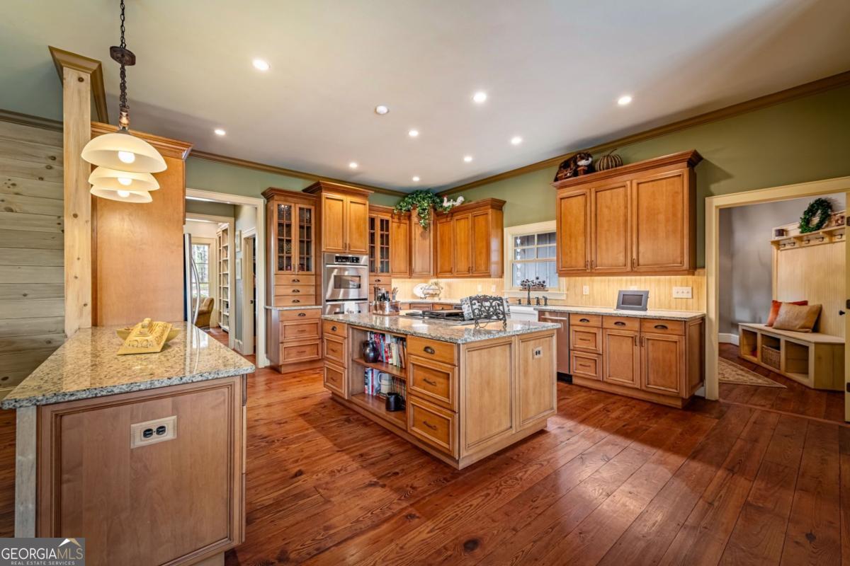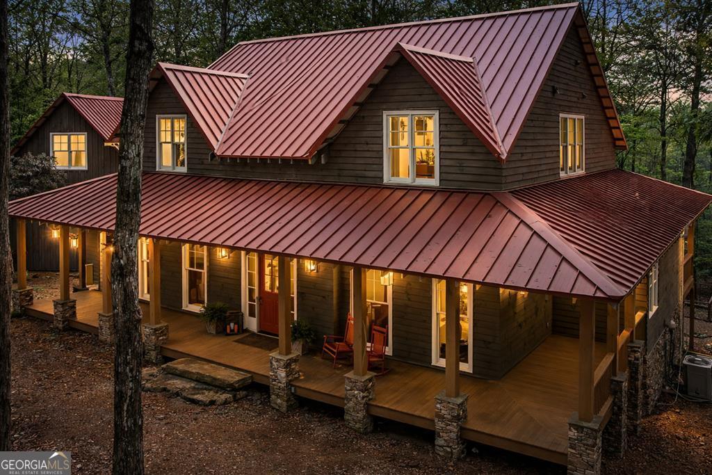 Tucked along a winding gravel drive, this exceptional mountain estate makes a striking first impression, where a classic red barn welcomes you & the main residence is gracefully set among mature hardwoods. Perfectly positioned on 11.33 gentle, walkable acres, this custom builders personal retreat captures long-range MOUNTAIN VIEWS and offers a private trail leading to Salem Creek. Designed to harmonize with its surroundings, the grounds unfold w/pebbled garden paths, raised beds, and a 23-ft tiered stone water feature, creating a sense of tranquility. Inside, timeless craftsmanship & refined finishes define the home, featuring heart pine flooring, expansive cedar and cypress porches, and a Jtul cast iron fireplace w/blower. The chefs kitchen is beautifully appointed with a Dacor cooktop, double ovens, a separate ice maker, and a wow pantry featuring a sink, coffee bar, and appliance station; plus an additional butlers pantry. There are 4 bedrooms (3 en-suite), including a spacious primary suite, along with a library featuring 18 ft of custom floor-to-ceiling bookcases, finished bonus room, and a 2,354 sq ft terrace level stubbed and plumbed for future expansion. Built for comfort and efficiency with a standing seam metal roof, Kolbe windows and doors, 3 HVAC systems, spray foam insulation, and a Kohler generator. The 1,440 sq ft BARN (workshop) is equally impressive with a 100-amp panel, 220 welding circuit, air compressor, exhaust fan, and private upstairs office. Located in ANDERSON CREEK RETREAT, a private conservation community bordering the Chattahoochee National Forest with access to green space, private lake, trout streams and miles of hiking trails. Located 20 minutes from Ellijay; near Springer Mountain, the southern start of the Appalachian Trail; and less than 15 minutes to The Mill at Noontootla Creek Farms for guided fly fishing, shooting range & dining. (No STRS in this community. School tax exemption available for full-time residents age 65.)