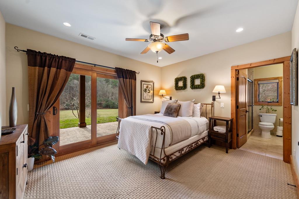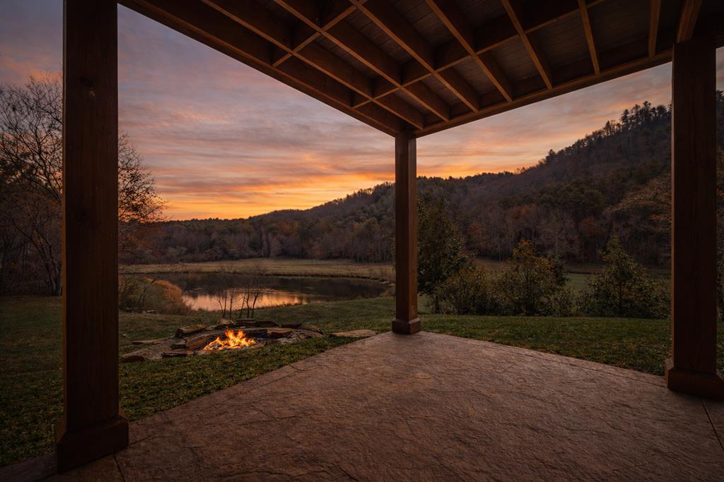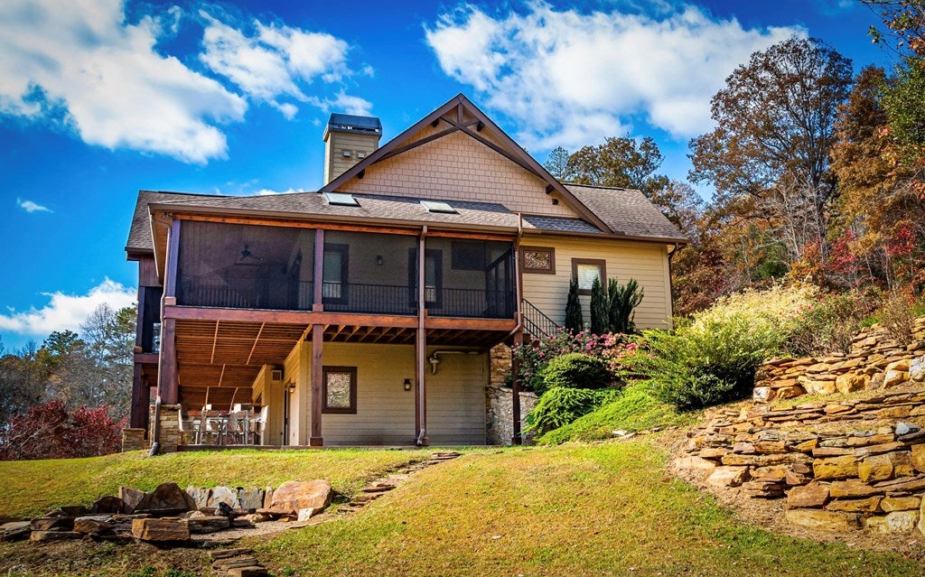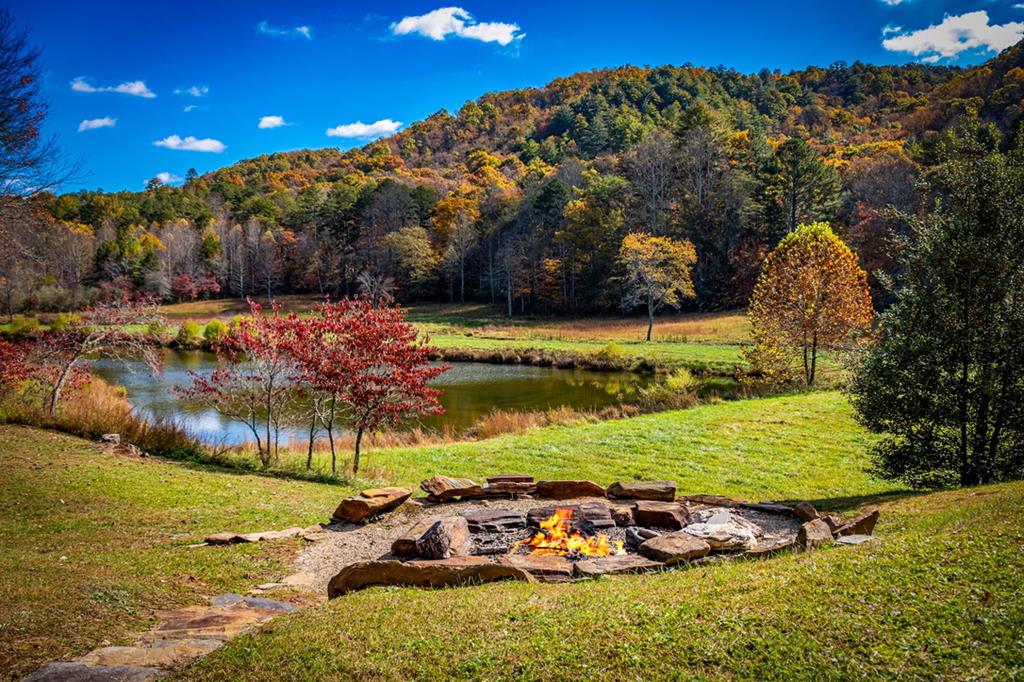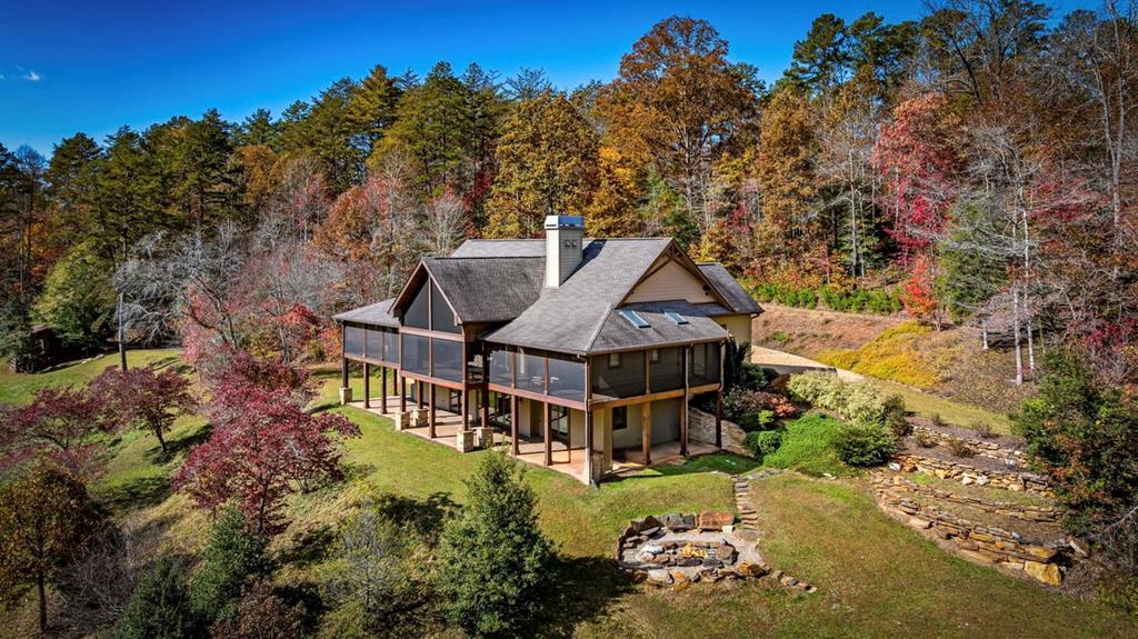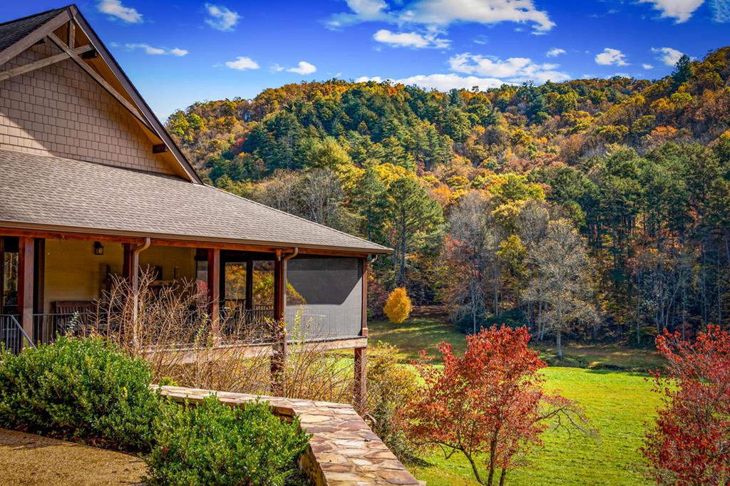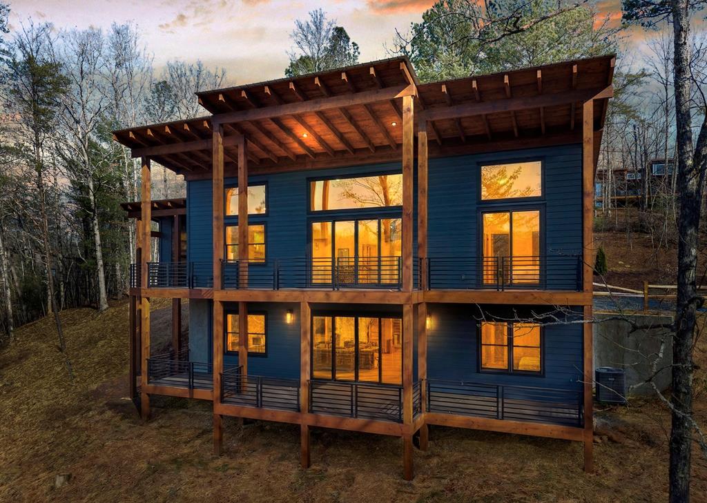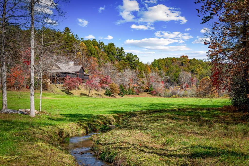 Just finishedHemptown Creek frontage & refined rustic flair paired with contemporary lines & modern motif...this 4 bedroom/3.5 bath charmer is nestled on gentle wooded & open acreage surrounded by the mountains yet tucked awaywarm wood & drywall finishes with light & bright layout, plentiful wall to wall glass & soaring ceilings, industrial and distressed finishes, modern, sleek, stone fireplace, expansive party porch with outdoor fireplace, spacious master feature ensuite spa feel bath with eye catching tile, soaking tub & upscale fixtures, stainless appliances & granite counters, modern lighting & beam work enhance the flow of the cozy but open floorpan, full finished terrace level offers guest quarters, den/rec room, wet bar, storage & entertaining porch overlooking storybook setting, fire pit & waterside dock uniquely inviting & just off paved, scenic road close to historic downtown, lake & Toccoa river, premium privacy.. stunning property!
