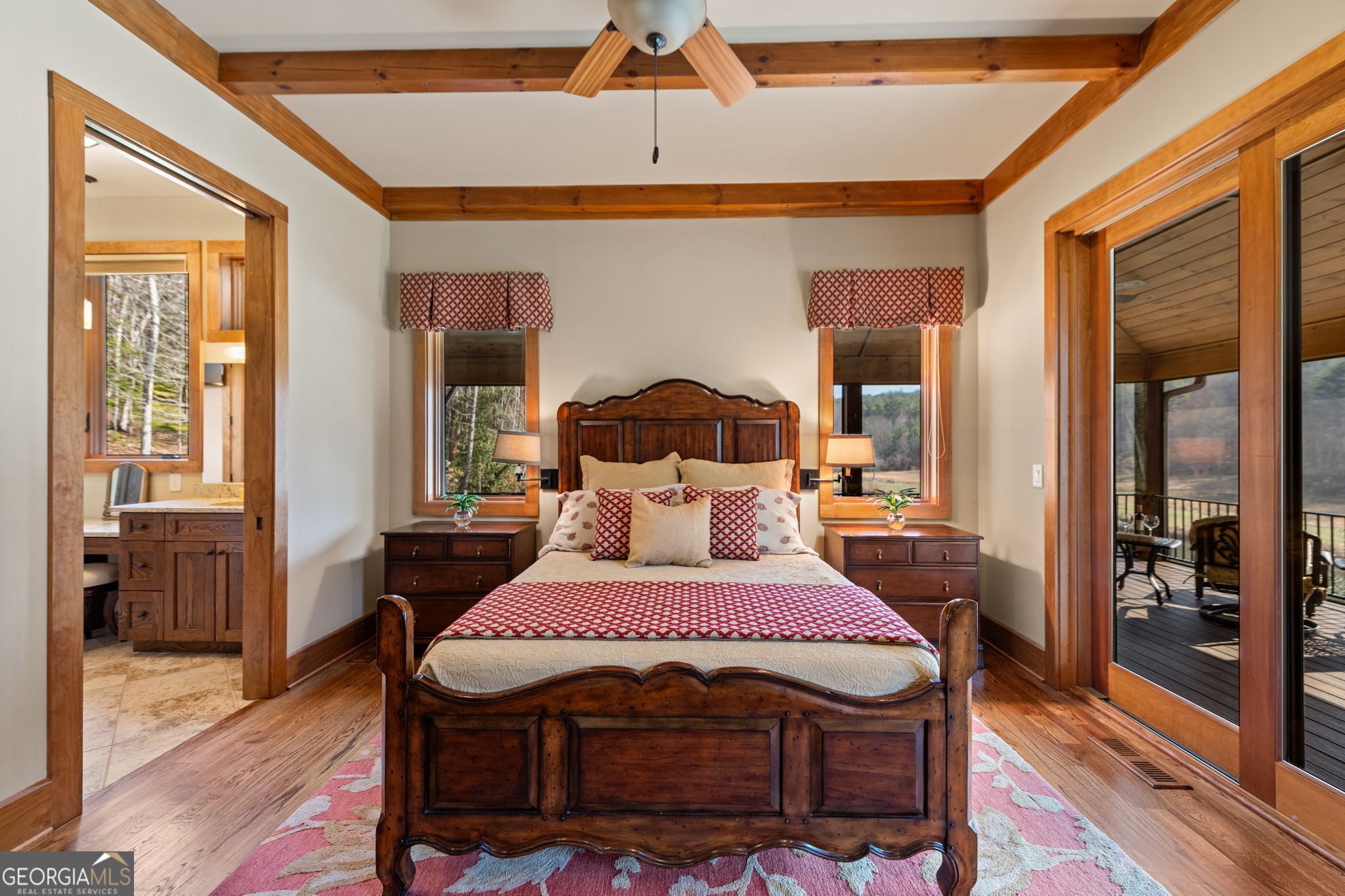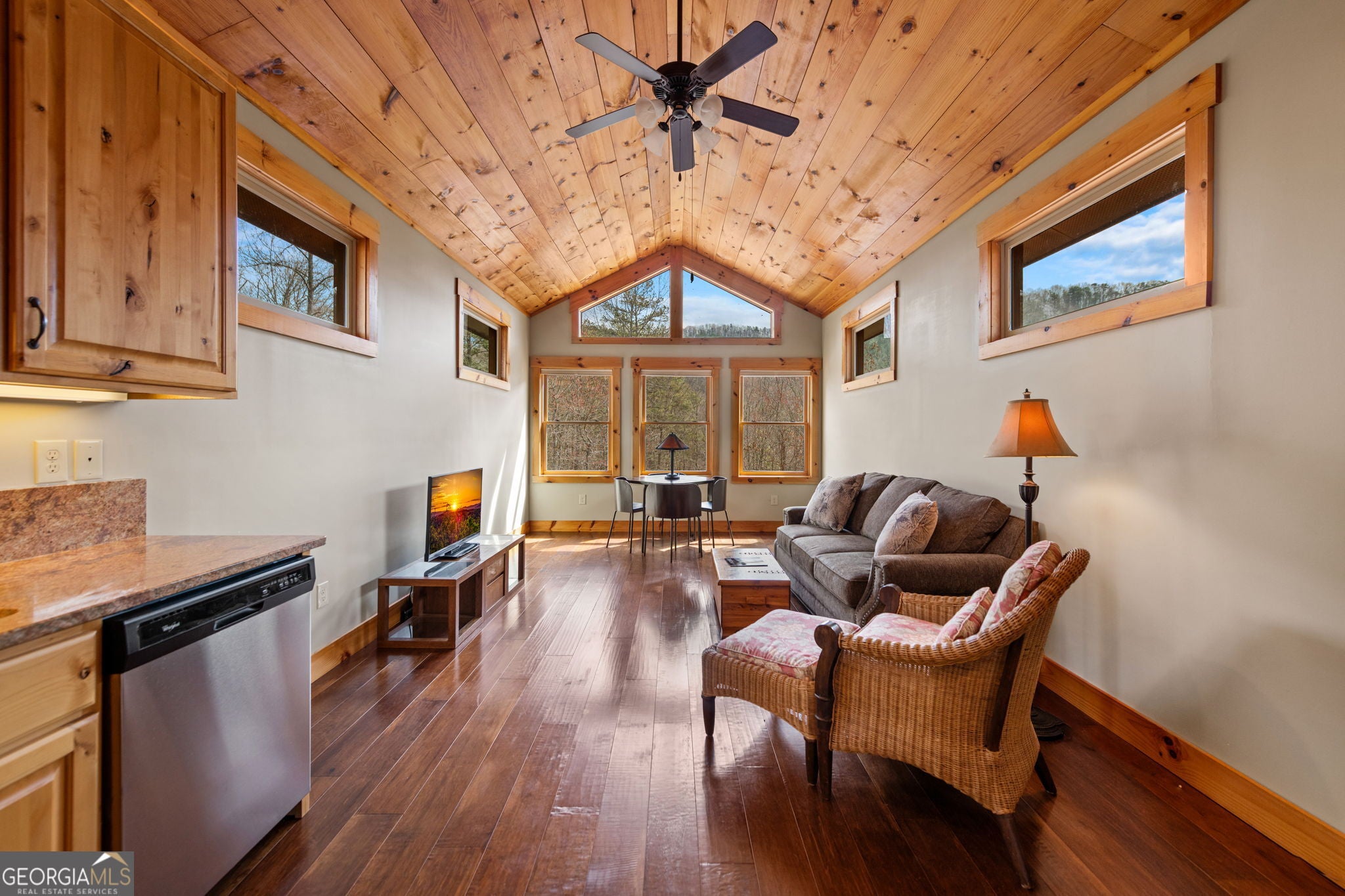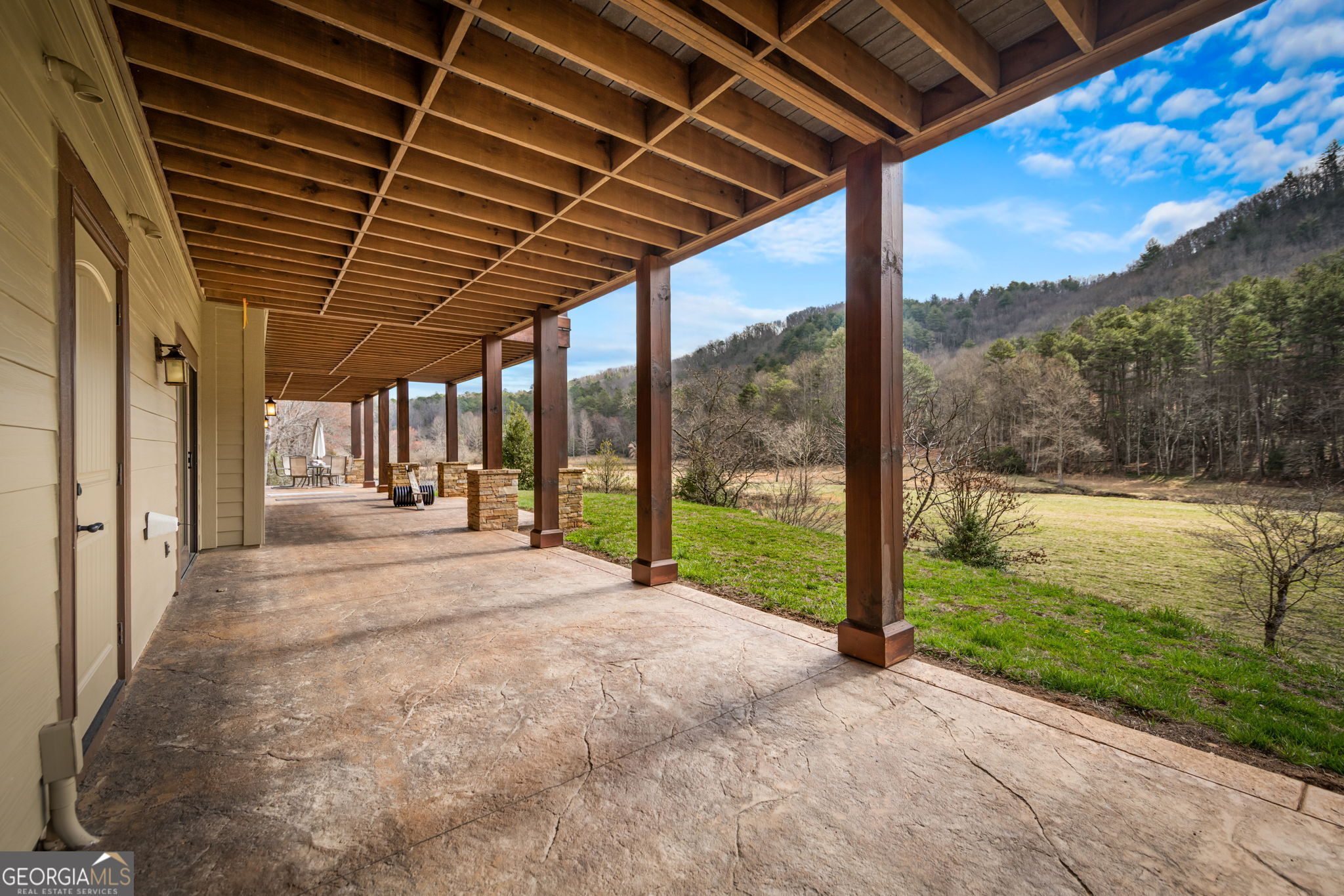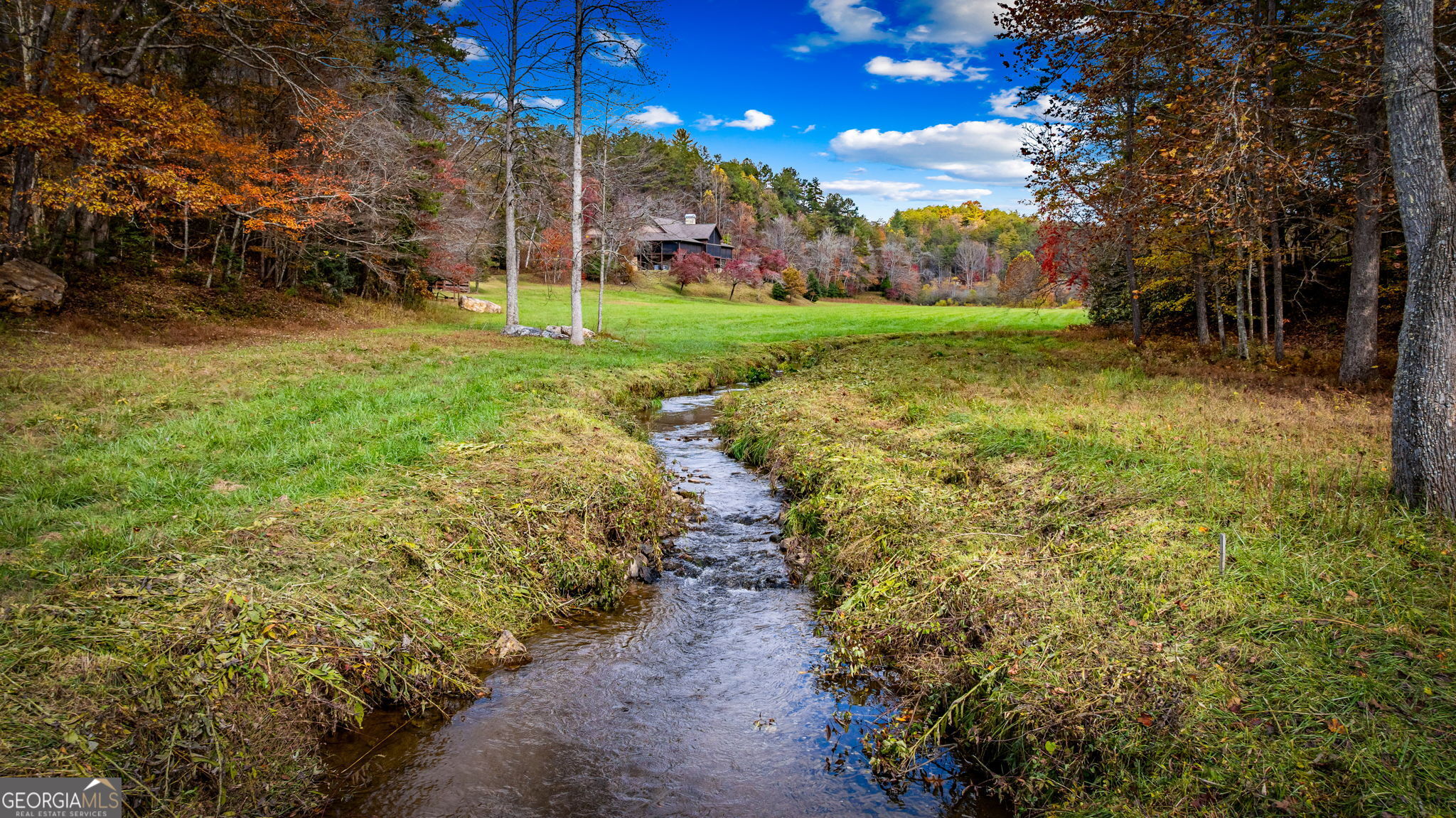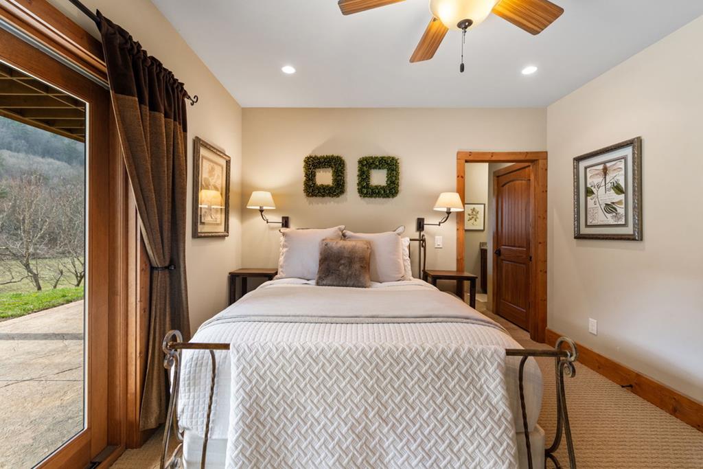 Just finishedHemptown Creek frontage & refined rustic flair paired with contemporary lines & modern motif...this 4 bedroom/3.5 bath charmer is nestled on gentle wooded & open acreage surrounded by the mountains yet tucked awaywarm wood & drywall finishes with light & bright layout, plentiful wall to wall glass & soaring ceilings, industrial and distressed finishes, modern, sleek, stone fireplace, expansive party porch with outdoor fireplace, spacious master feature ensuite spa feel bath with eye catching tile, soaking tub & upscale fixtures, stainless appliances & granite counters, modern lighting & beam work enhance the flow of the cozy but open floorpan, full finished terrace level offers guest quarters, den/rec room, wet bar, storage & entertaining porch overlooking storybook setting, fire pit & waterside dock uniquely inviting & just off paved, scenic road close to historic downtown, lake & Toccoa river, premium privacy.. stunning property!