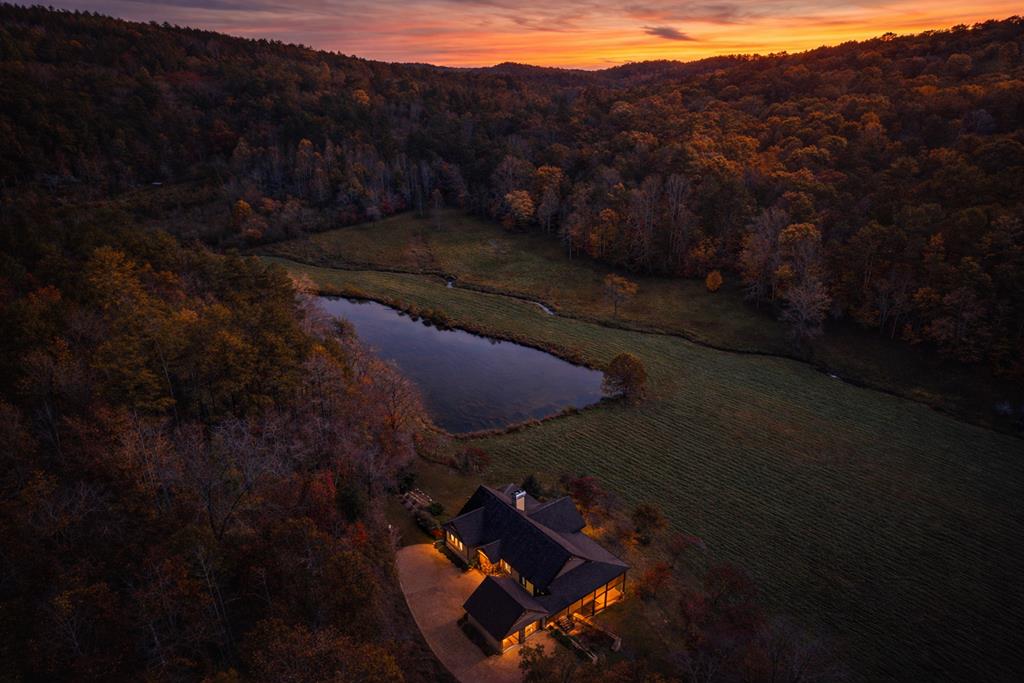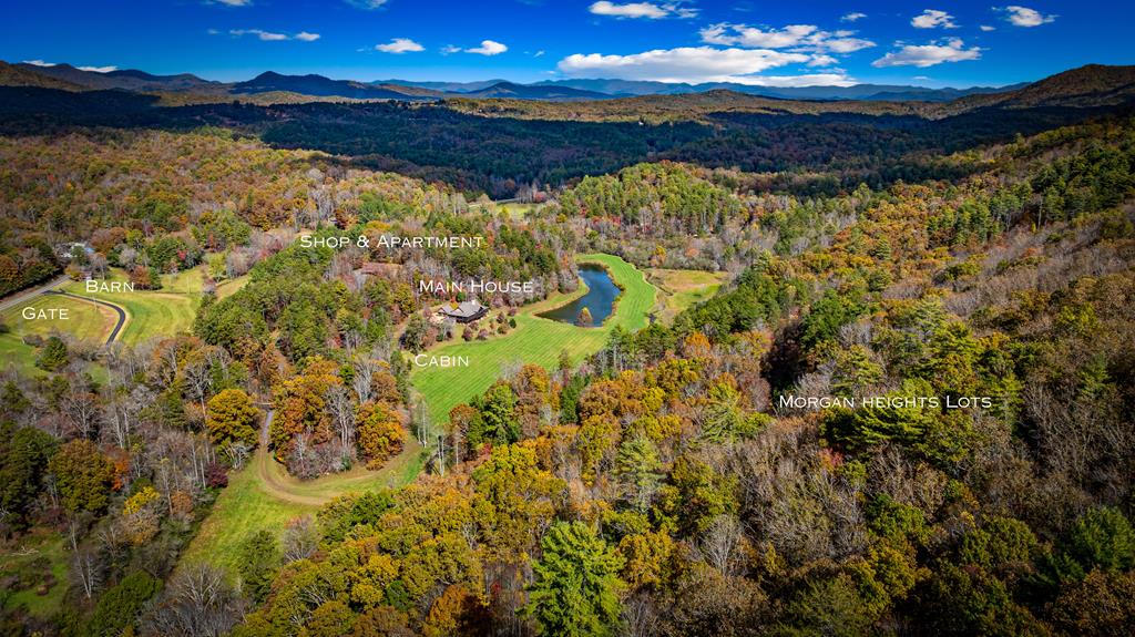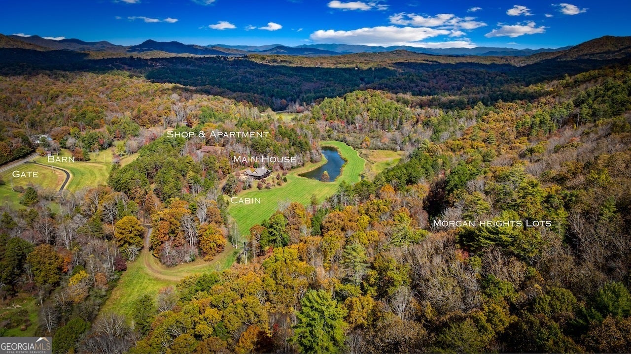 136 ACRES OF RARE NORTH GEORGIA OPPORTUNITY. Three subdividable parcels offering private estate appeal, development potential, and future mountain-view homesites in Mineral Bluff, just 15 minutes from Downtown Blue Ridge. The offering includes 76 acres with an existing residence plus an upper 50 acres with excavated roads and strong potential for long-range mountain views. The upper 50, Morgan Heights plat, w/ 15 additional lots positioned along the ridge of the mountain. The lower tract, originally planned as a 30-lot subdivision, is currently a remarkable private retreat. This parcel features creek frontage, ponds, a swimming hole, open pasture, and numerous potential build sites. While the LAND is the headline, the primary residence is also compelling, complete with a private in-home elevator. Exceptionally built, it features hardwood floors, soaring cathedral ceilings, exposed timber beams, stacked-stone fireplaces, and an extensive wall of glass connecting you to the outdoors. The chefs kitchen has custom cabinetry, granite countertops, a Viking range, large granite island, warming drawer, microwave drawer, and a walk-in butlers pantry with prep space and a built-in desk. The main level also includes a wraparound screened porch with Trex decking, 2-car garage, mudroom, two powder rooms, and a peaceful primary suite. Primary ensuite baths w/ heated floors, a large tiled shower, custom closet, laundry, and bonus space for a workout area or sauna. The terrace level offers another primary suite, an additional ensuite bedroom with its own laundry, a bunk room, full hall bath, wet bar, breakfast nook, built-ins, second stone fireplace, and bonus room. Beyond the home, the estate continues with a detached five-bay garage/shop with a full apartment above, rustic cabin, antique barn, tractor storage, fencing, and internal roads. What will you make it? A private family retreat, legacy equestrian compound, vineyard vision, or future mountain subdivision.