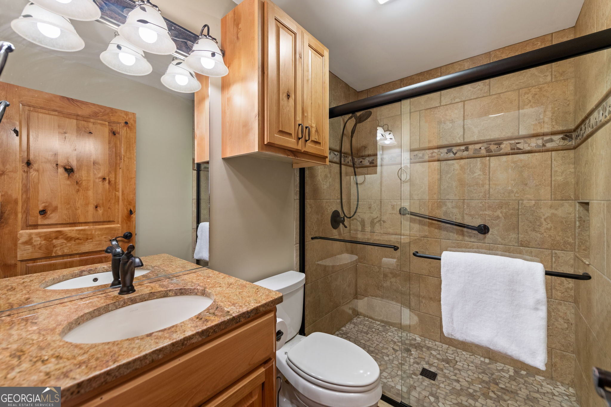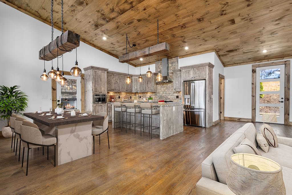 PRICE REDUCTION - NOW LISTED BELOW APPRAISED VALUE! Discover unparalleled rustic elegance in this brand-new, luxurious chalet. Nestled in Wolf Creek Estates, a gated community that allows short-term rentals. This exquisite 3-bed, 3.5-bath residence offers a perfect blend of sophisticated design and serene mountain living. Step inside to an open-concept floor plan that seamlessly connects the living, dining, and kitchen areas, creating a bright and airy ambiance. The living room is anchored by a stunning gas fireplace, its sleek design and warm glow creating an inviting focal point for cozy evenings. The kitchen is a dream, boasting stainless steel appliances, custom cabinetry, and high-end finishes that elevate every culinary experience. Soaring ceilings and expansive windows flood the home with natural light, highlighting the contemporary design and offering breathtaking views of the surrounding landscape. The upper-level master suite is a true retreat, featuring a soaking tub and a walk-in tiled shower. On the lower level, a second master bedroom offers equal elegance and privacy, complete with its own beautifully appointed full bathroom. The third bedroom also enjoys access to a full bathroom, ensuring comfort for family or guests. Perfect for entertaining, this home shines with large decks on both levels, including an upper-level deck with its own outdoor fireplace. The lower level adds to the allure with a wet bar, custom shelving, and cabinetry, while a second gas fireplace enhances warmth and sophistication. Practicality meets luxury with laundry on both levels. Every detail of this home reflects quality craftsmanship, from the sleek finishes to the thoughtful layout. Located just minutes from the charming towns of Blue Ridge and McCaysville, 65 Wolf Creek Heights is the perfect opportunity to own a piece of mountain paradise. Schedule your tour today!