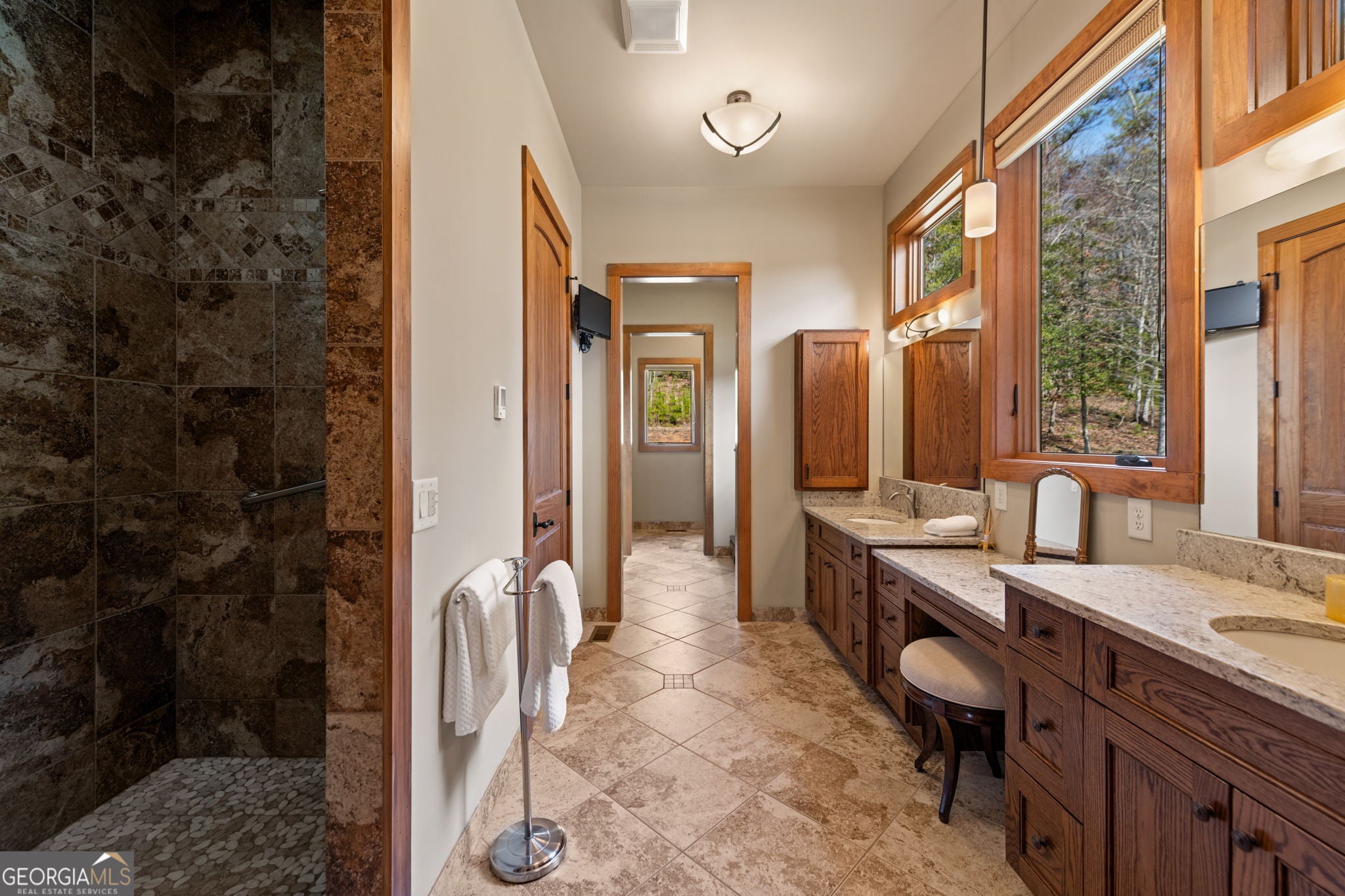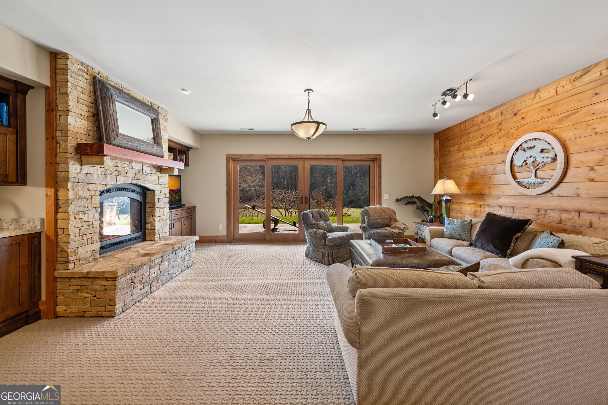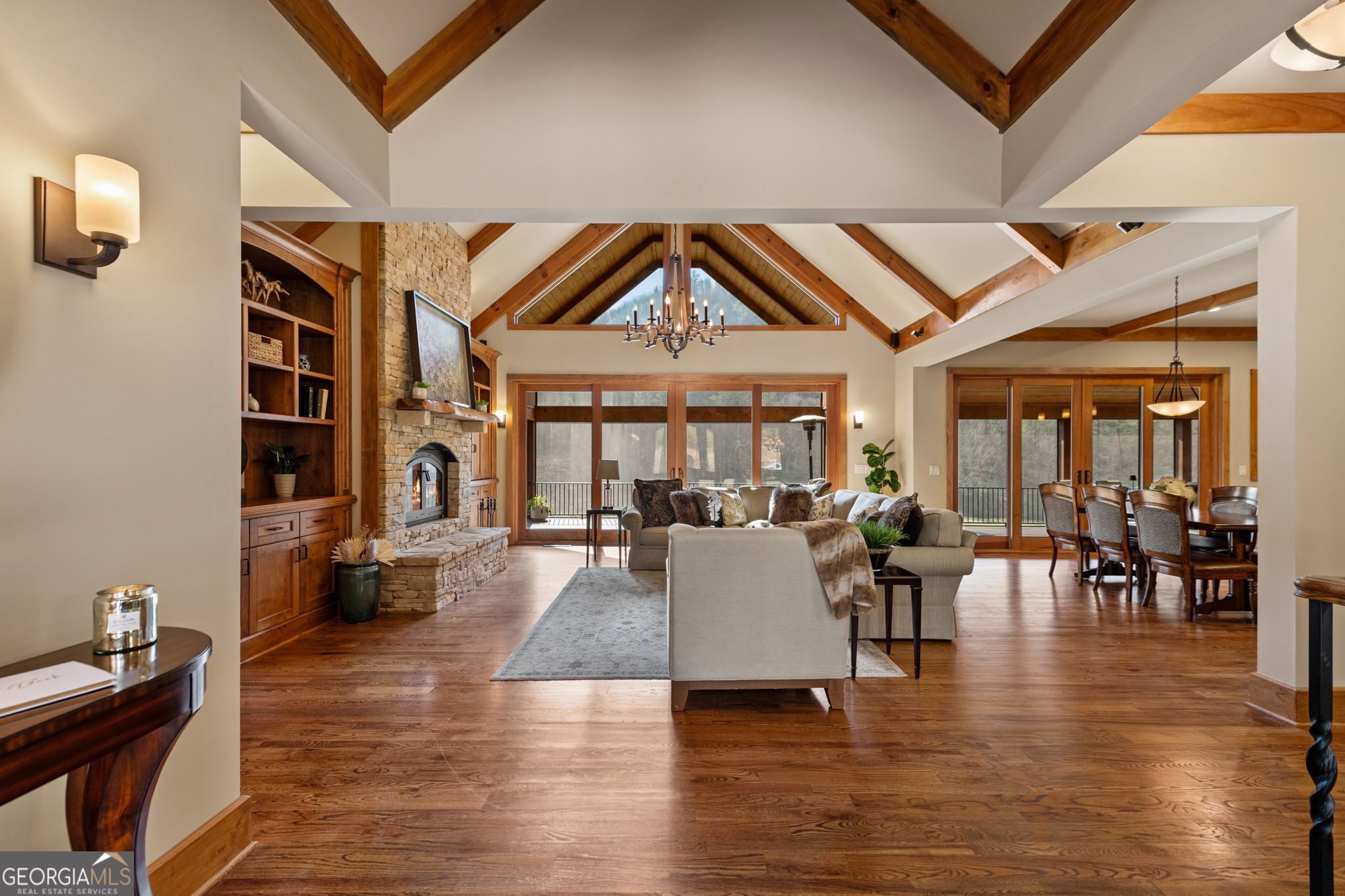 Welcome to your Private RIVERFRONT DREAM HOME on the shimmering shores of the WIDE TOCCOA RIVER. Exquisite BRAND NEW COMPLETED 4-Bedrooms, 4.5-Baths River Retreat perfectly positioned on 1.73 acres w/150 feet of LEVEL Shoreline. Every detail is a Testament to Modern Mountain Luxury & Timeless Design. IMPRESSIVE PROFESSIONAL LANDSCAPING captivates before even Stepping Inside w/Huge Boulders & Mature Tree/Shrub Specimens. (Plenty of Rm for Garage) Chalet-Style architecture frames Panoramic River views that flow right thru this Contemporary Interior. Golden light pours thru the expansive Wall of Windows dancing across Rich Floors & illuminating the homes Artisan/Modern finishes (Professional Interior Design). A Sound-Absorbing, Walnut-stained ACCENT “Slatted Wall” adds warmth & texture to the Great Rm along w/a Signature Stone Upgraded Fireplace (Blowers). The Open-Concept layout invites both quiet Relaxation & Vibrant gatherings w/the soft “Rush of the River” in the Background. Each of the FOUR private Bedroom Suites offers its own Sanctuary of Comfort & Style w/Unique Accent Walls & Colors. Highlighted by a main-level Master Suite (w/SO much closet space & dressing area) plus a 2nd MAIN Guest Suite along w/TWO Upper-level suites. The open loft beckons as an office or creative hideaway. Enjoy morning coffee on a Private Master Porch as the River Mist rises. Experience evenings on a Wrap-Around Party Porch w/a Commanding Stone Fireplace. “Flat Boulder” Walkways lead to a LEVEL Shoreline Firepit. Inside Luxury abounds w/Granite Tops, Custom cabinetry, Full Tile/Quartz showers (frameless glass doors),3-Zone HVAC & Upgraded Appliances adorning the Gourmet Kitchen w/Center Island. Exterior Artful Mix of Log siding, Board & Batten, Gable Cedar Shakes & Natural Stone. Meticulous Craftsmanship throughout this Masterpieceit offers not just comfort but a lifestyle of Serenity, Sophistication & a Connection to the River itself. Dont just visit the River. Live Its Rhythm