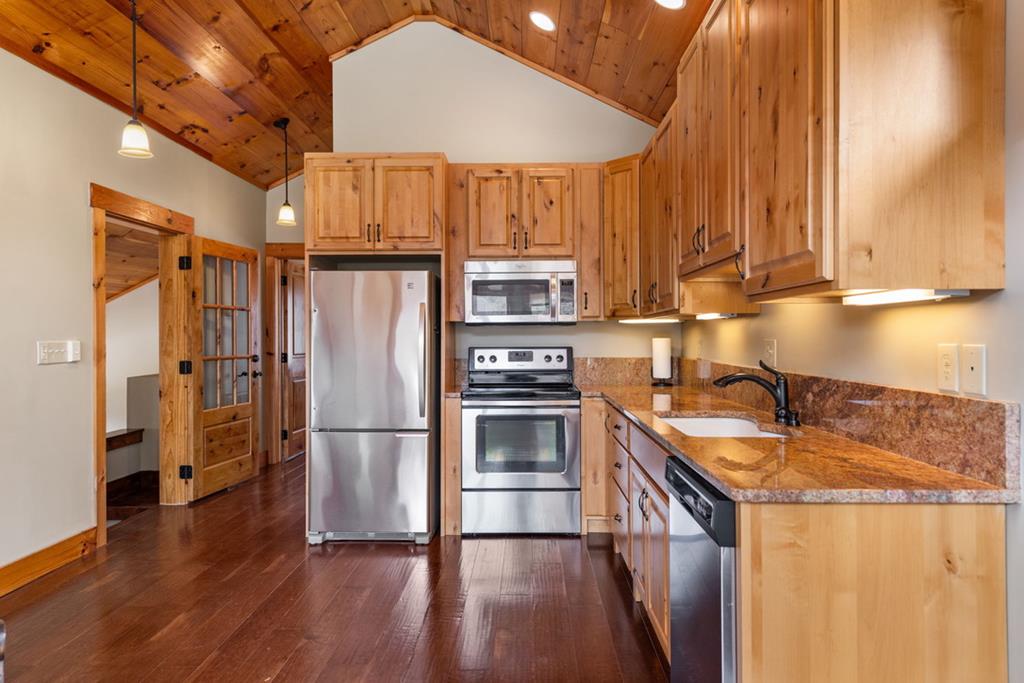 Move in READY...Brand-New Chalet with Stunning Long-Range Mountain Views. Experience Elevated Living in this Newly Completed Chalet offering Breathtaking Wide long-range Views. Quality-Built w/Exceptional Craftsmanship & Modern Upgrades. A Massive Poured Concrete Parking Area & Long Retaining Wall create a clean Homesite w/Erosion Control. The Gable-Covered Entry opens to a Bright, Open-Concept interior w/Natural light from Dramatic Fixed Glass in (2) Soaring Chalet WALLS. The Great Room features a Striking Corner Stone Fireplace (gas logs installed). Great Rm flows seamlessly onto the covered Porch w/a Beautiful Exterior Stone Fireplace. Outdoor living shines w/an open side deck overlooking expansive views plus two 10-foot covered porchesperfect for year-round enjoyment. The All-Wood Interior is complemented by Hardwood Flrs, Tile Baths & laminate flooring on Terrace Level. Custom Alderwood Cabinetry & Bath Vanities, Granite Countertops throughout, Bronze fixtures & a convenient Wet Bar for Terrace Level entertaining. Kitchen appliances are installed w/Full Size Washer/Dryer in Laundry Rm making this home truly move-in ready. Two full “Subway Tile” showers w/built-in Seats & Shelving, while the main level Bath includes a tub w/Tile surround. The upper-level suite offers a Cathedral Ceiling, oversized walk-in closet & Spacious bath w/Tile Shower, Double Vanity & Linen Cabinet. An Open Loft overlooks the Great Room & captures Sweeping Views through the impressive walls of Glass. Fully Finished Terrace Level includes a 3rd bedroom, 3rd full bath & Large Bonus Room w/corner Wet Bar. A 10-foot covered walk-out patio extends the living space outdoors. Additional upgrades include LP Smart Board & Batten “Forever” Siding w/30-year warranty, Dual-Fuel HVAC, on-demand Hot Water, Custom tilework & interior/exterior Gas Log Stone Fireplaces. Concrete driveway is shared w/Neighbor & supported by Recorded Agreement. No Restrictions & SRT Permitted. TN & NC are so close...