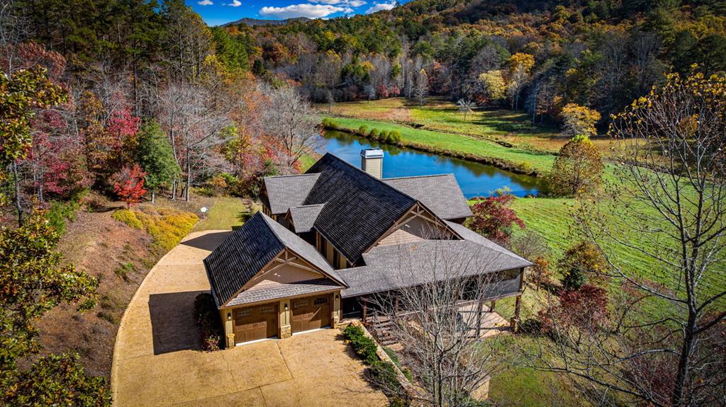 Welcome to your Private RIVERFRONT DREAM HOME on the shimmering shores of the WIDE TOCCOA RIVER. Exquisite BRAND NEW COMPLETED 4-Bedrooms, 4.5-Baths River Retreat perfectly positioned on 1.73 acres w/150 feet of LEVEL Shoreline. Every detail is a Testament to Modern Mountain Luxury & Timeless Design. IMPRESSIVE PROFESSIONAL LANDSCAPING captivates before even Stepping Inside w/Huge Boulders & Mature Tree/Shrub Specimens. (Plenty of Rm for Garage) Chalet-Style architecture frames Panoramic River views that flow right thru this Contemporary Interior. Golden light pours thru the expansive Wall of Windows dancing across Rich Floors & illuminating the homes Artisan/Modern finishes (Professional Interior Design). A Sound-Absorbing, Walnut-stained ACCENT Slatted Wall adds warmth & texture to the Great Rm along w/a Signature Stone Upgraded Fireplace (Blowers). The Open-Concept layout invites both quiet Relaxation & Vibrant gatherings w/the soft Rush of the River in the Background. Each of the FOUR private Bedroom Suites offers its own Sanctuary of Comfort & Style w/Unique Accent Walls & Colors. Highlighted by a main-level Master Suite (w/SO much closet space & dressing area) plus a 2nd MAIN Guest Suite along w/TWO Upper-level suites. The open loft beckons as an office or creative hideaway. Enjoy morning coffee on a Private Master Porch as the River Mist rises. Experience evenings on a Wrap-Around Party Porch w/a Commanding Stone Fireplace. Flat Boulder Walkways lead to a LEVEL Shoreline Firepit. Inside Luxury abounds w/Granite Tops, Custom cabinetry, Full Tile/Quartz showers (frameless glass doors),3-Zone HVAC & Upgraded Appliances adorning the Gourmet Kitchen w/Center Island. Exterior Artful Mix of Log siding, Board & Batten, Gable Cedar Shakes & Natural Stone. Meticulous Craftsmanship throughout this Masterpieceit offers not just comfort but a lifestyle of Serenity, Sophistication & a Connection to the River itself. Dont just visit the River. Live Its Rhythm