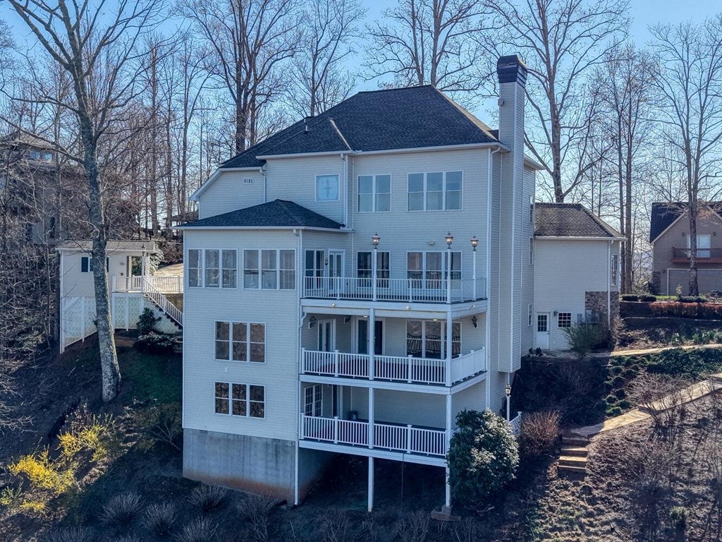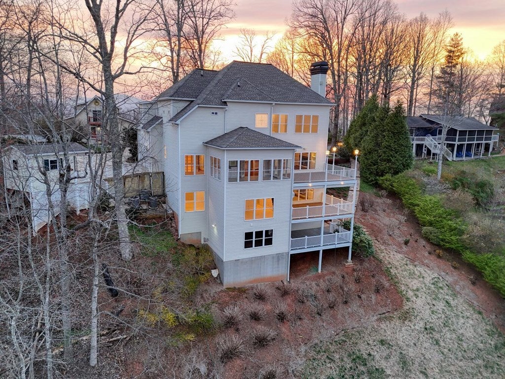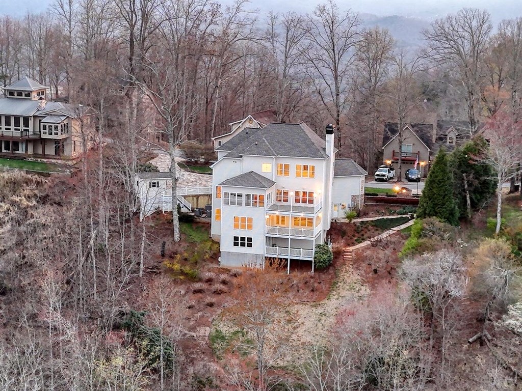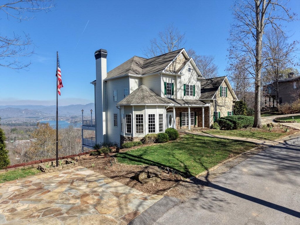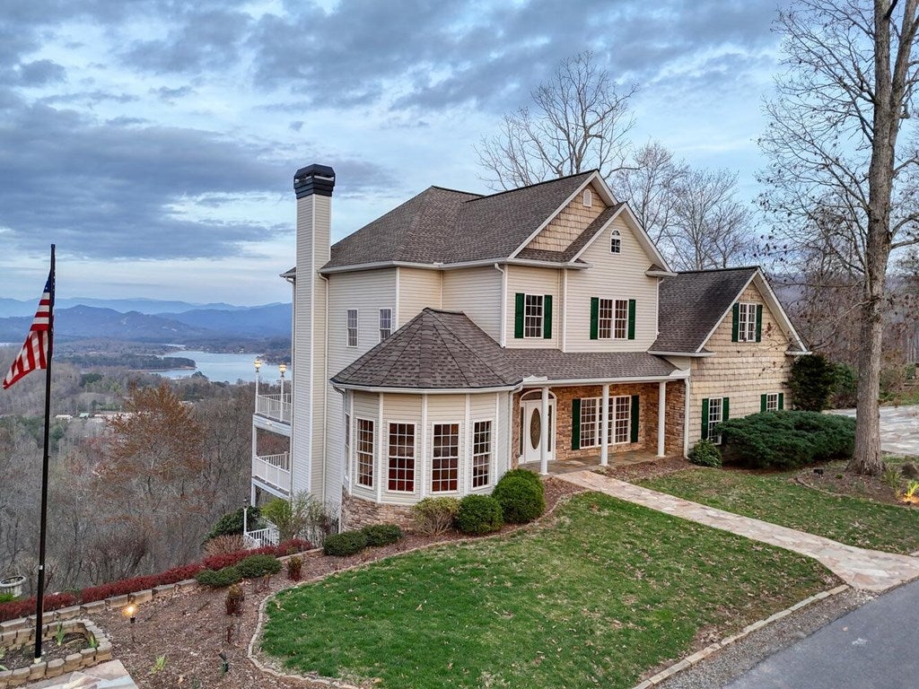 Perched on a commanding peak above the shimmering waters of Lake Chatuge, this magnificent custom designed mountain estate captures the essence of elevated North Georgia living, where long range lake views stretch endlessly and every space is designed to embrace them. The primary suite is nothing short of exceptionala private sanctuary with forever lake views, a spa-inspired bath & three generous closets, offering both indulgence & everyday comfort. At the heart of the home, the great room with fireplace invites gathering and connection, while a sun-drenched lakeview sunroom provides the perfect setting for quiet sunrise mornings or evening unwinding. The thoughtfully designed kitchen features granite countertops, a breakfast room & seamless flow into both formal &casual living space including a dining room, parlor & dedicated china room for elevated entertaining. Guests are welcomed with privacy & comfort, with two additional bedrooms and multiple living areas including a media room and a den with its own fireplace, luxury Wine Cellar on the private Guest level, ideal for hosting family across generations. The terrace level expands the homes potential even further, offering expansive storage, future space to expand. A elevator makes accessing the different living levels a breeze. An attached 2 car garage is accessed from a stone driveway and complemented by outdoor Tool Shed. Outdoor living space is abundant with 3 large Lakeview Decks and professionally designed landscape lighting that enhances the propertys presence after sunset. This is more than a home, its a legacy property defined by its setting, scale, and timeless design all overlooking one of North Georgias most coveted lakes.