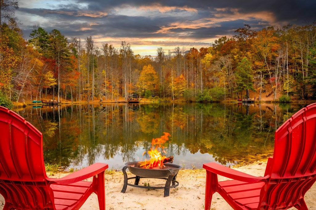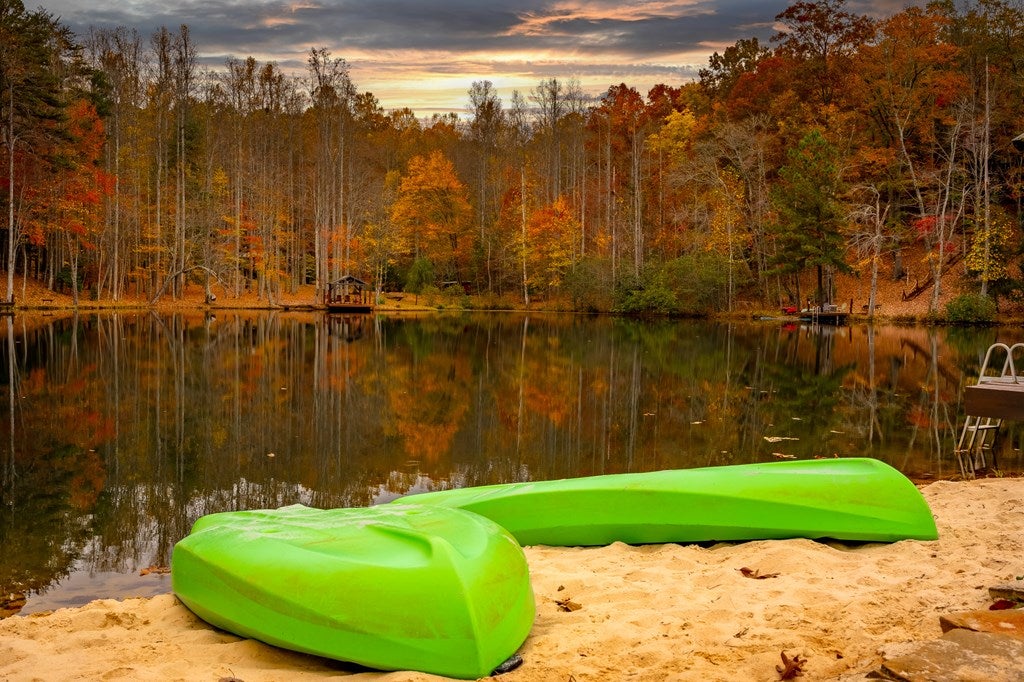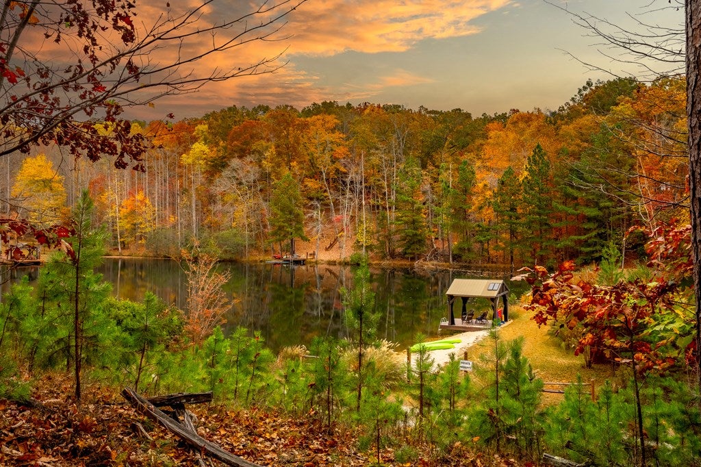 WELCOME TO HIDDEN WATERS, a thoughtfully designed mountain retreat set on over 6 private acres with a beautiful lake in the North Georgia Mountains, just minutes from downtown Blue Ridge. Surrounded by forest and water, this four-bedroom, three-and-a-half-bath home offers the perfect balance of privacy, comfort, and recreation.