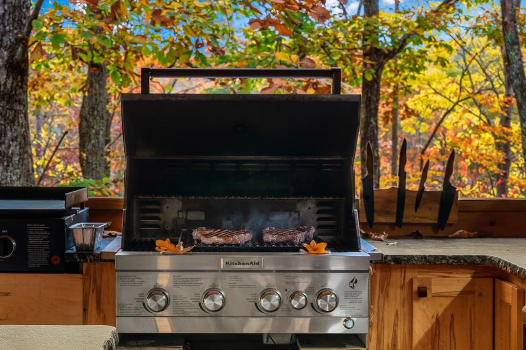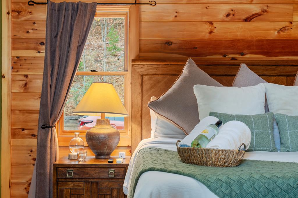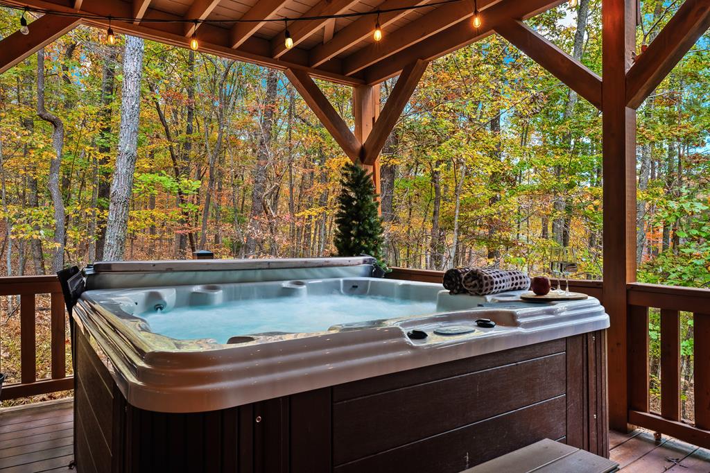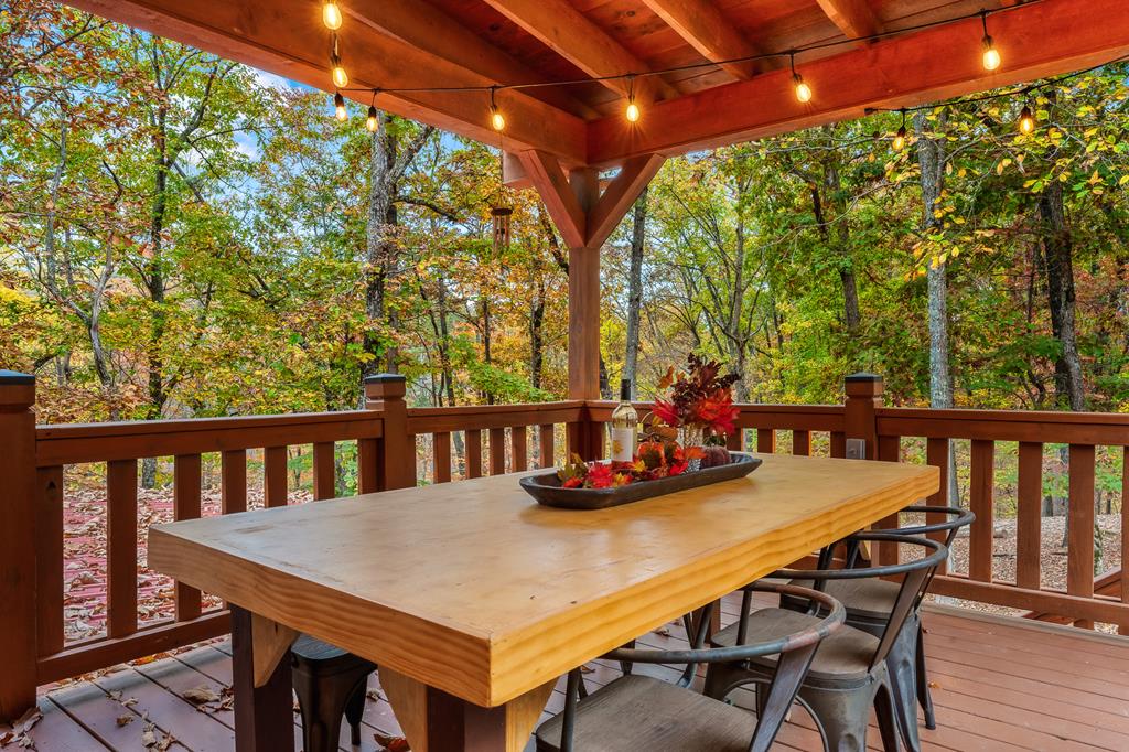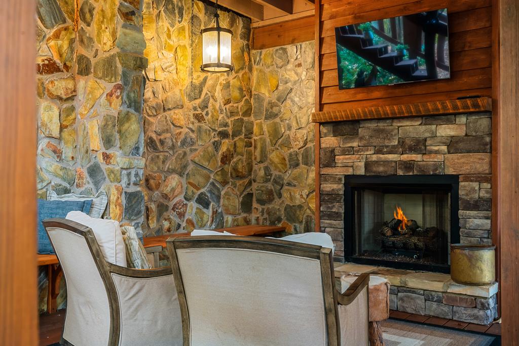 Experience modern mountain living in this like-new 2023 cabin set on 1.46 private acres in Harbin Woods. This beautifully designed 3 bedroom, 2 bathroom home offers vaulted ceilings, hardwood floors, and a modern kitchen with solid-surface counters and a large island. The living area flows seamlessly to the outdoor stone fireplace, creating a cozy year-round gathering space.