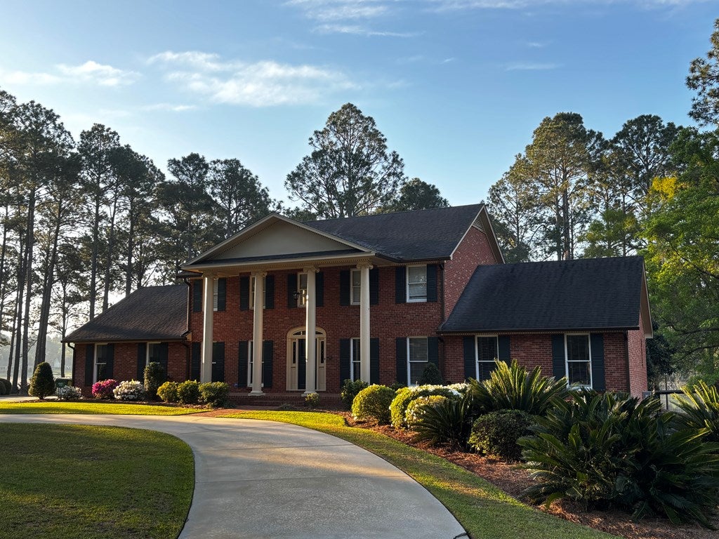 Welcome to this stunning home located in the highly desirable Timberland Subdivision in Waverly Hall, GA! Situated on approximately 2 acres of beautifully manicured grounds, this exceptional 5-bedroom, 5 bath residence offers 3,672 square feet of thoughtfully designed living space and reflects true pride of ownership throughout. Upgraded LVP Flooring. From the moment you enter, you are greeted by a grand foyer that sets the tone for this elegant home. The main level features a formal dining room with a convenient butler's area, perfect for entertaining. The spacious family room with a cozy fireplace flows seamlessly into the open-concept kitchen, complete with a large breakfast area, oversized breakfast bar, newer stove/range and dishwasher with abundant cabinetry, granite countertops, and a dream pantry. Additional main-level highlights include a mudroom, a generously sized laundry room with built-in cabinetry, and a private guest bedroom with a full bath. Upstairs, you'll enjoy a large family room/game room for the whole family, four spacious bedrooms, including two connected by a Jack-and-Jill bathroom and another with its own private bath. The oversized owner's suite is a true retreat, featuring a luxurious en-suite bathroom with a large curved double vanity, separate tiled walk-in shower, soaking tub, and an upgraded custom closet organizational system. Car enthusiasts and hobbyists will appreciate the five garage spaces, including a 3-car attached garage plus an additional 2-car tandem garage—ideal for a workshop or extra storage. Enjoy outdoor living year-round on the screened-in porch with a fireplace, perfect for relaxing evenings or entertaining guests, all while overlooking your private, wooded 2-acre lot. This beautifully maintained home offers space, functionality, and privacy—an exceptional opportunity you don't want to miss! This one won't last.