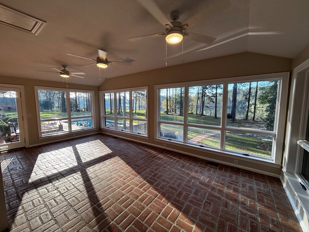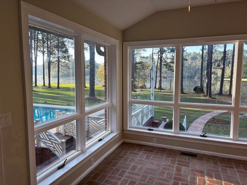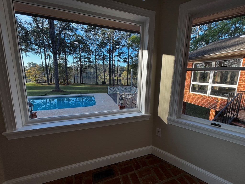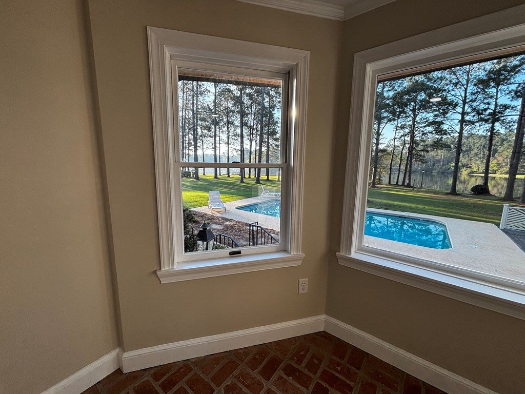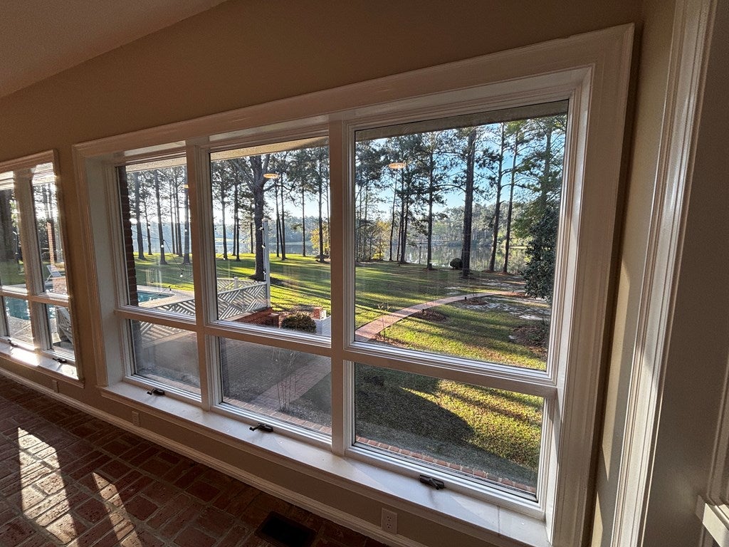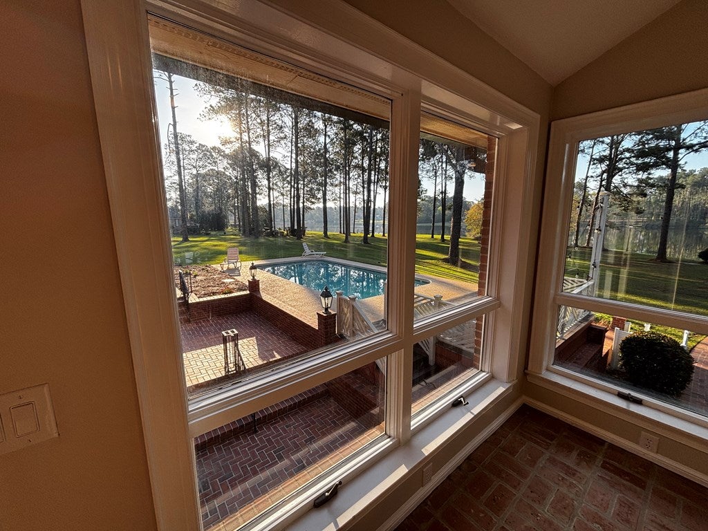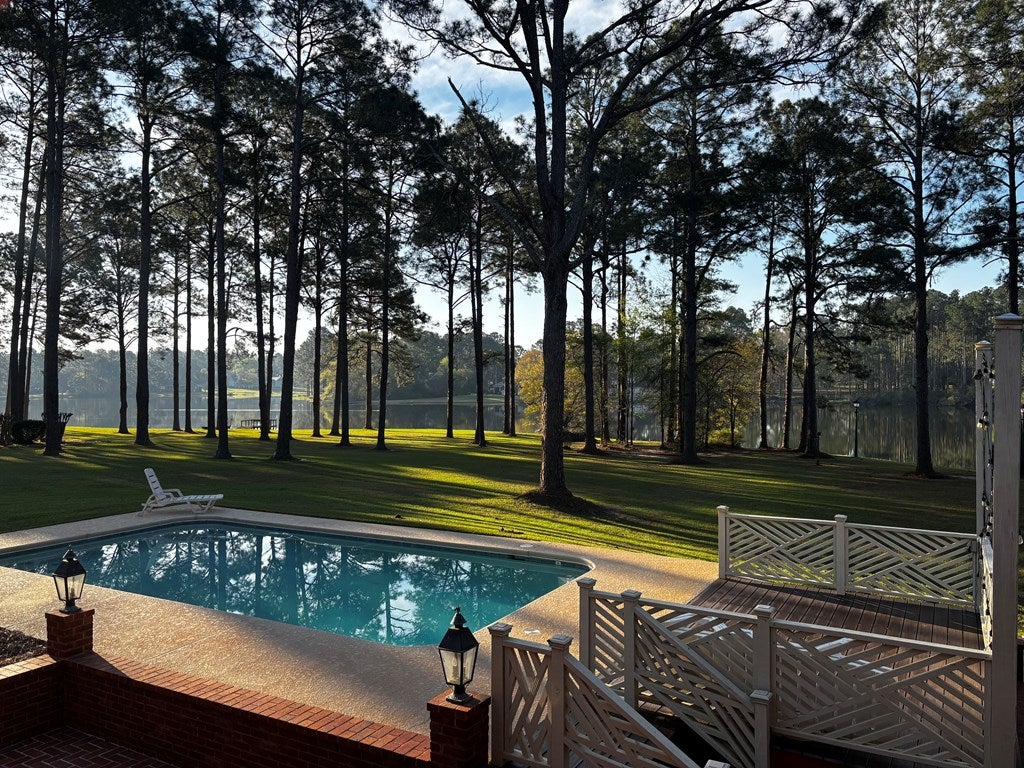 Experience refined lakefront living in this beautifully renovated estate where luxury, space, and scenic tranquility come together. Thoughtful upgrades include fresh interior paint, two Rinnai tankless water heaters, two premium remote-controlled gas log fireplaces, stainless steel appliances, an irrigation system, and updated electrical switches and outlets throughout. The expansive floor plan offers generous living and entertaining spaces, highlighted by large windows that frame stunning lake views and fill the home with natural light. The kitchen serves as the heart of the home, designed as a welcoming gathering space overlooking the lake, perfect for entertaining or everyday living. The spacious primary suite provides a relaxing private retreat, while additional bedrooms and flexible living areas easily accommodate guests, home offices, or recreation spaces. Outside, the nearly two acre property offers plenty of room and stunning views of the lake and pool for friends and family.