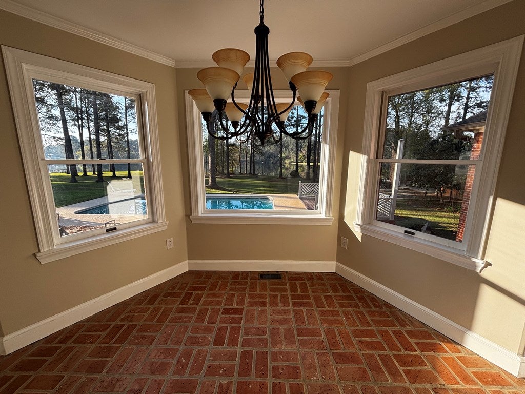 Discover timeless elegance and modern comfort in this stunning 4-bedroom, 6-bathroom brick estate, offering 4,499 sq. ft. of refined living space. Nestled on a quiet private road, this impressive two-story home sits on a beautiful 4.18 acres. Step through the grand foyer and into an open, light-filled interior featuring soaring high ceilings and gleaming hardwood floors. Designed for both formal entertaining and comfortable everyday living, the spacious floor plan includes multiple living areas and elegant architectural details throughout. The heart of the home offers seamless flow to the outdoor retreat a sparkling in-ground pool surrounded by ample patio space, perfect for relaxing or hosting gatherings. Each of the four bedrooms offers generous space and comfort, including a luxurious primary suite. Six well-appointed bathrooms ensure convenience for family and guests alike. Be sure to make this beautiful estate YOURS today!
