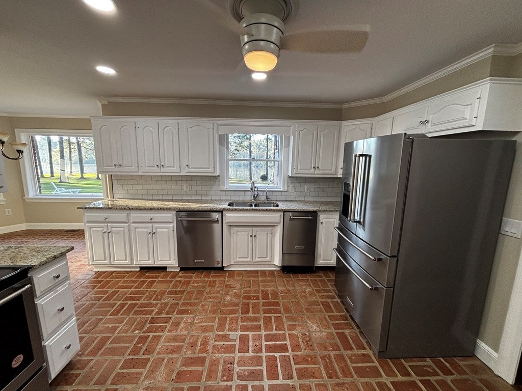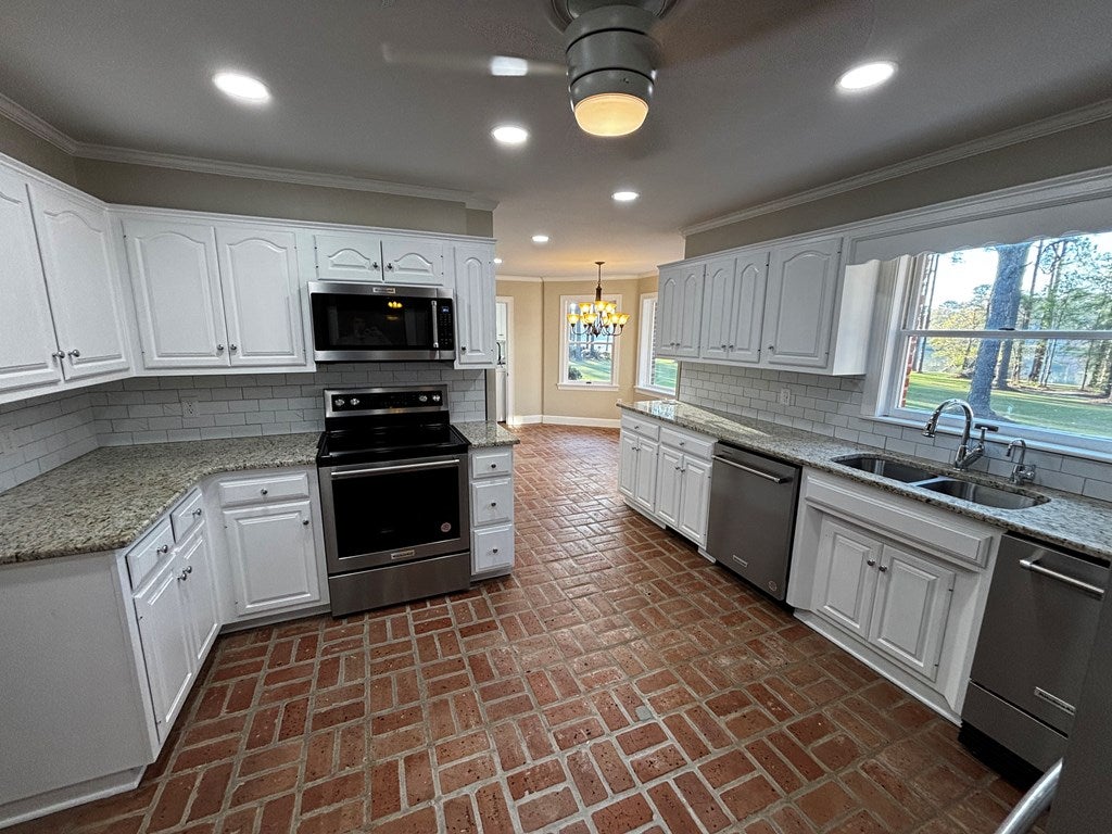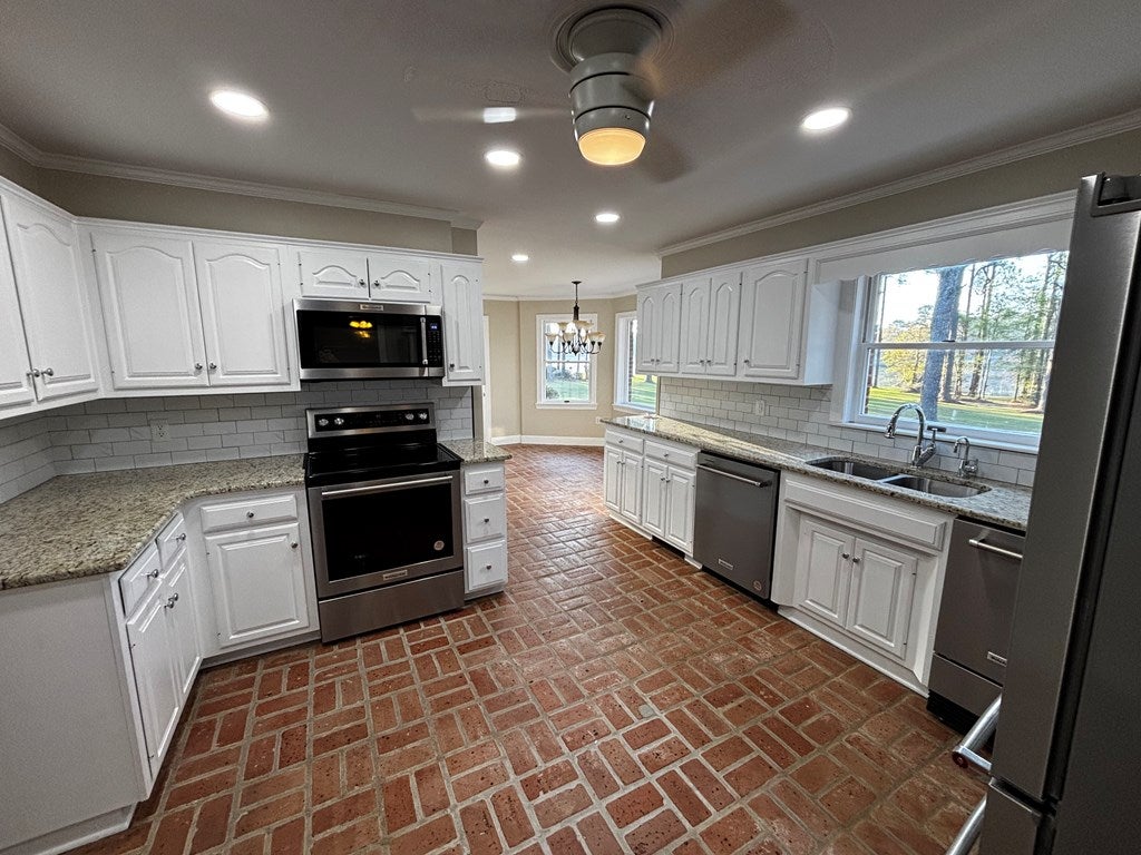 Experience refined lakefront living in this beautifully renovated estate where luxury, space, and scenic tranquility come together. Thoughtful upgrades include fresh interior paint, two Rinnai tankless water heaters, two premium remote-controlled gas log fireplaces, stainless steel appliances, an irrigation system, and updated electrical switches and outlets throughout.