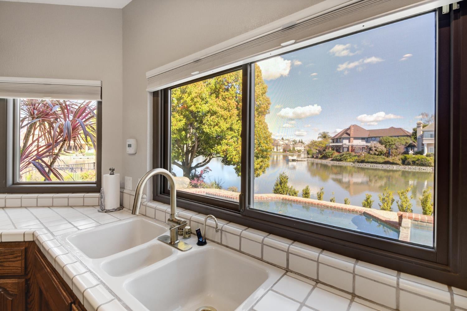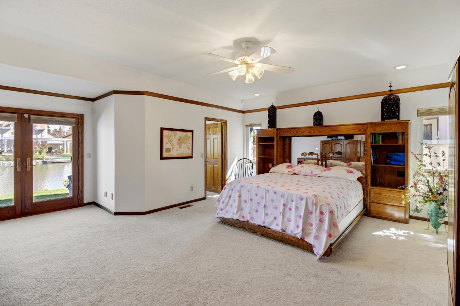 It is all about the views! Lake front living in the beautiful gated community of Riverlake at its best! This is a prime location within the community and you will never tire of the views from most rooms of this stately custom home. Most importantly, the eastern exposure on the lake is perfect for those summer nights with the cool Delta Breeze! Enjoy resort style living with a sparkling pool, spa, private boat dock and ample room for play on the lawn. This handsome near 4400SF home has been lovingly cared for and features 4-5 Bedrooms, 3.5 Baths, 2 primary suites with lake views, (1 up and 1 down) and a grand open floor plan that includes a 2 story great room with soaring ceilings, a large wet bar, an open kitchen and breakfast nook all with lake views. The large formal dining room is open to the entry and great room and views the music room for your grand piano or an office overlooking the lake! The home has been well maintained with freshly painted interiors, a 2013 New roof with a 50 year warranty on the lightweight concrete tiles, 2018 new 2 Rinnai tankless water heaters, 2024 new 2 Daikin HVAC systems, most newer Anderson Doors and windows in 2013, new driveway 2018 and the Pool & Spa was remodeled too. Many timeless amenities include real hardwood floors, wood plantation shutters, 8 Casablanca fans, a wood burning fireplace with a stove insert, ADT alarm system with outdoor cameras. Plus theres a 3 car garage! Located in Cobble Cove behind the gates, and just a short walk to the community lakefront park with tables, this is a very desirable location so dont delay!