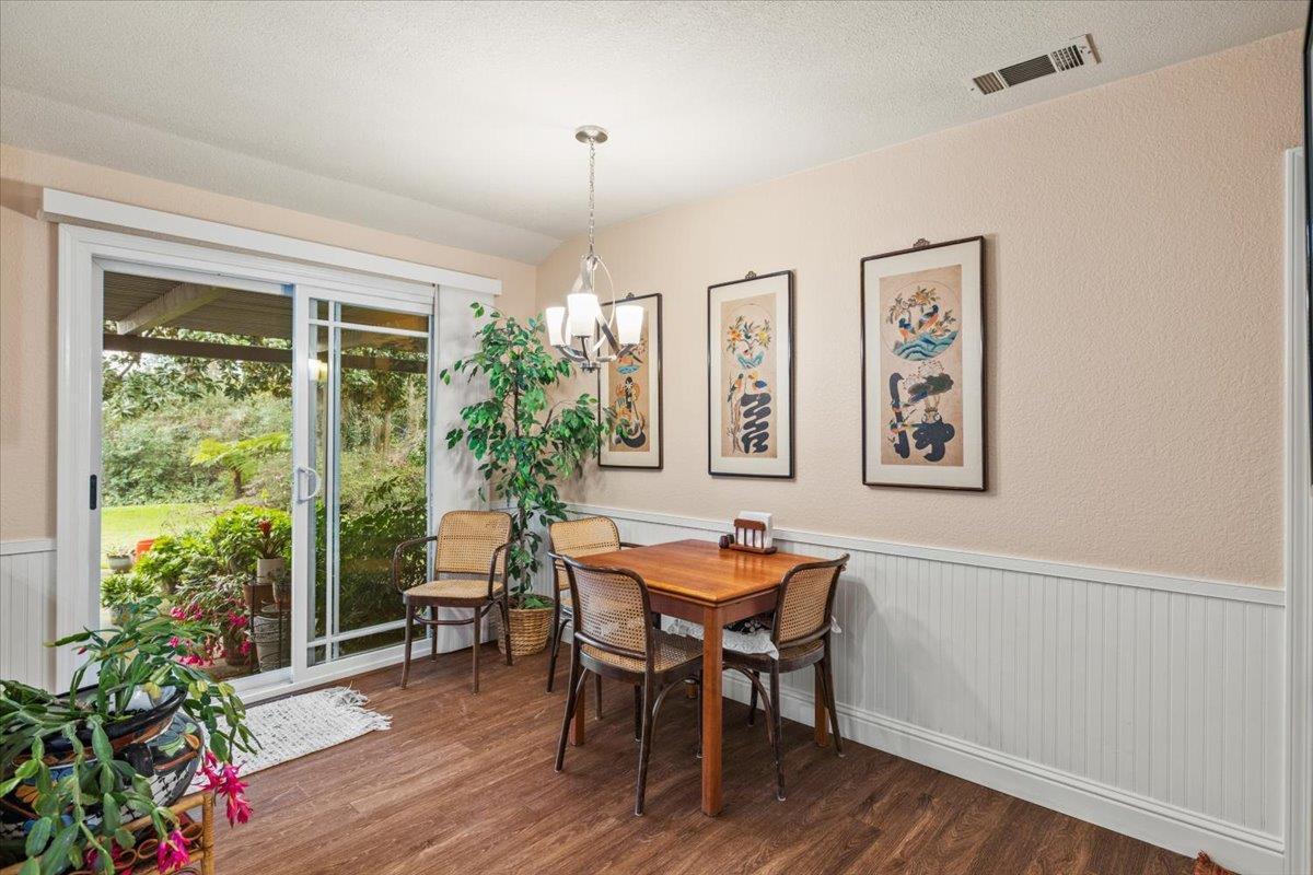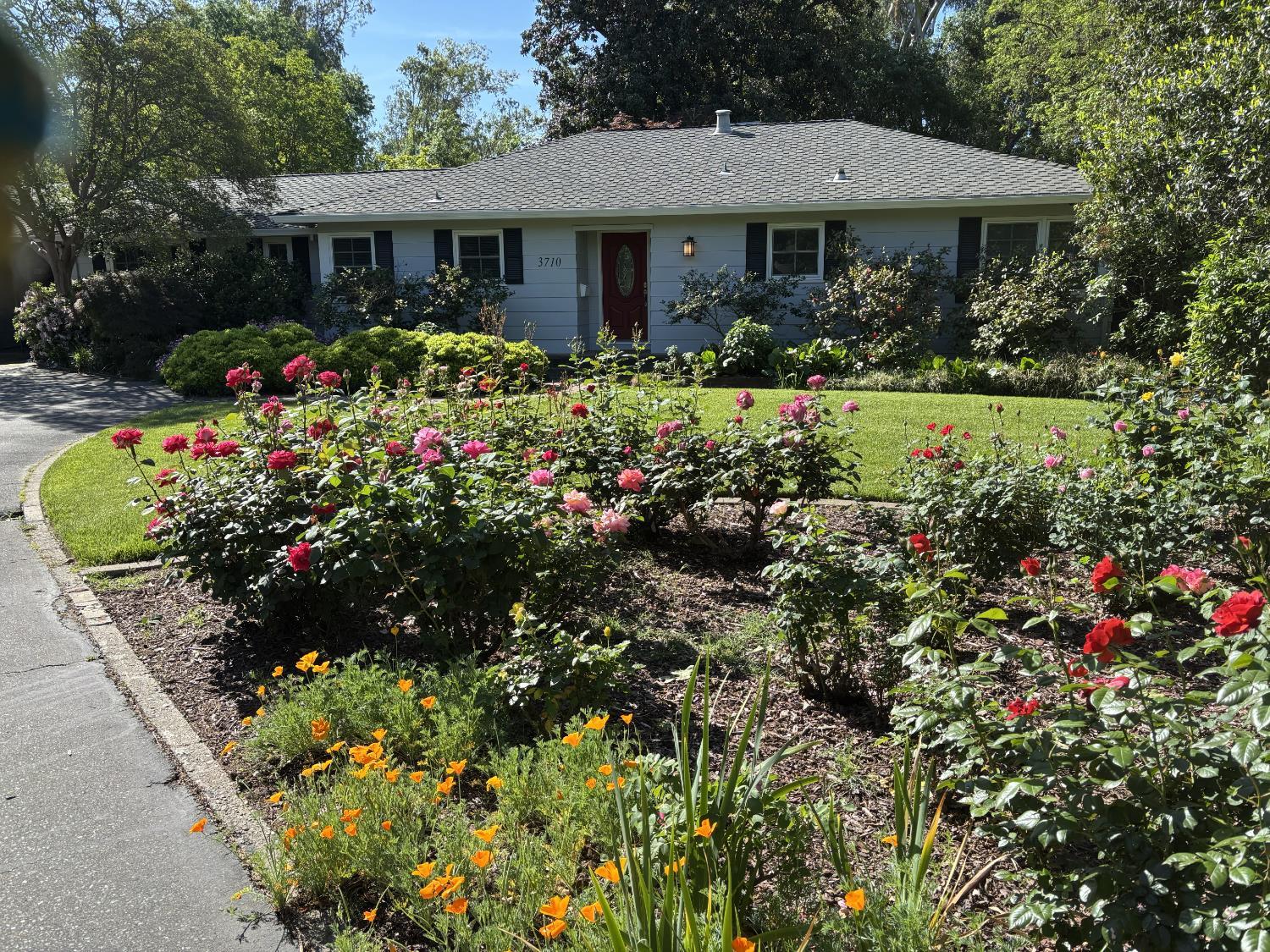 VIEW--VIEW--VIEW from the wall of glass that overlooks the private and dramatic backyard that thrills the senses. This mid-century 3 bedroom, 3 bath ranch style home is nestled into its own private oasis of natural greenery and color that brings memories of Carmel . It was crafted by a master gardener who has used this .85 acre site as her canvas to create an ever changing tableau of colors and textures. The home has a tranquilness that matches its setting. The rooms are right-sized to be cozy and enveloping yet allow successful entertaining with large groups. Check out the well thought out kitchen with its enduring hard rock maple cabinetry, Corian counters, stainless steel Bosch dishwasher and 5 burner gas cooktop with separate areas for the breakfast area and your desk/work space. No need for the formal dining room?? It could be a perfect den or music room or?? The primary suite is remote and features unique vaulted ceilings and clerestory windows, plus access to your own private deck with a hot tub. Relax in the bubbles as you look out over the expansive backyard. Attached to the primary suite is your private library/sitting room as well as the ensuite bath with a large walk-in shower and separate water closet. Come check out the luxuriousness of it all. The property also features an oversized garage connected to the home via a large breezeway and a recent addition of an 416 sqft outbuilding with ductless heat & air conditioning that was built as a sound proofed music studio to rock out in, but you could use it for a remote office, yoga studio, or?? The back of the home is a wall of glass that opens to the expansive full-length covered patio the overlooks the large lawn area that runs down to your own stream. This backyard has been the site of many large gatherings and celebrations---from formal to informal. And some rather competitive croquet tournaments. This home is for those who enjoy the fact that it is on a private lane with few neighbors where you can enjoy all of the beauty of nature and yet you are close to all of the amenities. Near Del Norte Athletic Club, Del Paso Country Club, Town & Country Center. EZ access to I-80.